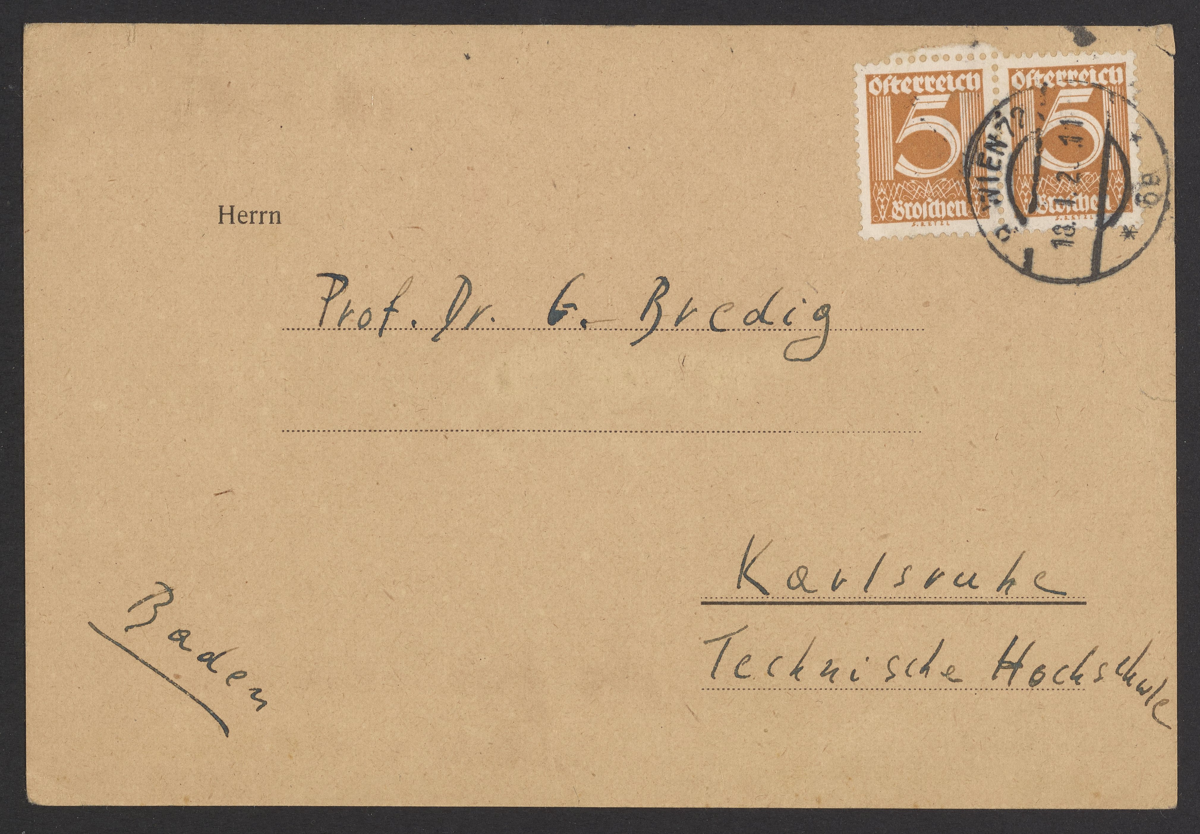Ehrenhaft, Felix. “Postcard from Felix Ehrenhaft to Georg Bredig, January 1928,” January 17, 1927. Papers of Georg and Max Bredig, Box 2, Folder 28. Science History Institute. Philadelphia. https://digital.sciencehistory.org/works/4hml3f5.