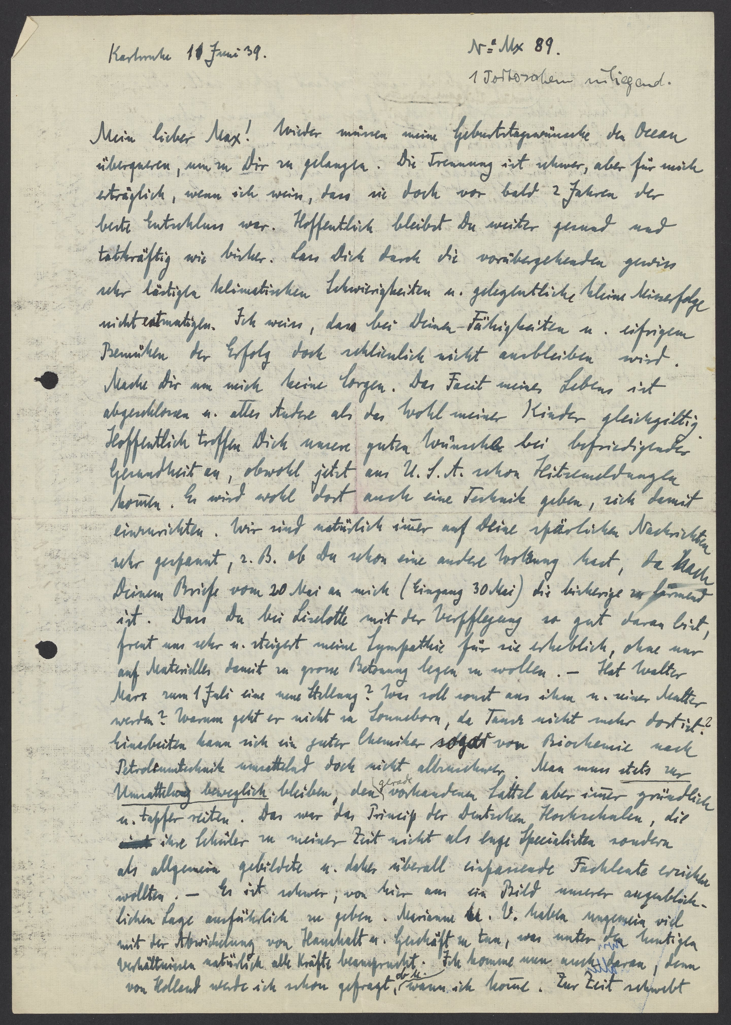 Letter from Georg Bredig to Max Bredig, June 11, 1939