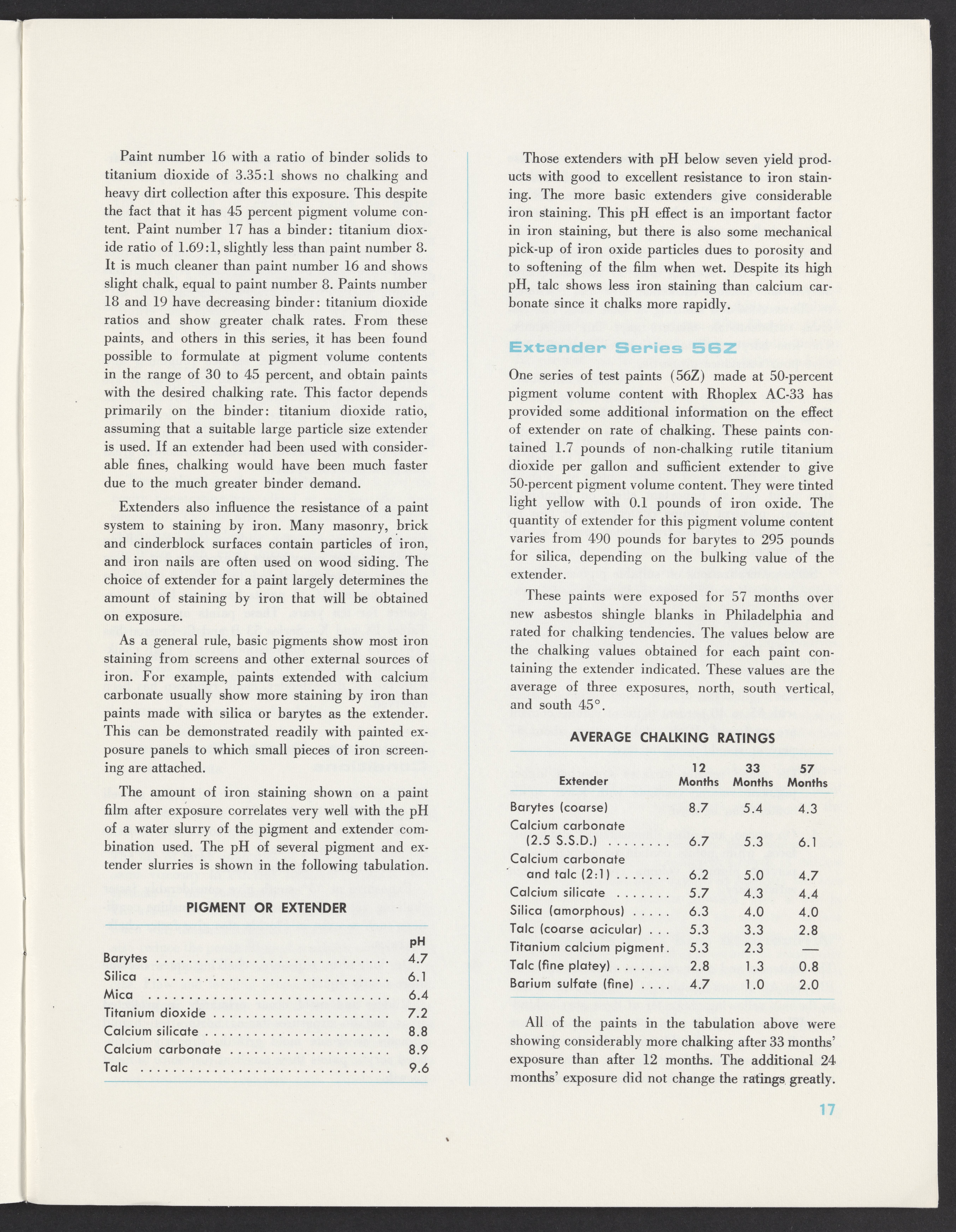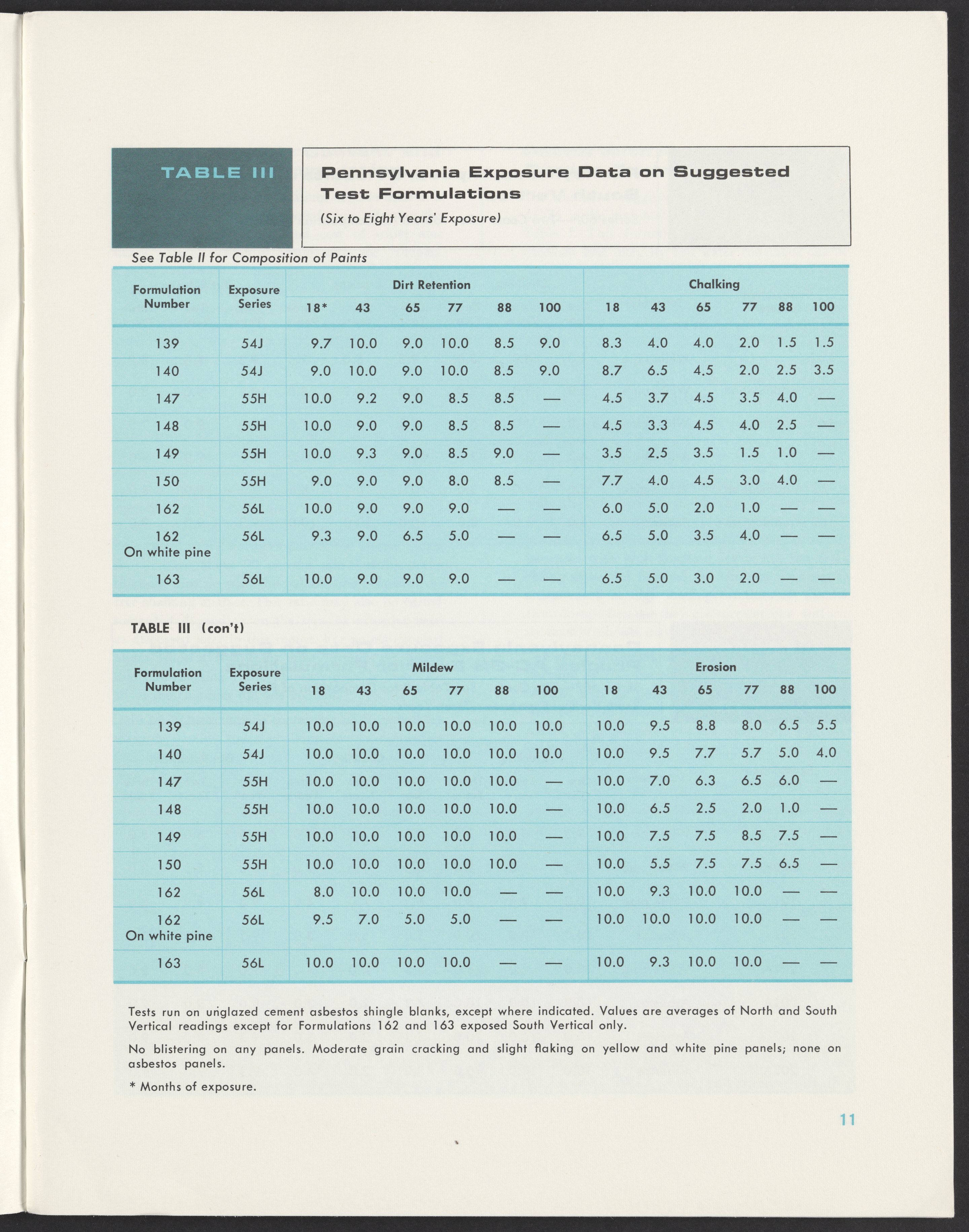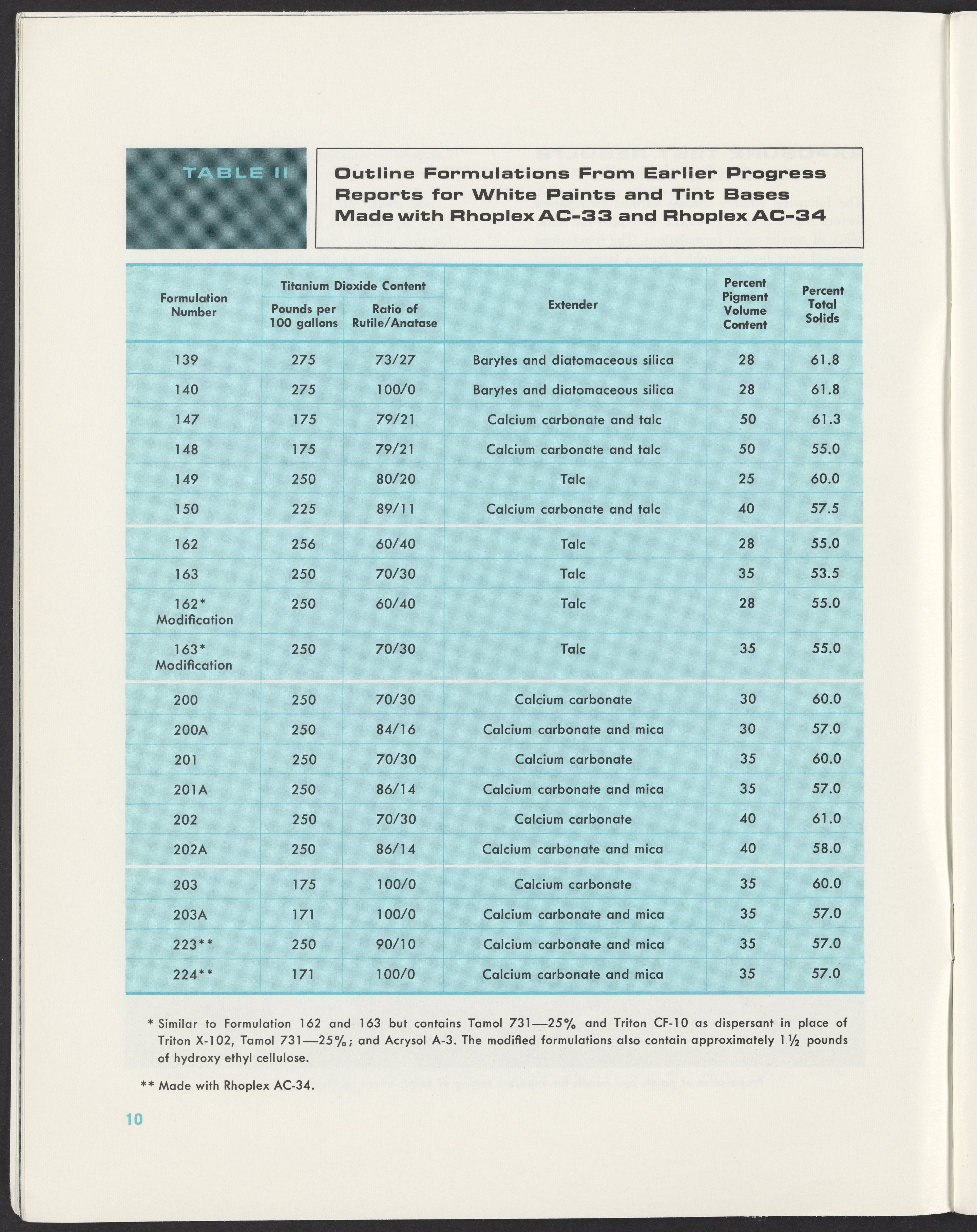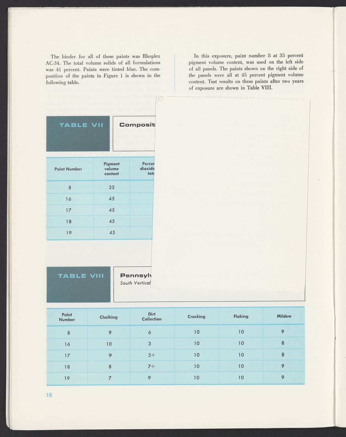Small JPG1200 x 1531px — 289 KBLarge JPG2880 x 3676px — 1.8 MBFull-sized JPG5336 x 6810px — 5.7 MBOriginal fileTIFF — 5336 x 6810px — 104 MBThe 1963 annual report, titled Rhoplex Acrylic Emulsions for Exterior Paints, was published by the Resins Department of the Rohm & Haas Company. This report discusses how exterior paints performed on various materials and under different exposure conditions over a ten year span.