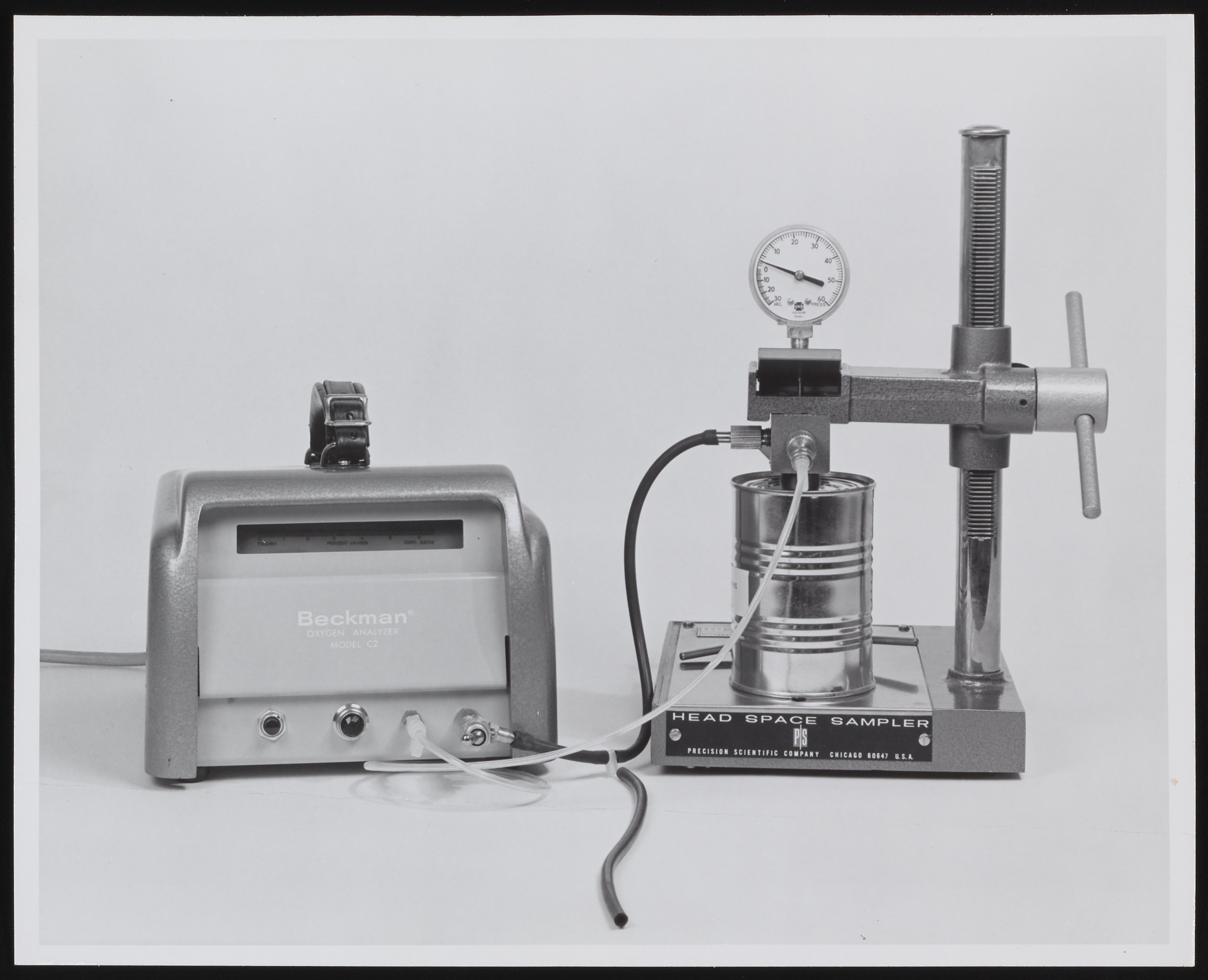 A Beckman oxygen analyzer and Precision Scientific Company sampler help to ensure food safety by measuring the oxygen content of the headspace inside food packaging. Oxygen readings that are too high could indicate an environment that encourages the growth of mold or bacteria.