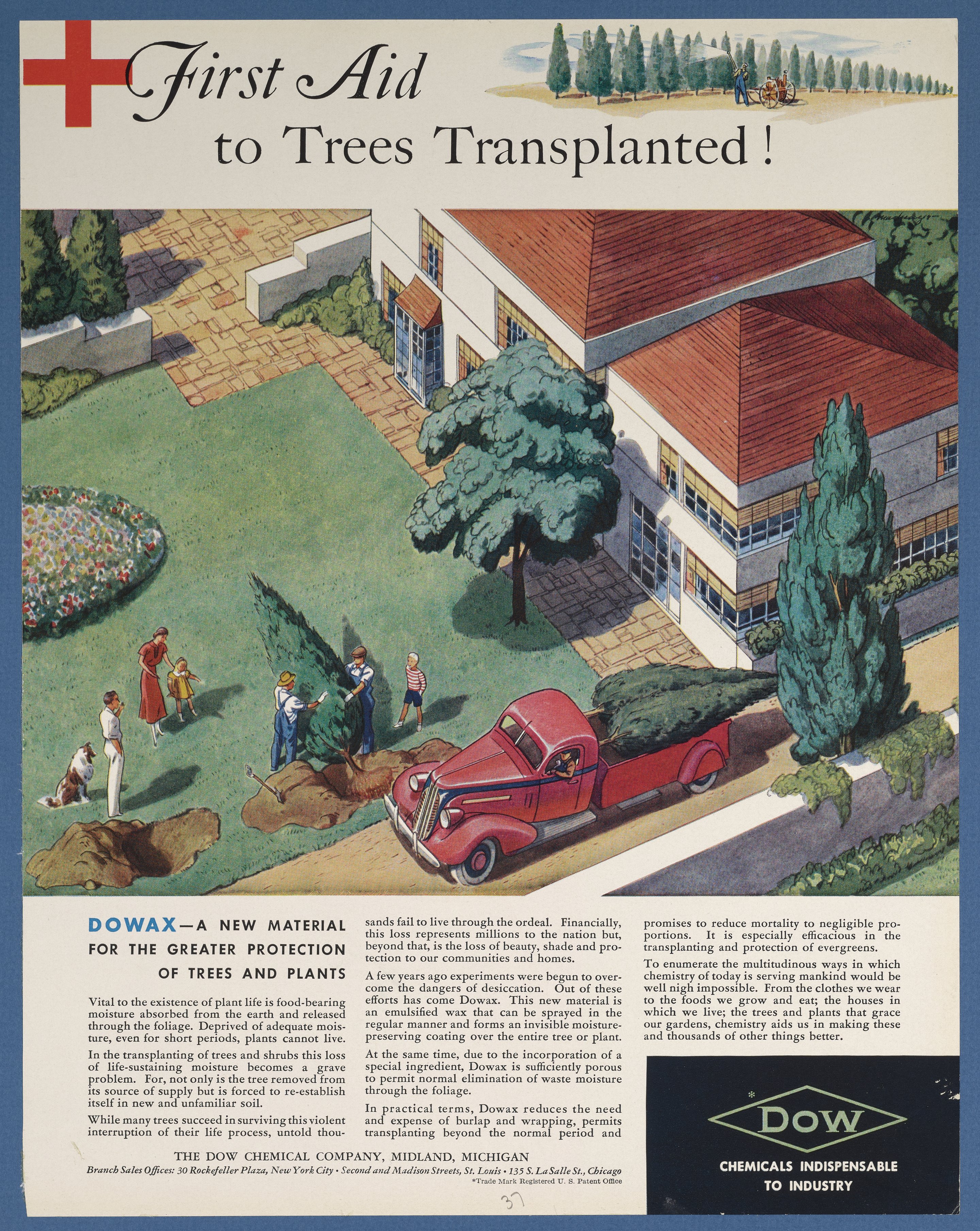 Dow Chemical Company. “First Aid to Trees Transplanted!,” 1937. Advertisements from the Dow Chemical Historical Collection, Box 1. Science History Institute. Philadelphia. https://digital.sciencehistory.org/works/4o18j7l.