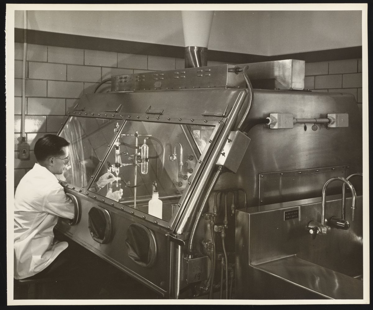 Dow Chemical Company. “Employee at Work in Dow Spectroscopy Laboratory,” 1952. Dow Chemical Company Historical Image Collection, Box Oversized Plants 1. Science History Institute. Philadelphia. https://digital.sciencehistory.org/works/4q77fr800.