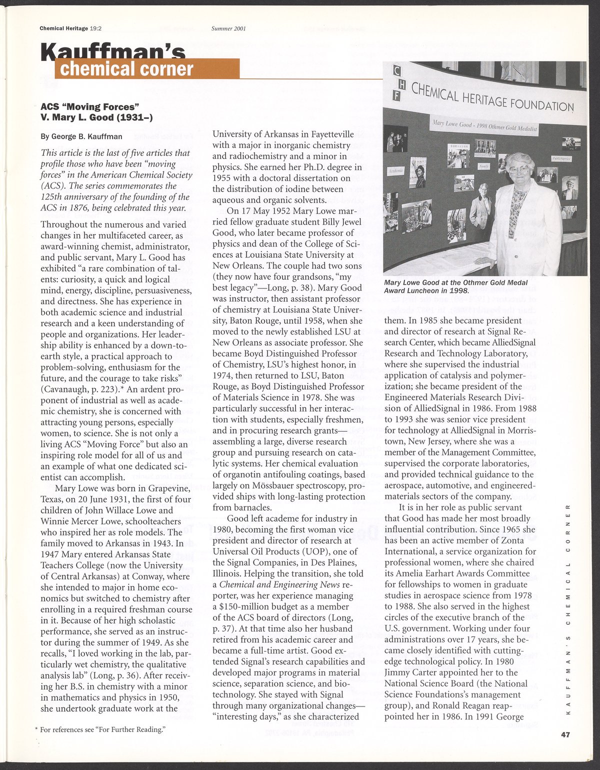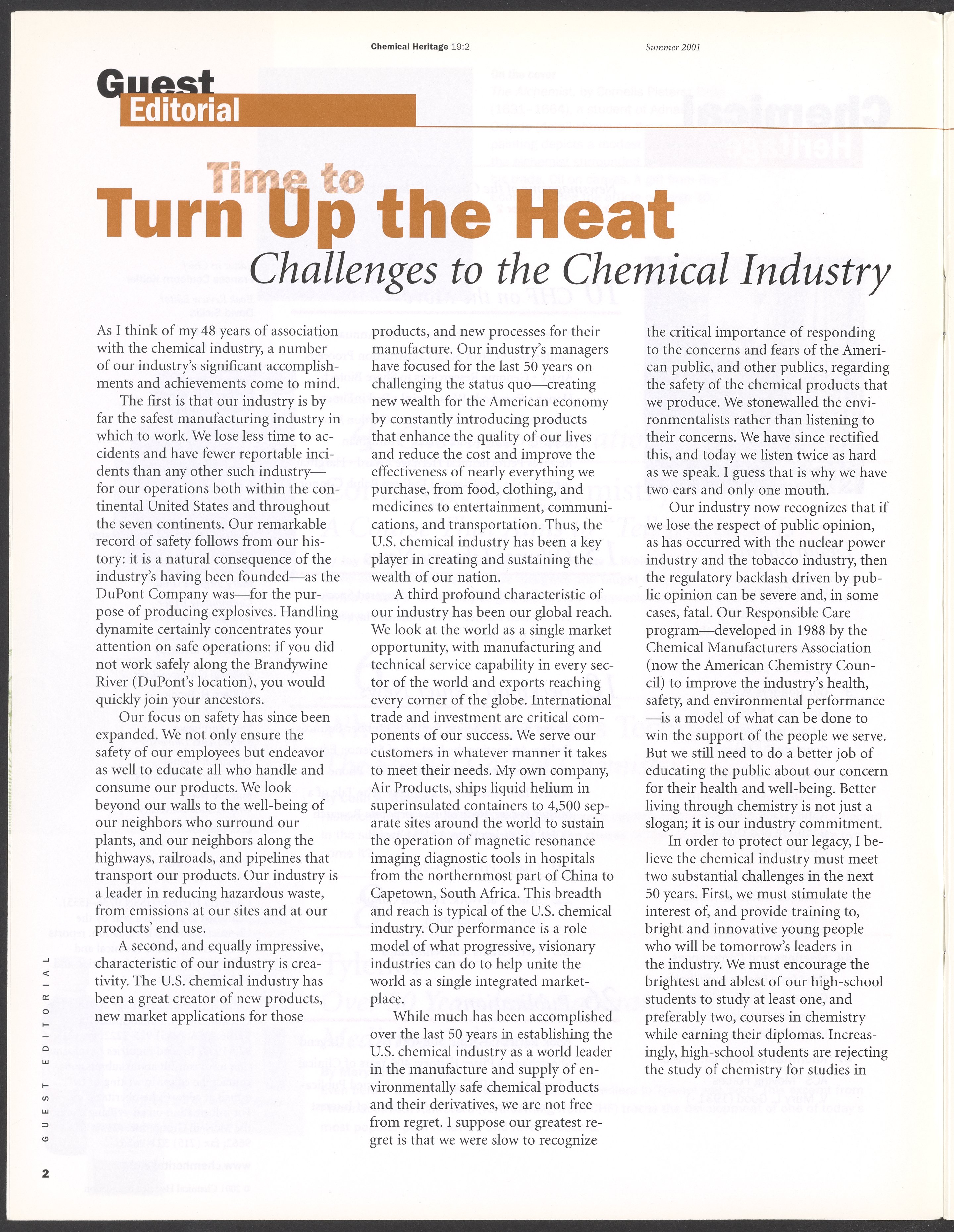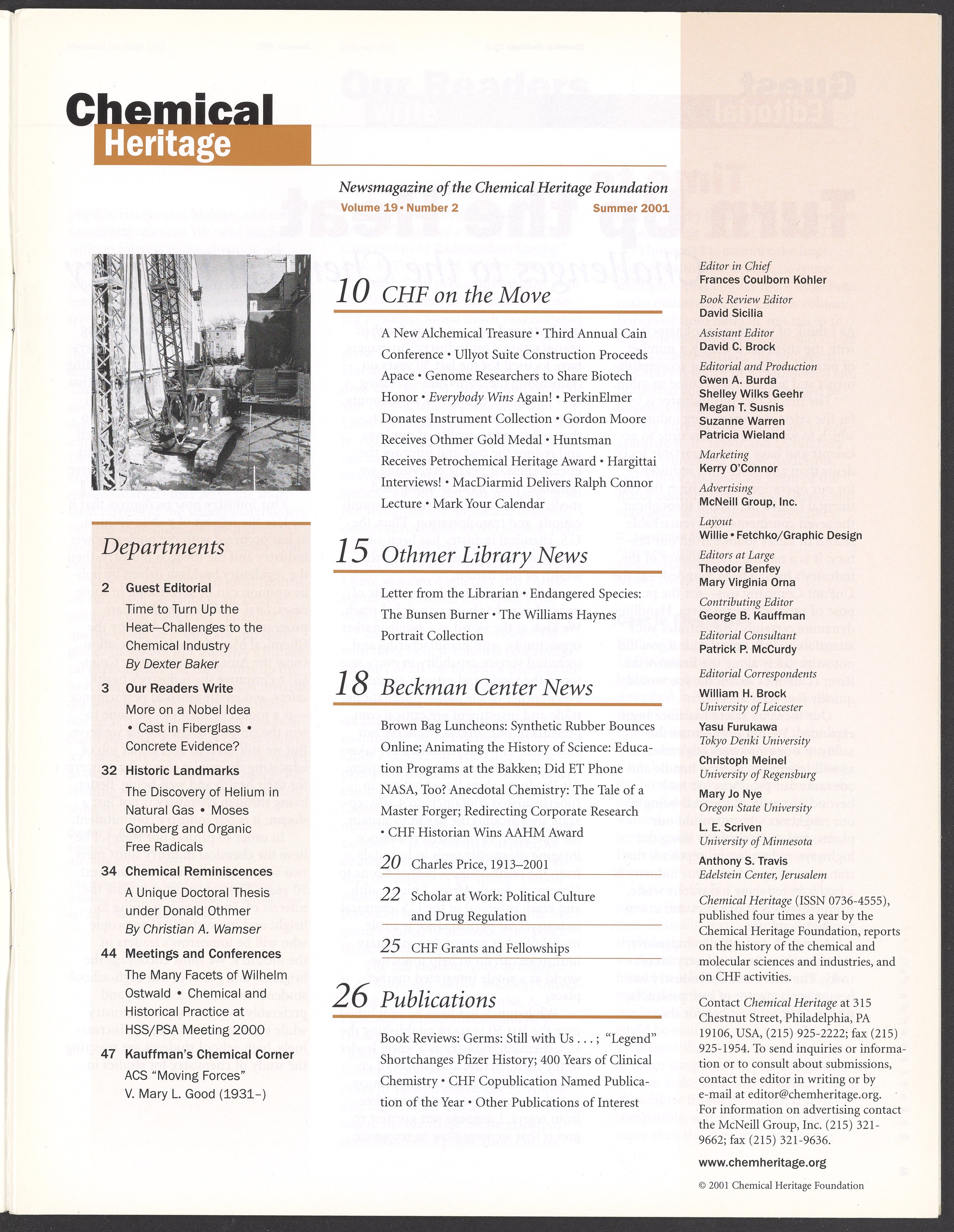 “Chemical Heritage, Volume 19 Number 2.” Philadelphia, Pennsylvania: Chemical Heritage Foundation, 2001. 099C001. Science History Institute. Philadelphia. https://digital.sciencehistory.org/works/4qr25ck.
