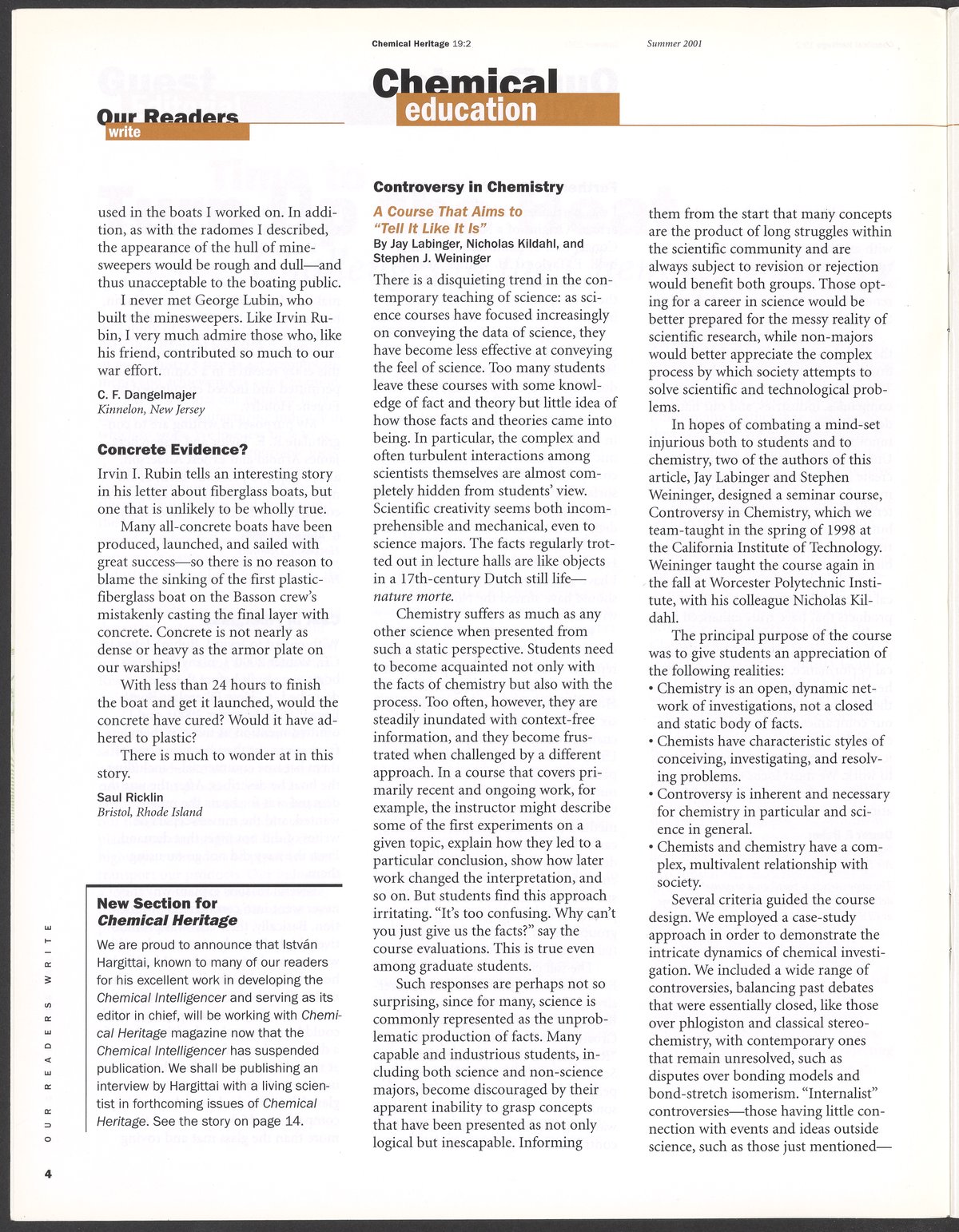 Chemical Heritage, Volume 19 Number 2