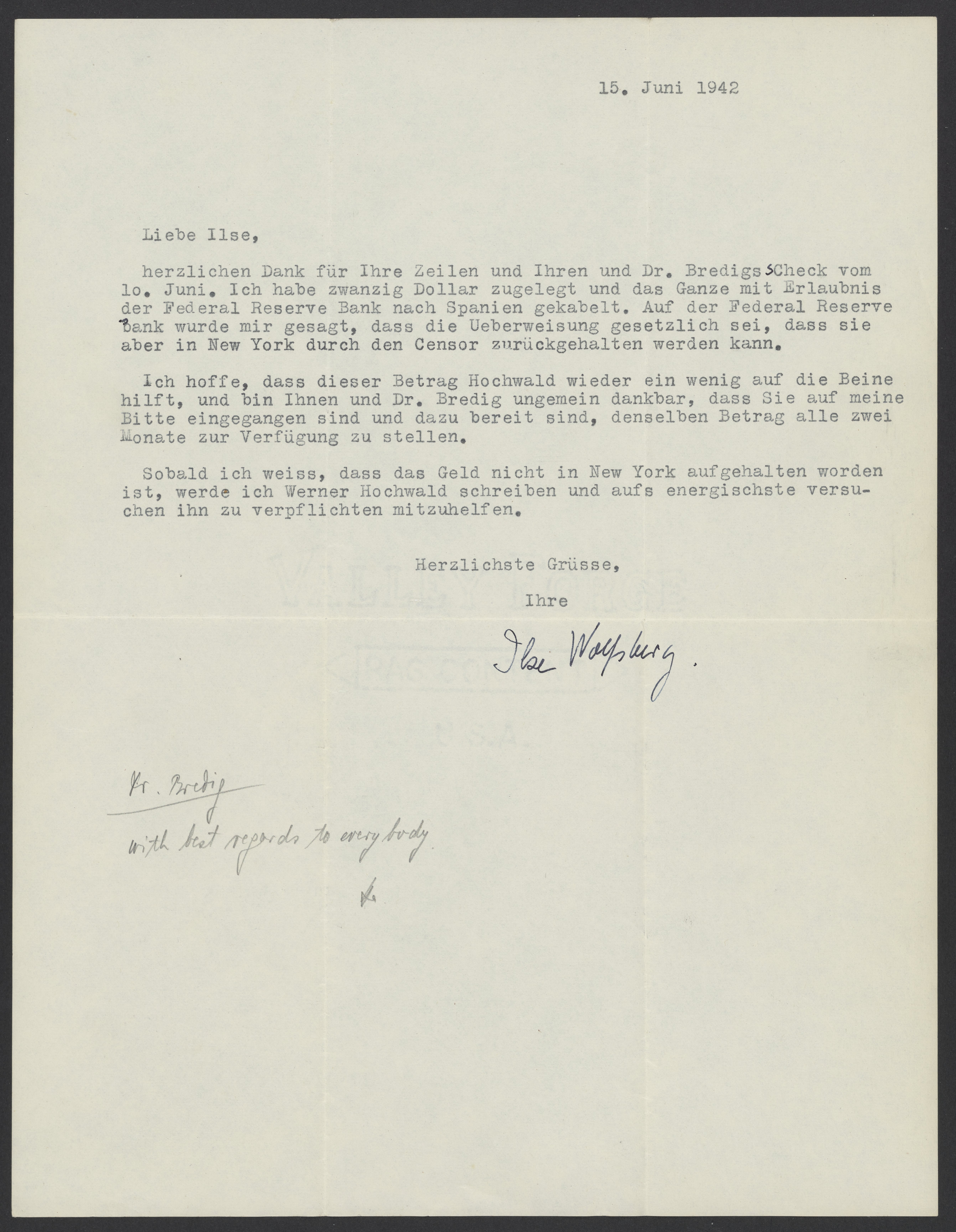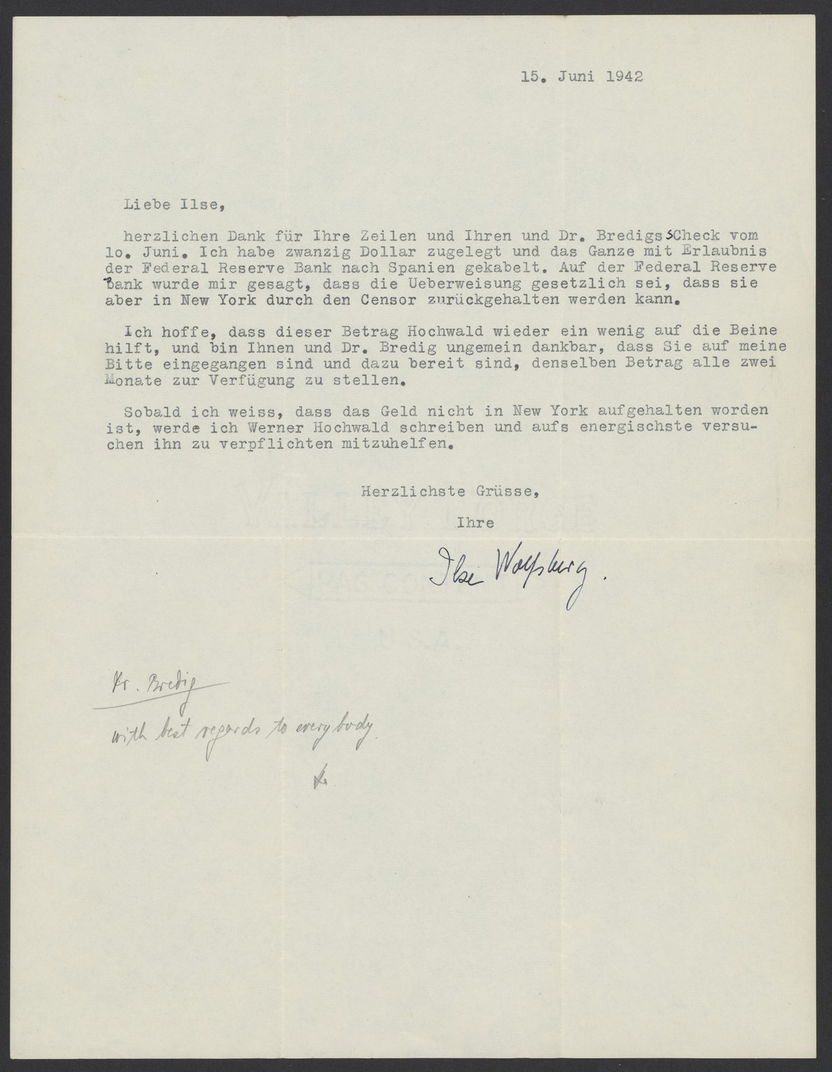 Letter from Ilse Wolfsberg to Ilse Hayn, June 15, 1942