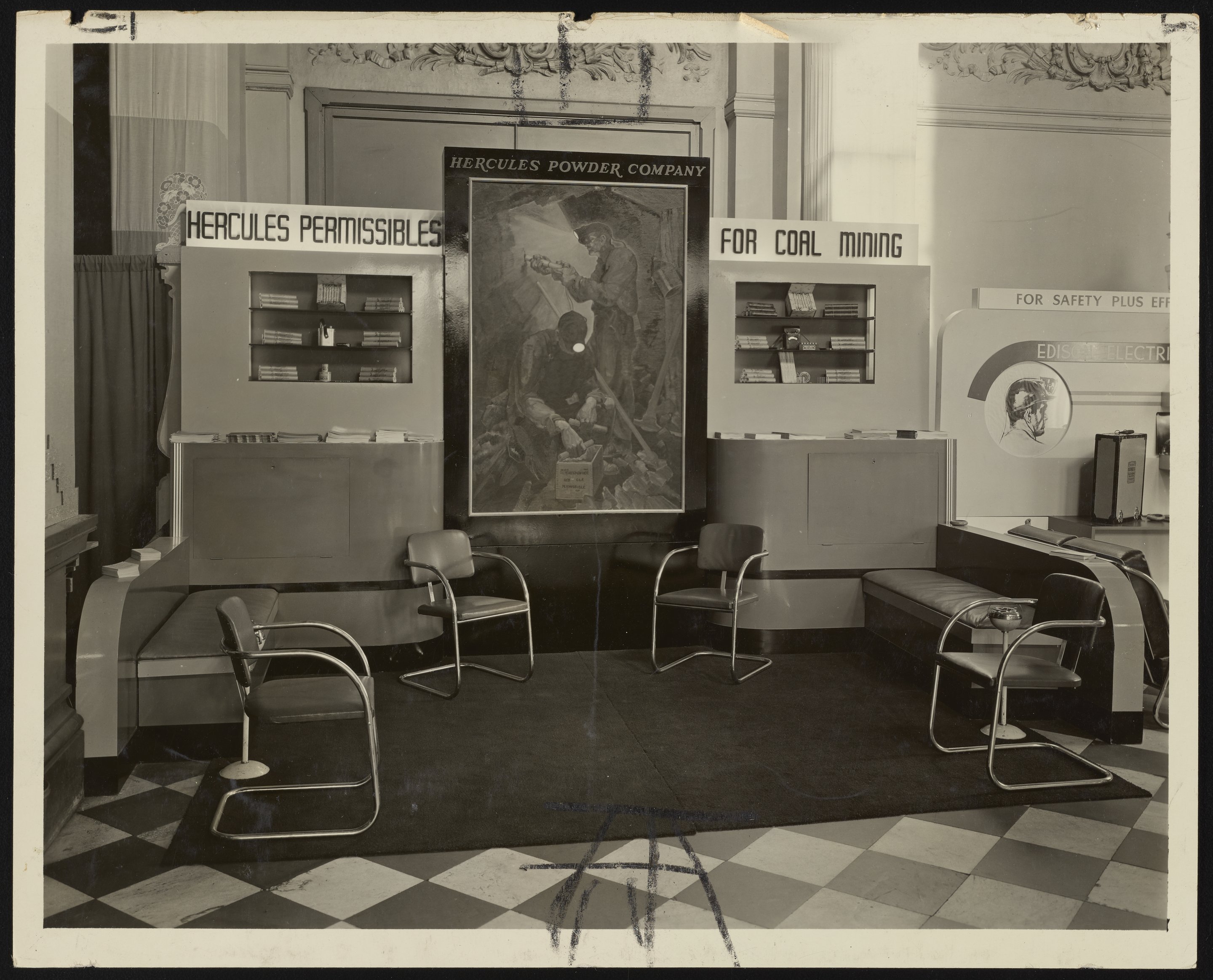 Hercules Incorporated. “‘Hercules Permissibles for Coal Mines’ Exhibition Display (circa 1950),” circa 1950. Photographs from the Records & Ephemera of Hercules Incorporated, Box 26, Folder 59. Science History Institute. Philadelphia. https://digital.sciencehistory.org/works/4t5z31v.