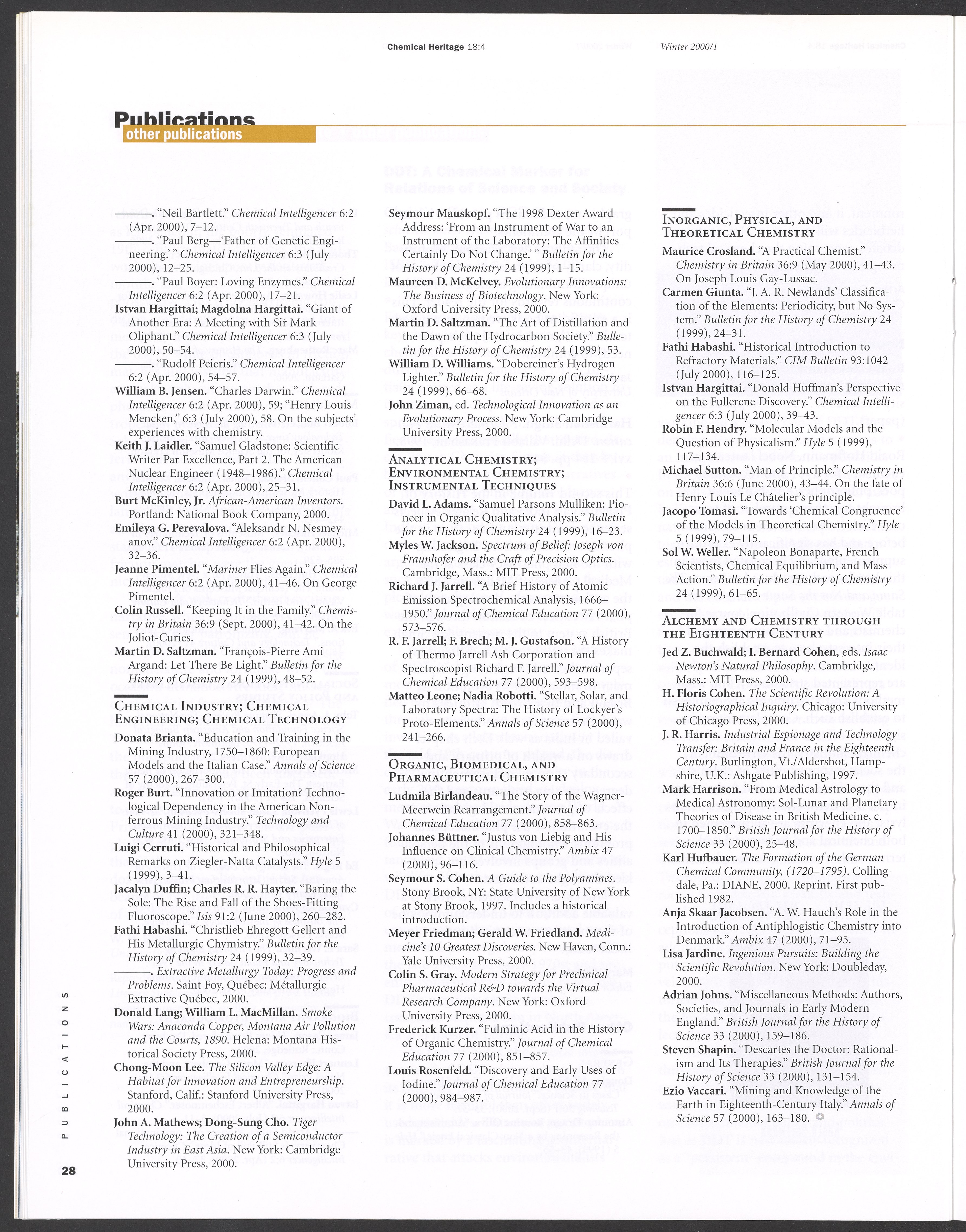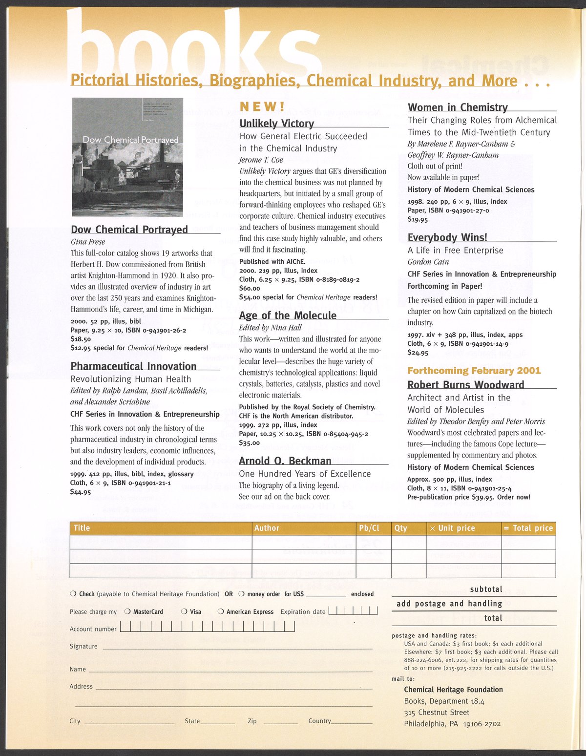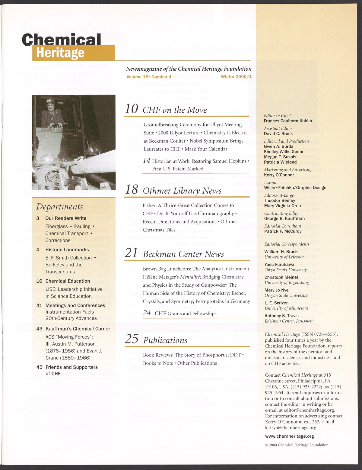 “Chemical Heritage, Volume 18 Number 4.” Philadelphia, Pennsylvania: Chemical Heritage Foundation, 2000. 099C001. Science History Institute. Philadelphia. https://digital.sciencehistory.org/works/4u4qubf.