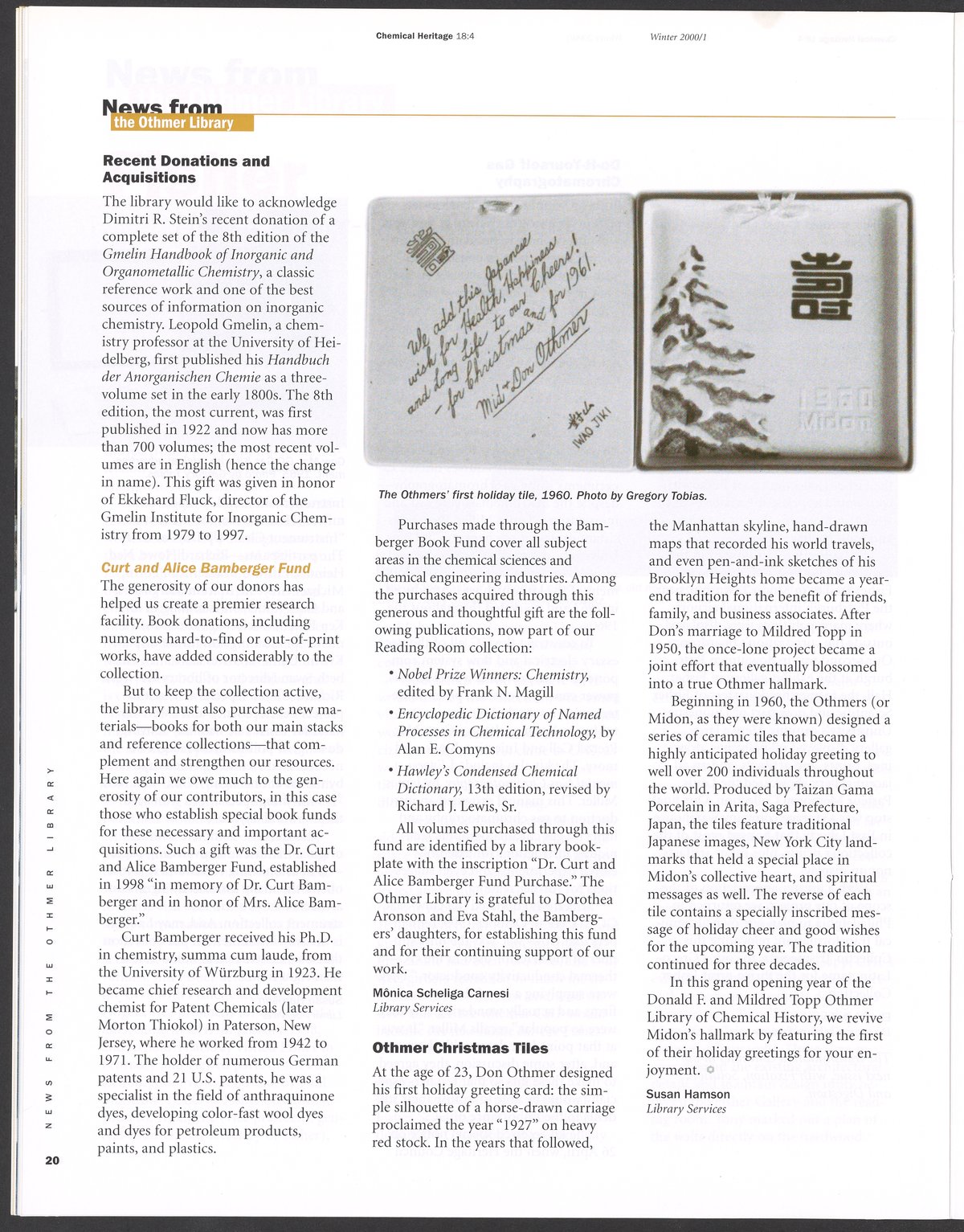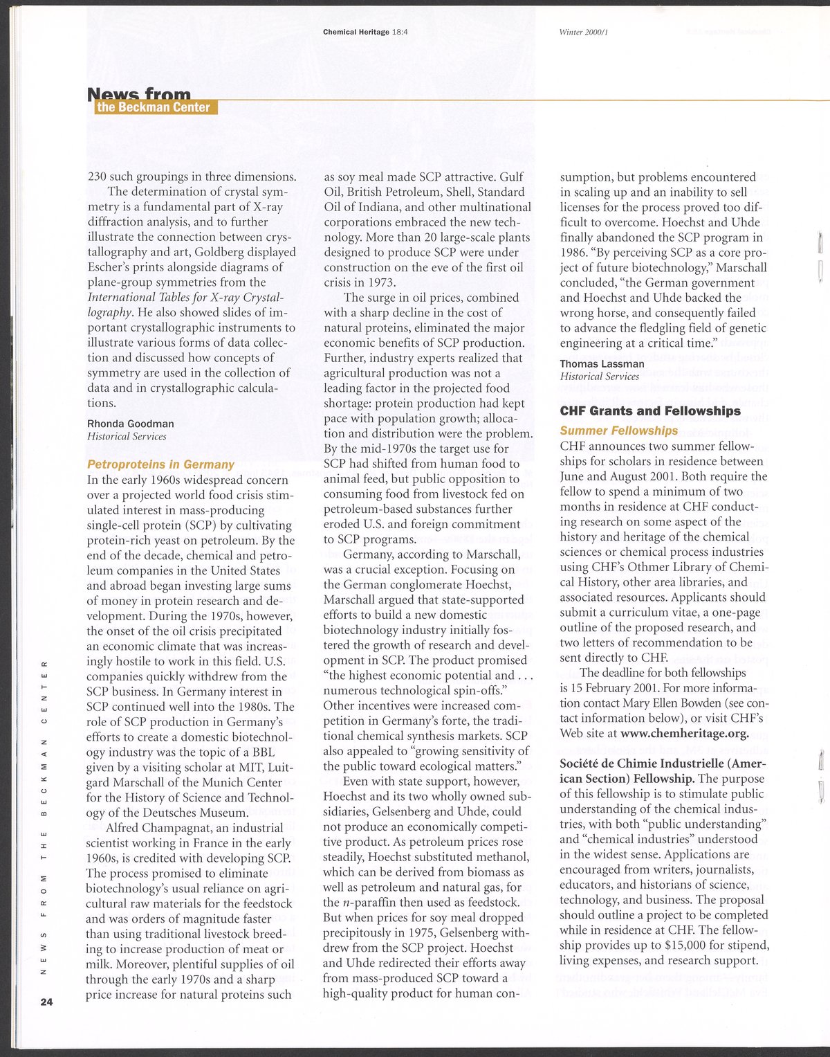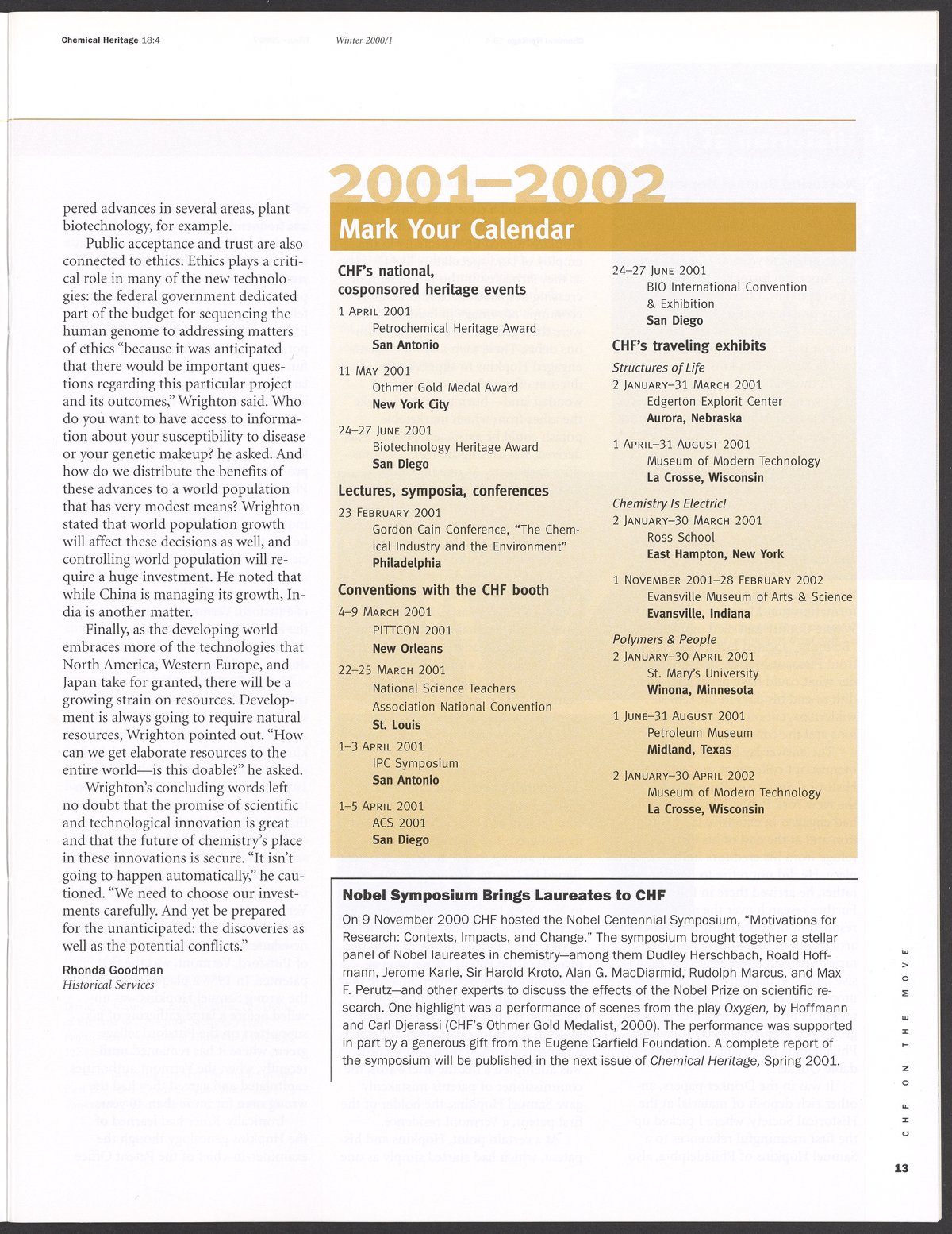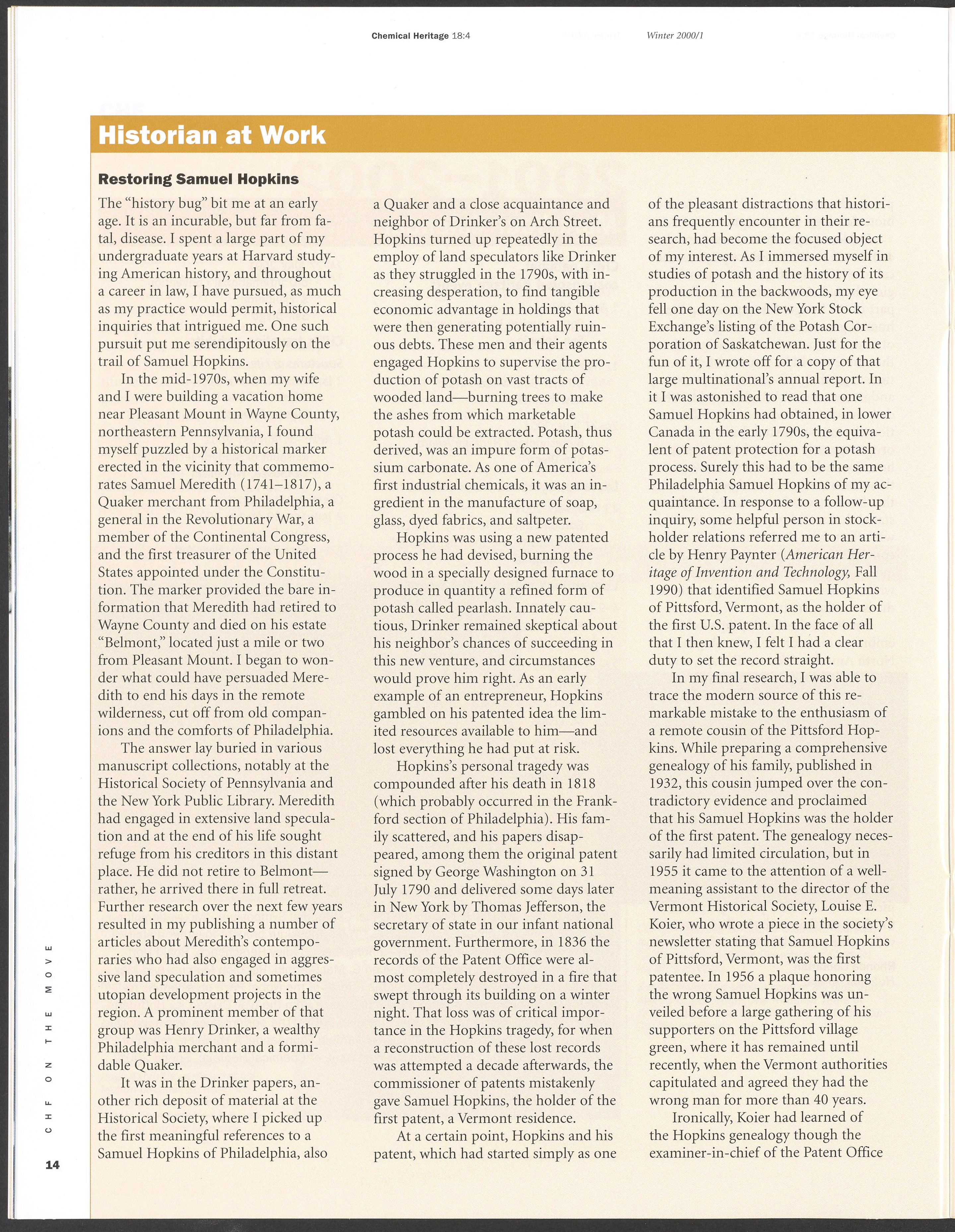 “Chemical Heritage, Volume 18 Number 4.” Philadelphia, Pennsylvania: Chemical Heritage Foundation, 2000. 099C001. Science History Institute. Philadelphia. https://digital.sciencehistory.org/works/4u4qubf.
