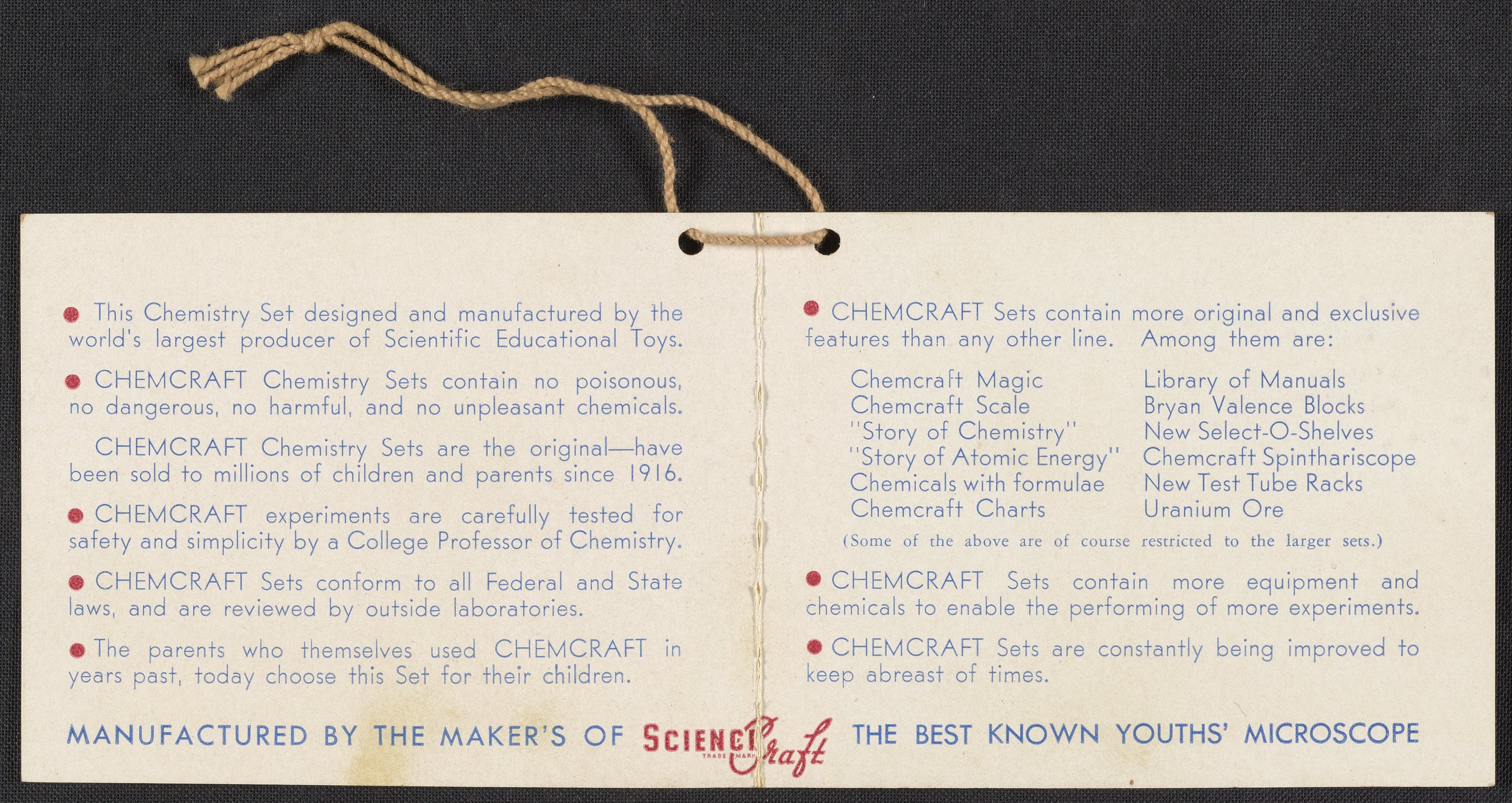 “Facts on Chemcraft.” Paper (fiber product). Chemcraft Chemical Magic No. [33?], 1940–1949. Science History Institute. Philadelphia. https://digital.sciencehistory.org/works/4w5cwnu.