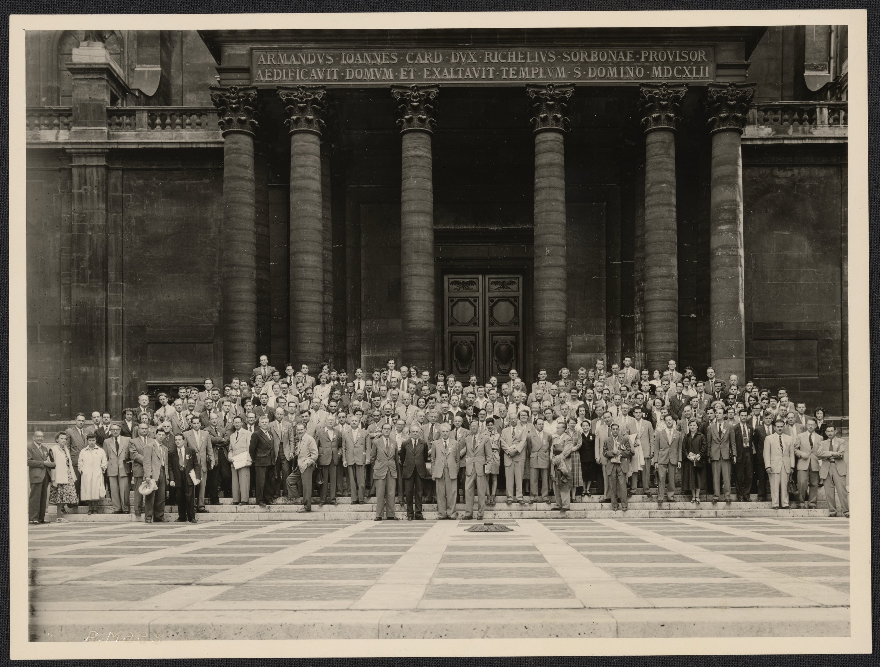 “Group Photograph in Front of the Sorbonne Chapel in Paris, France,” n.d. History of Molecular Biology Collection, Box 83, Folder 7. Science History Institute. Philadelphia. https://digital.sciencehistory.org/works/4w7oluk.
