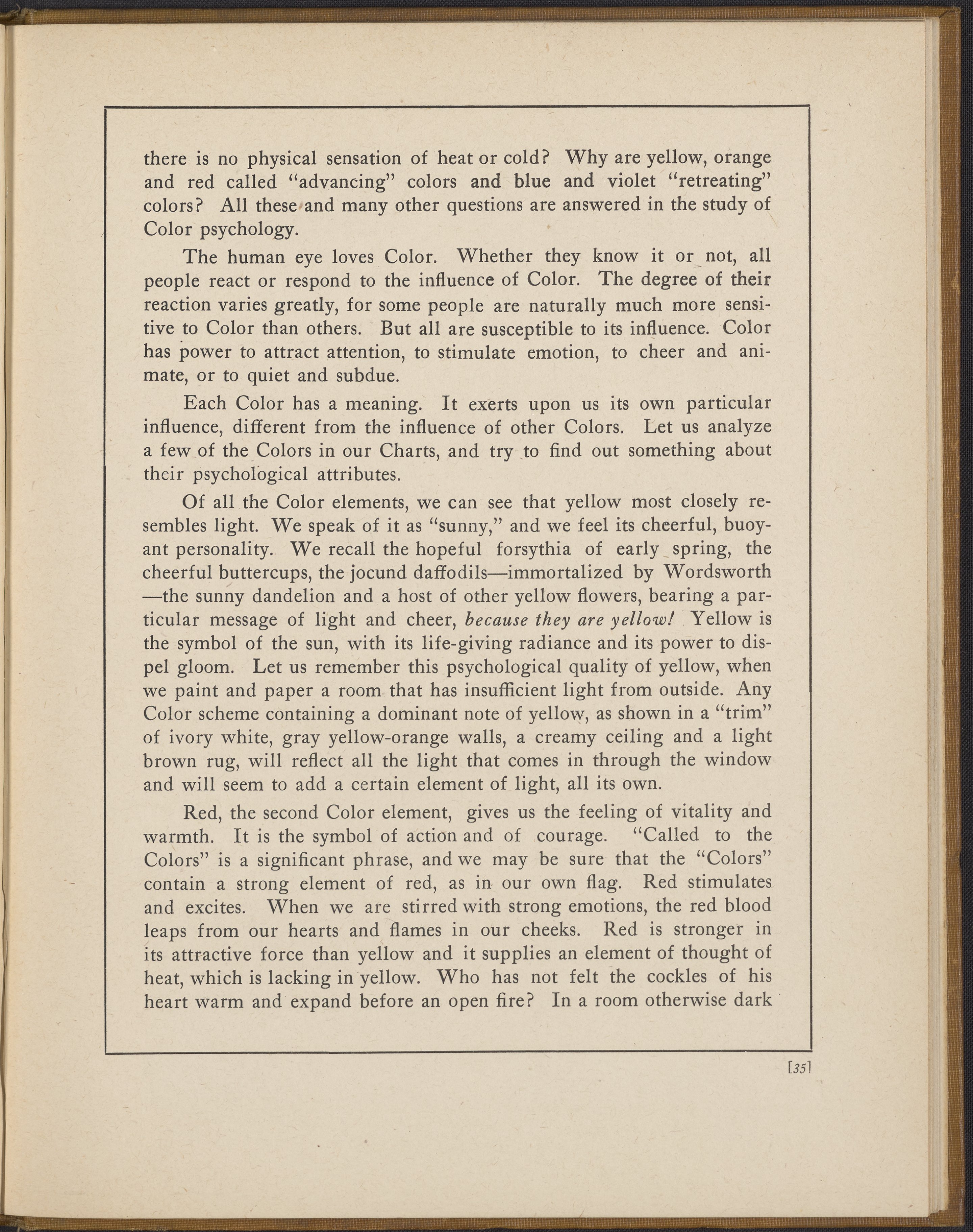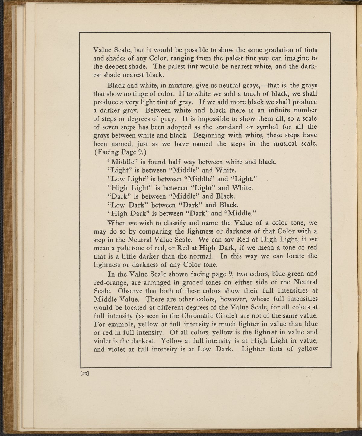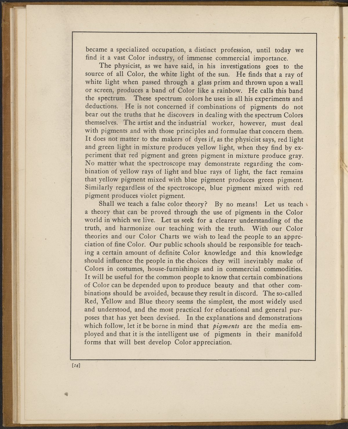Small JPG1200 x 1483px — 460 KBLarge JPG2880 x 3558px — 2.4 MBFull-sized JPG3448 x 4260px — 3.2 MBOriginal fileTIFF — 3448 x 4260px — 42.1 MBWork intended to convey to the average person the laws and principles of color to improve their appreciation, understanding, and employment of color in daily life. Includes nine pages of color samples that collectively illustrate concepts of color theory.