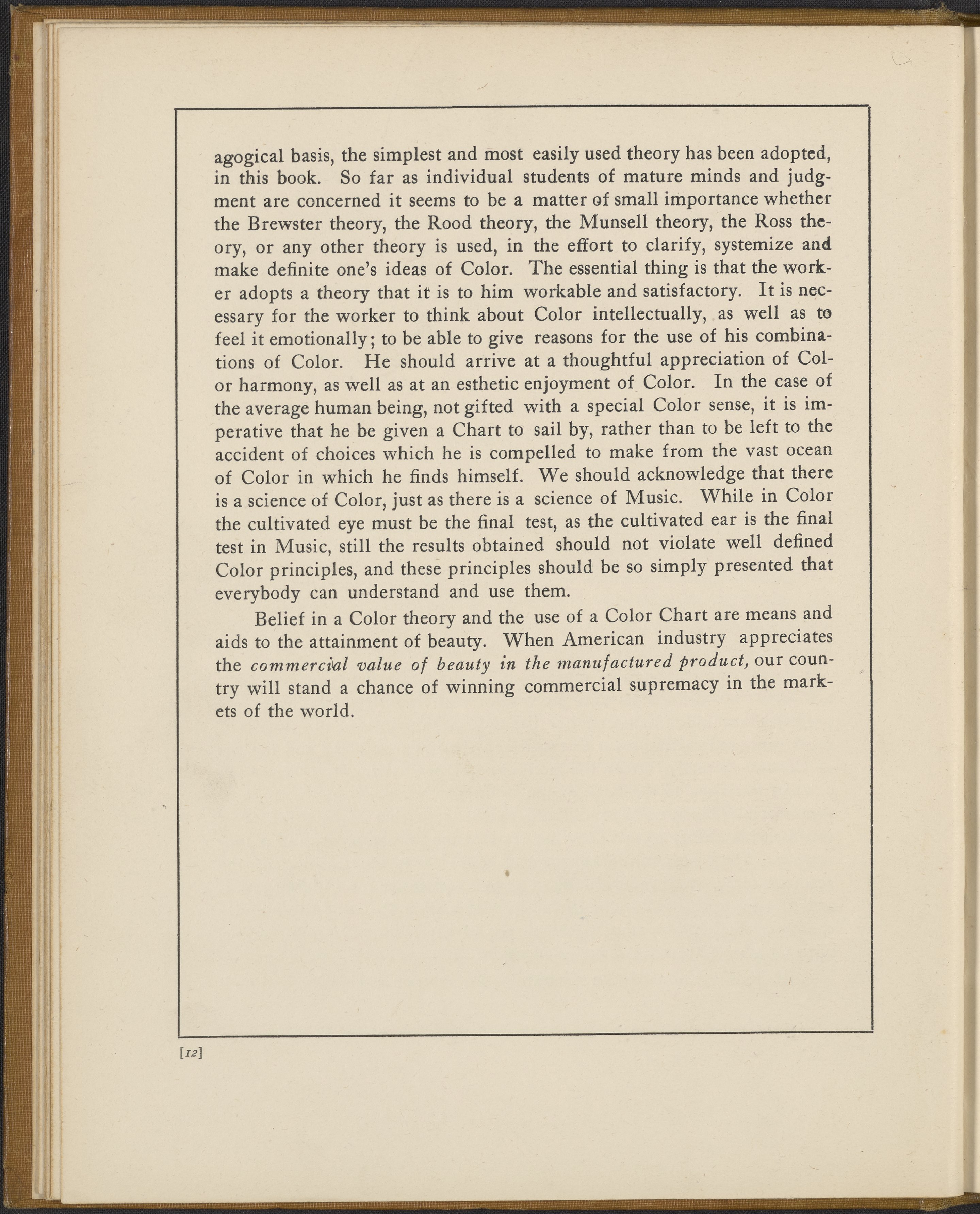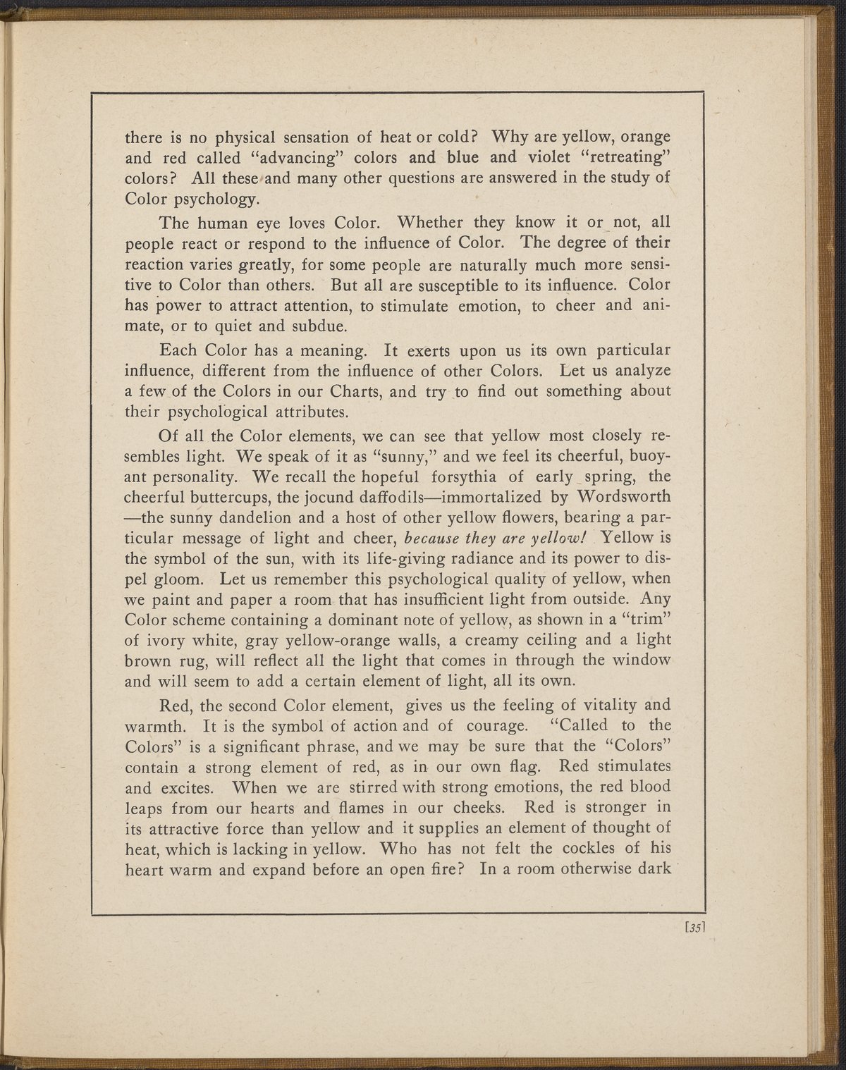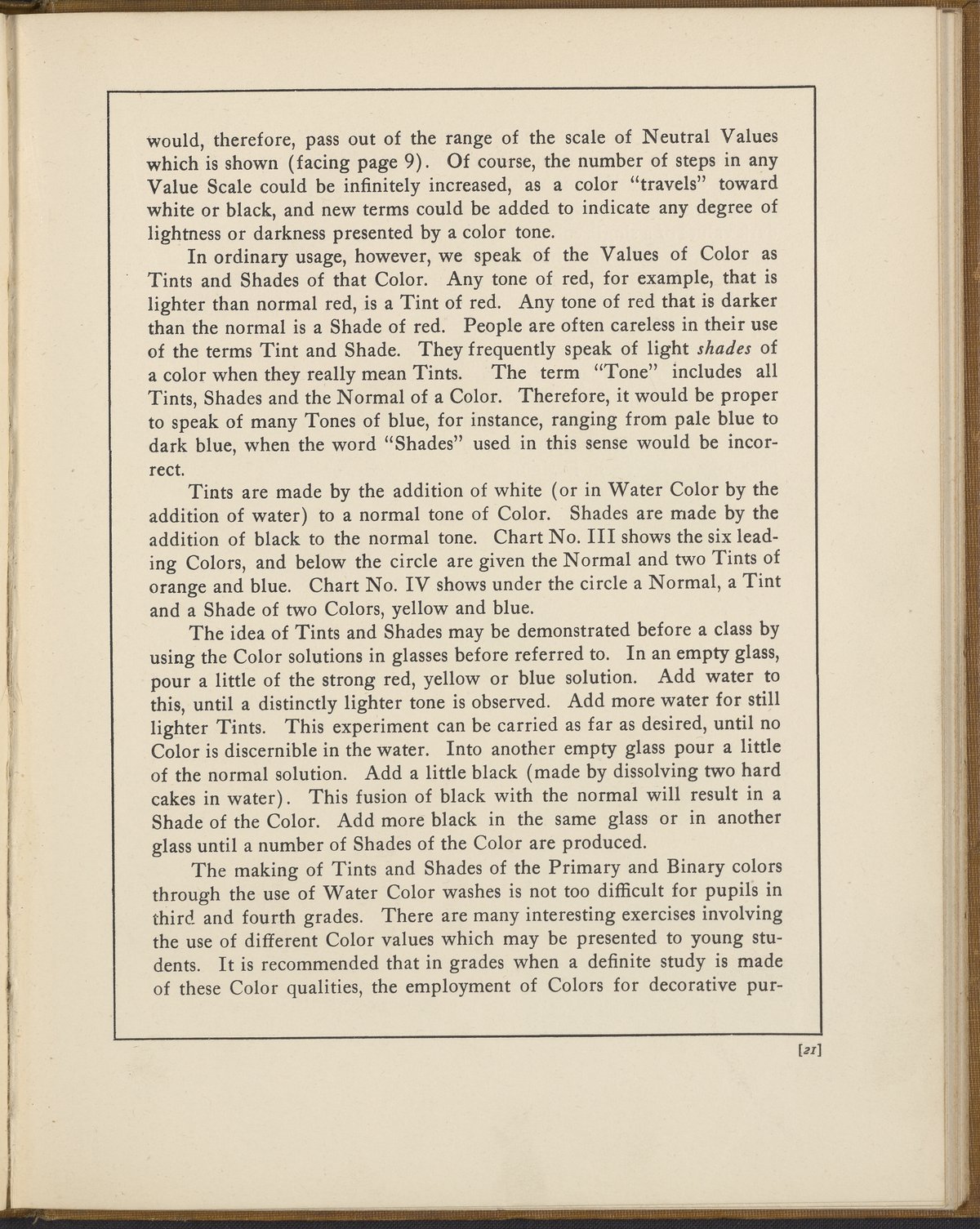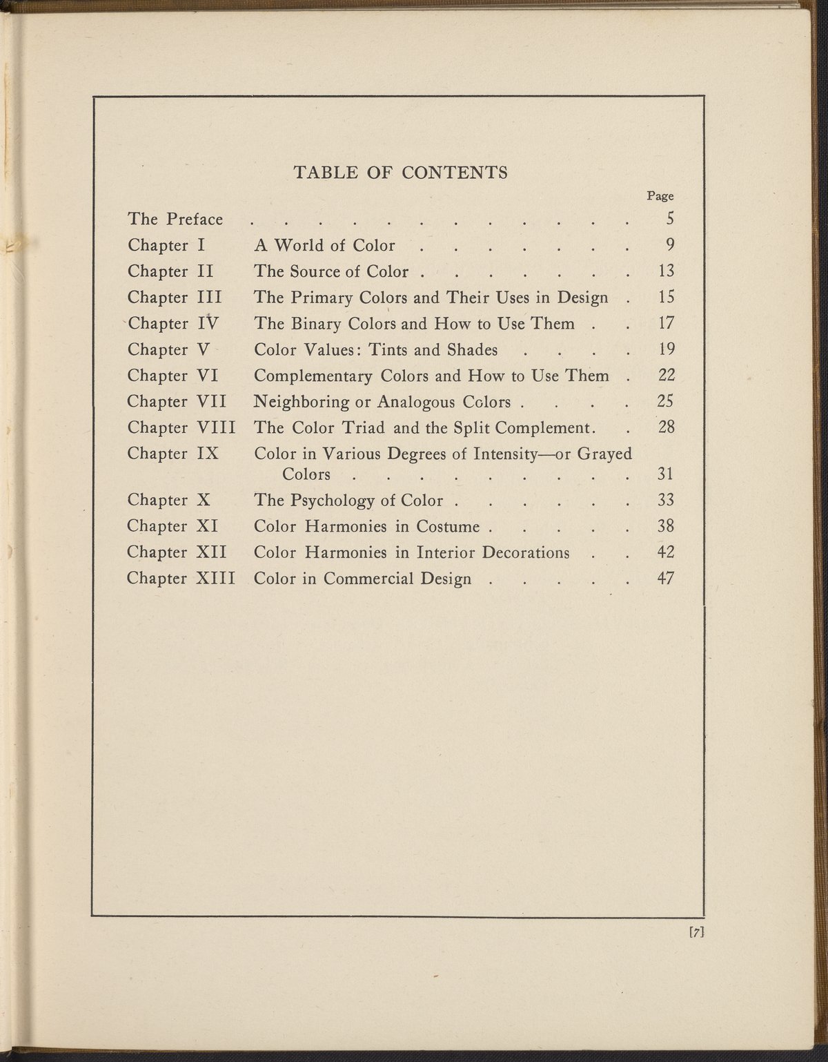 Small JPG1200 x 1483px — 460 KBLarge JPG2880 x 3558px — 2.4 MBFull-sized JPG3448 x 4260px — 3.2 MBOriginal fileTIFF — 3448 x 4260px — 42.1 MBWork intended to convey to the average person the laws and principles of color to improve their appreciation, understanding, and employment of color in daily life. Includes nine pages of color samples that collectively illustrate concepts of color theory.
