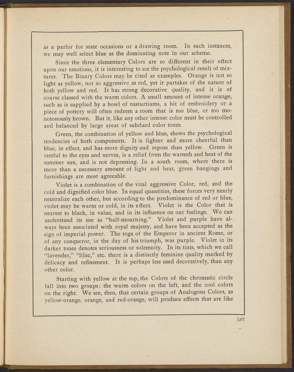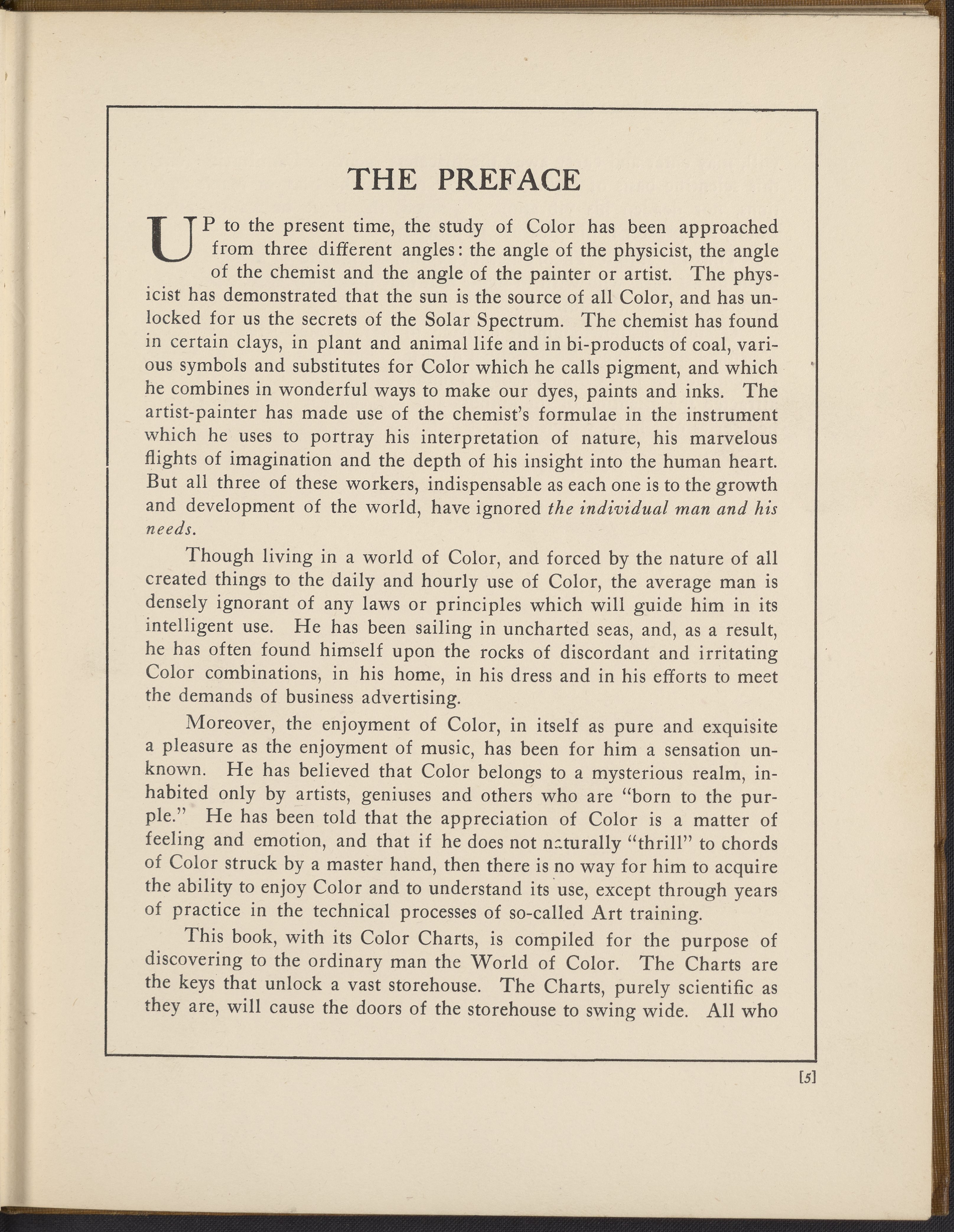 Small JPG1200 x 1483px — 460 KBLarge JPG2880 x 3558px — 2.4 MBFull-sized JPG3448 x 4260px — 3.2 MBOriginal fileTIFF — 3448 x 4260px — 42.1 MBWork intended to convey to the average person the laws and principles of color to improve their appreciation, understanding, and employment of color in daily life. Includes nine pages of color samples that collectively illustrate concepts of color theory.