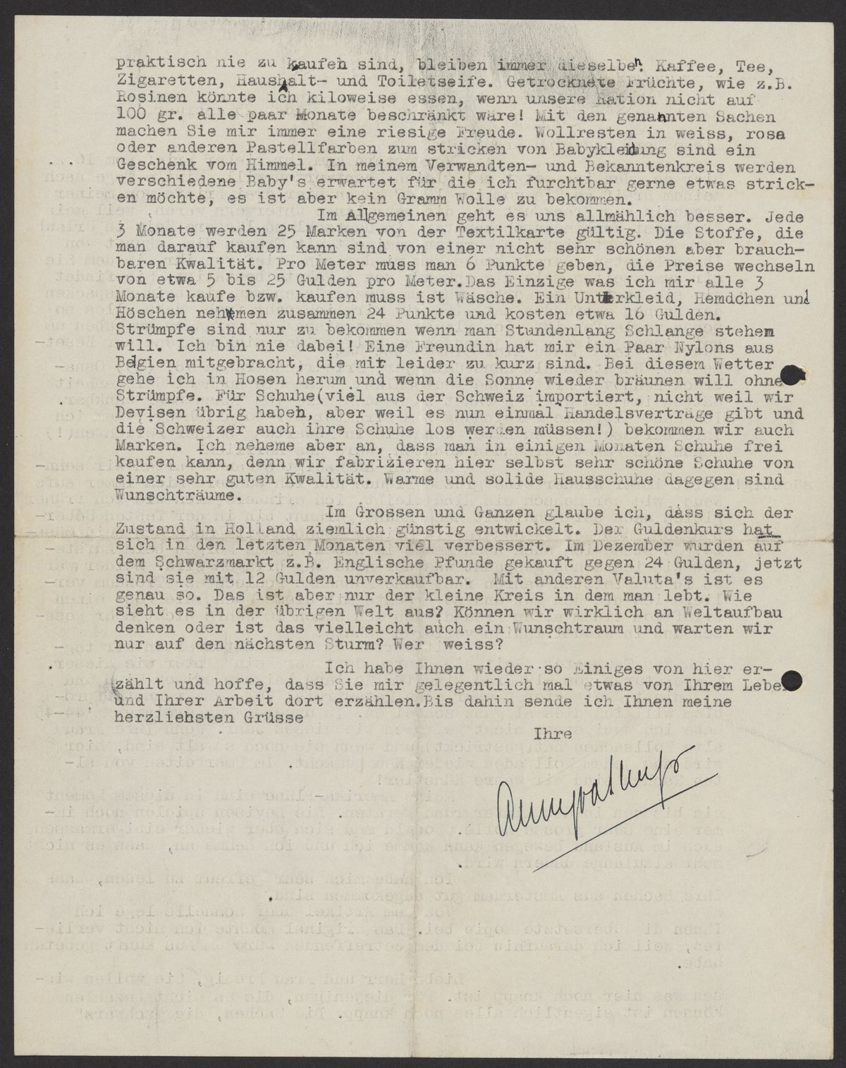 Letter from Anny van der Sluys to Lydia and Max Bredig, February 23, 1947