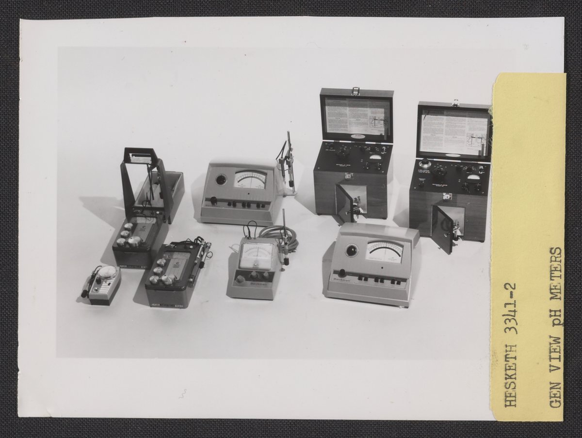 Hesketh, Dean D. “Various Models of Beckman PH Meters,” 1960–1969. Beckman Historical Collection, Box 86. Science History Institute. Philadelphia. https://digital.sciencehistory.org/works/5138jf27h.