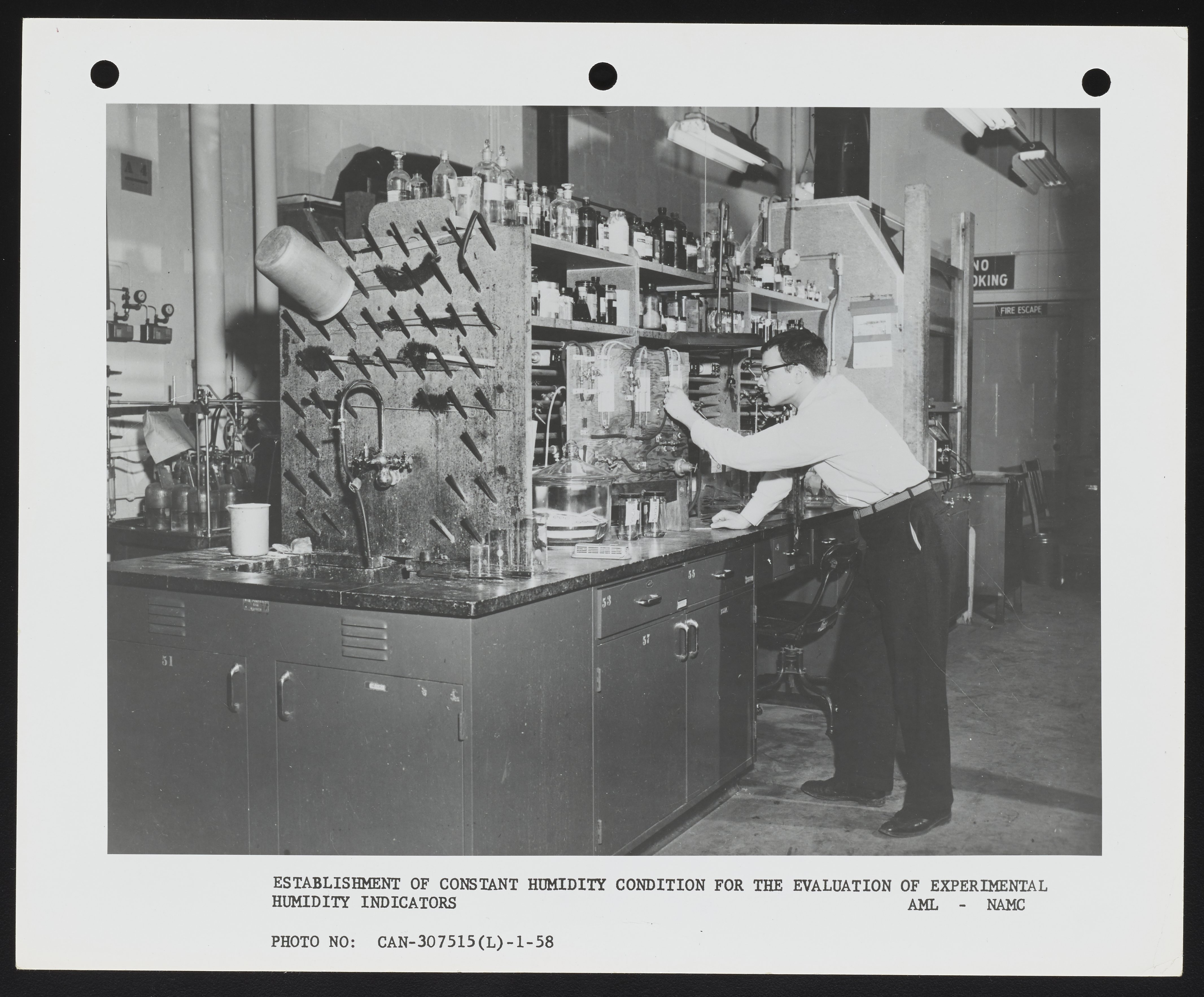 Naval Air Material Center, and United States. Navy. “Establishment of Constant Humidity Condition for the Evaluation of Experimental Humidity Indicators,” 1958. Photographs from the Papers of J. Hartley Bowen, Box 1. Science History Institute. Philadelphia. https://digital.sciencehistory.org/works/5425k973n.