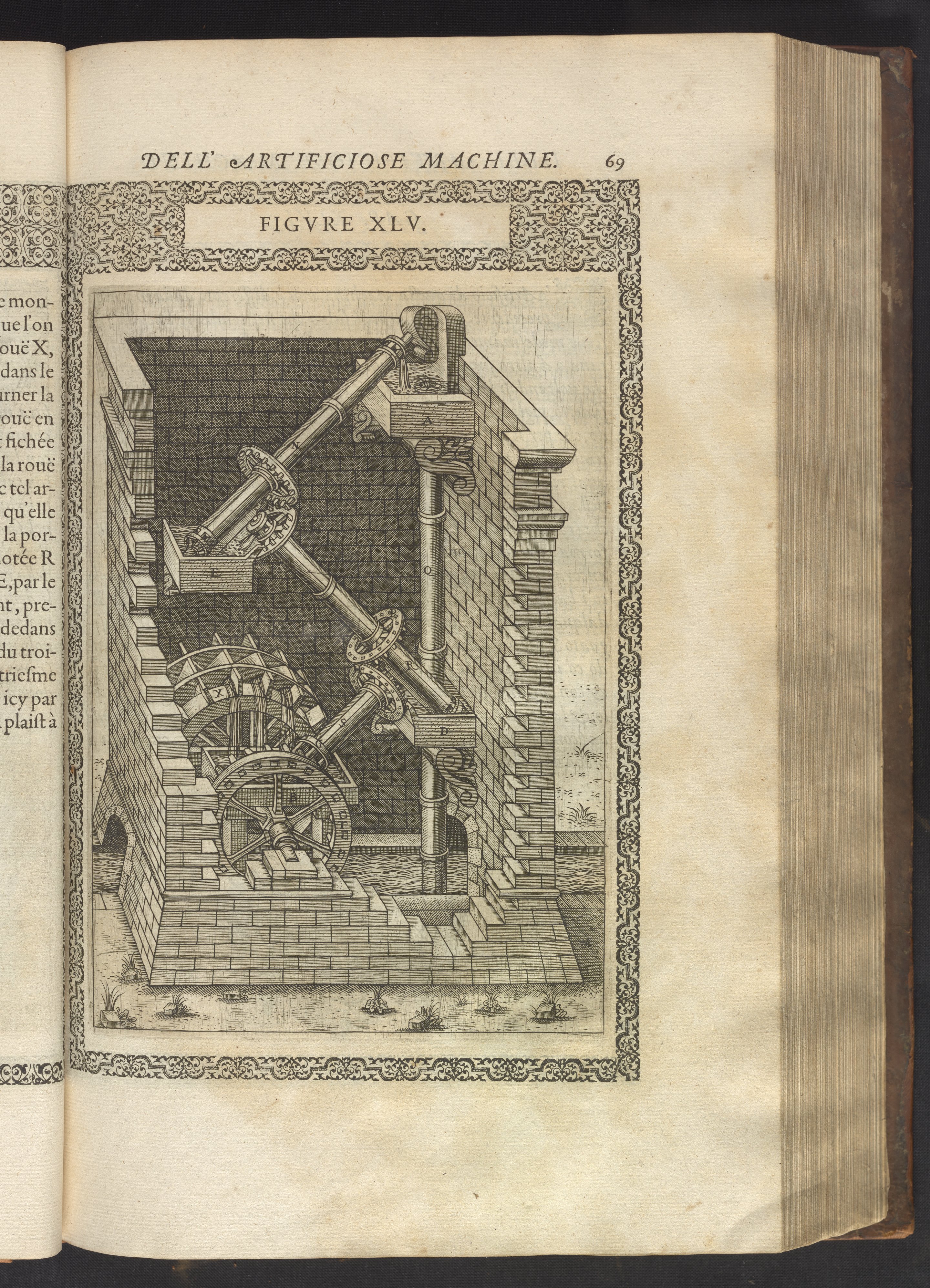 Ramelli, Agostino. “Plate 45: Device for Raising Water from a Canal, River, or Spring.” In Le Diverse Et Artificiose Machine Del Capitano Agostino Ramelli. Paris, France, 1588. https://digital.sciencehistory.org/works/5425k989j.