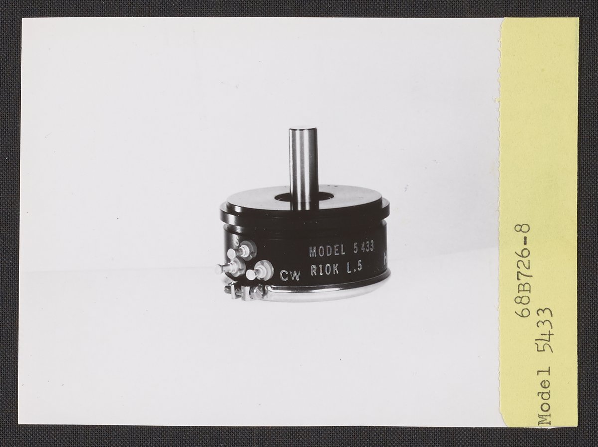 Beckman Instruments Photographic Services Section. “Helipot Model 5433 Potentiometer,” 1968. Beckman Historical Collection, Box 86. Science History Institute. Philadelphia. https://digital.sciencehistory.org/works/5425kb14p.