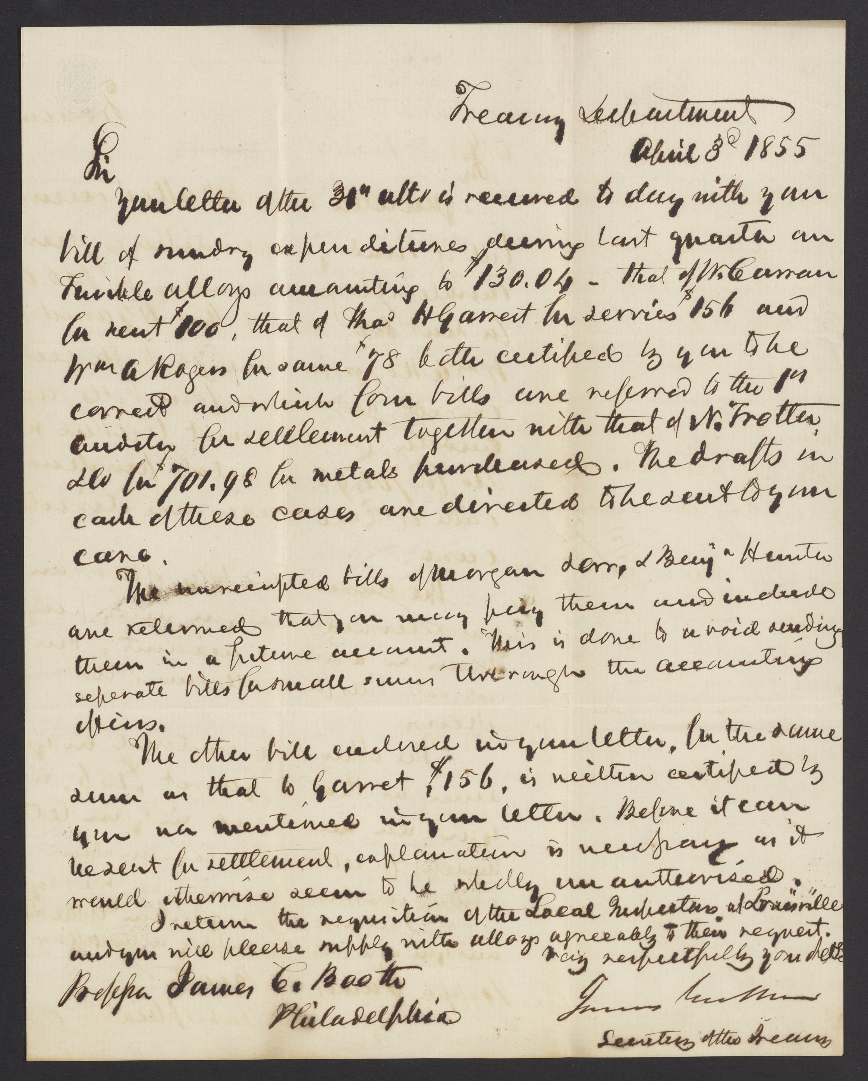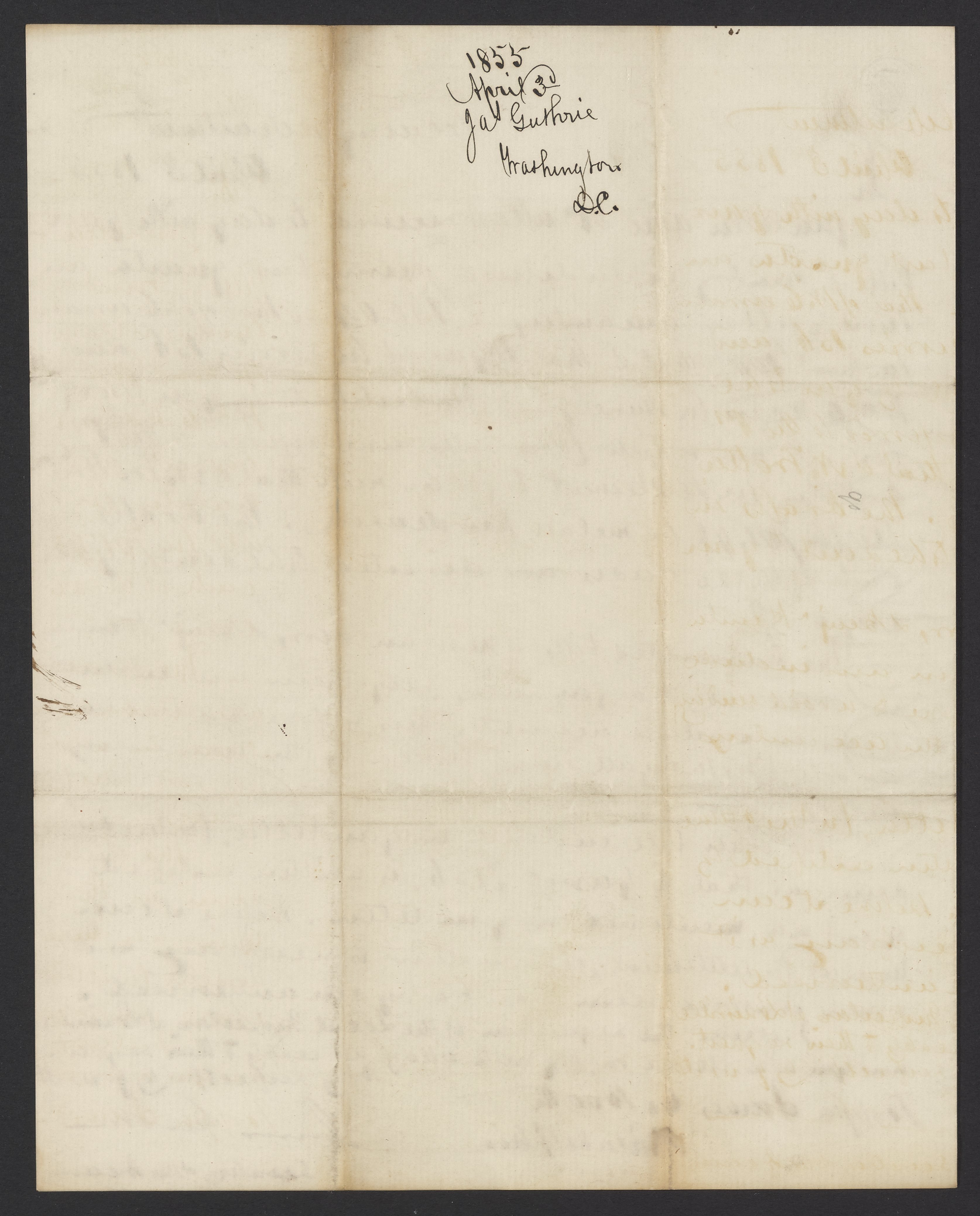 Letter from James B. Guthrie to James Curtis Booth, April 3, 1855