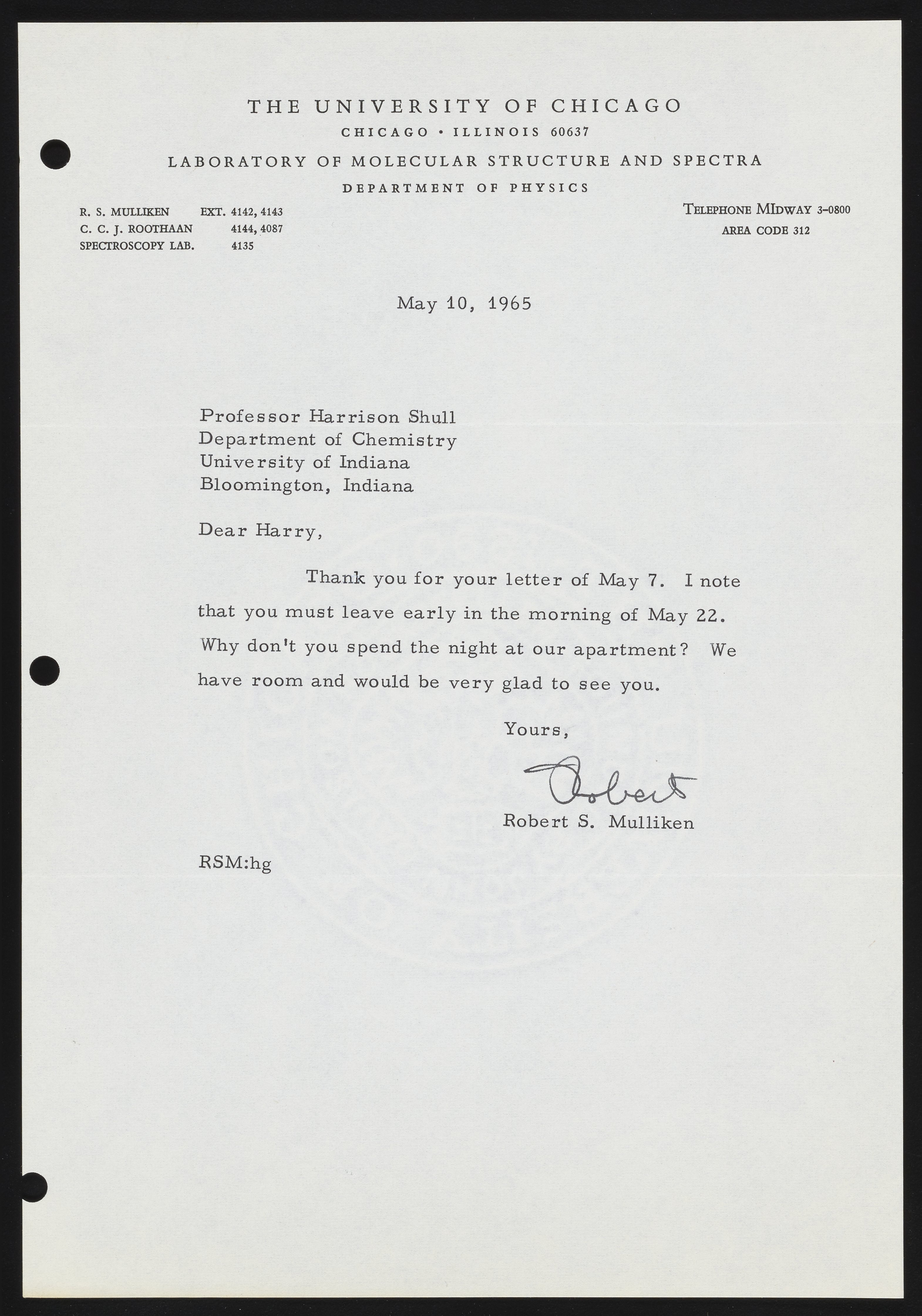 Letter from Robert S. Mulliken to Harrison Shull, 1965