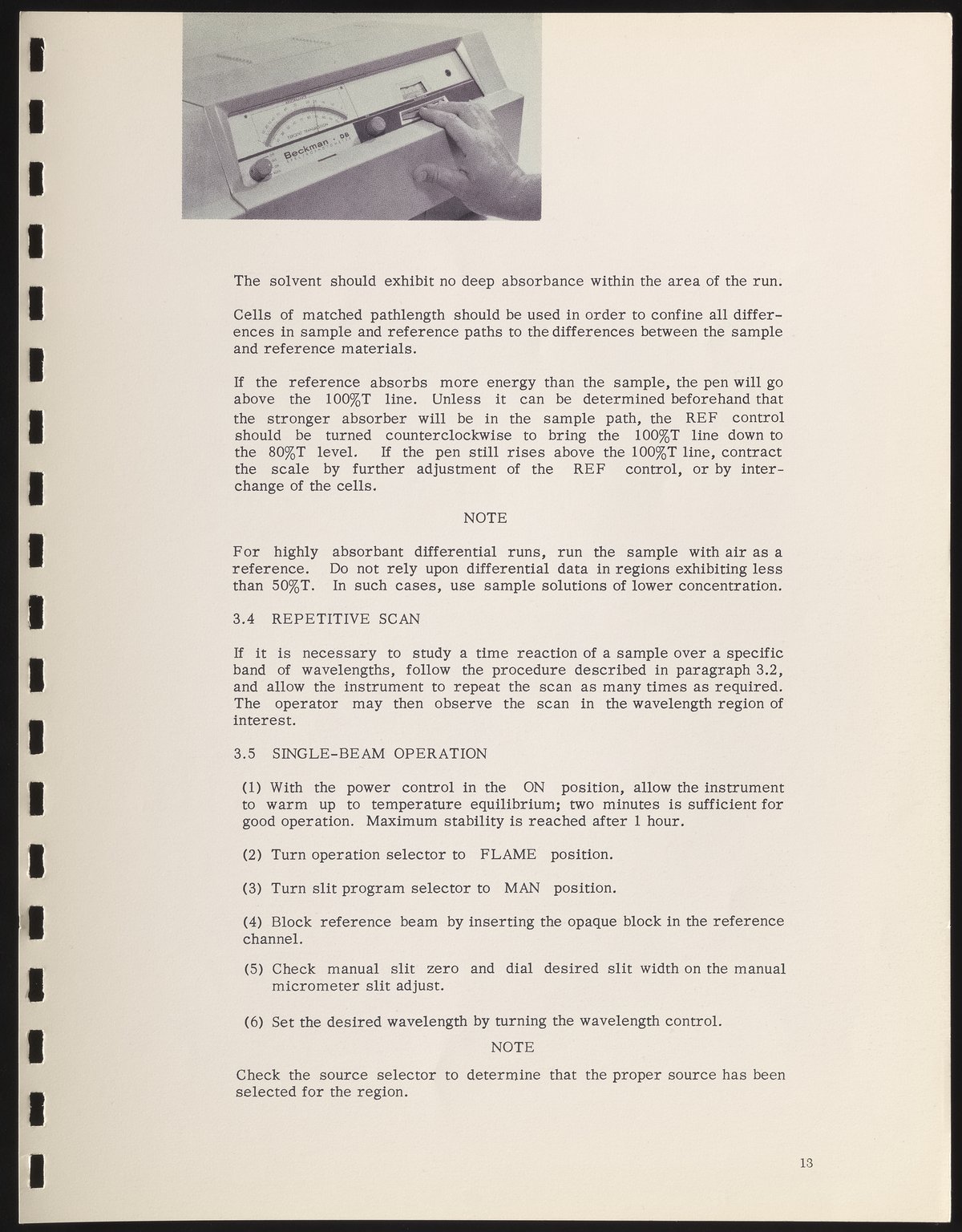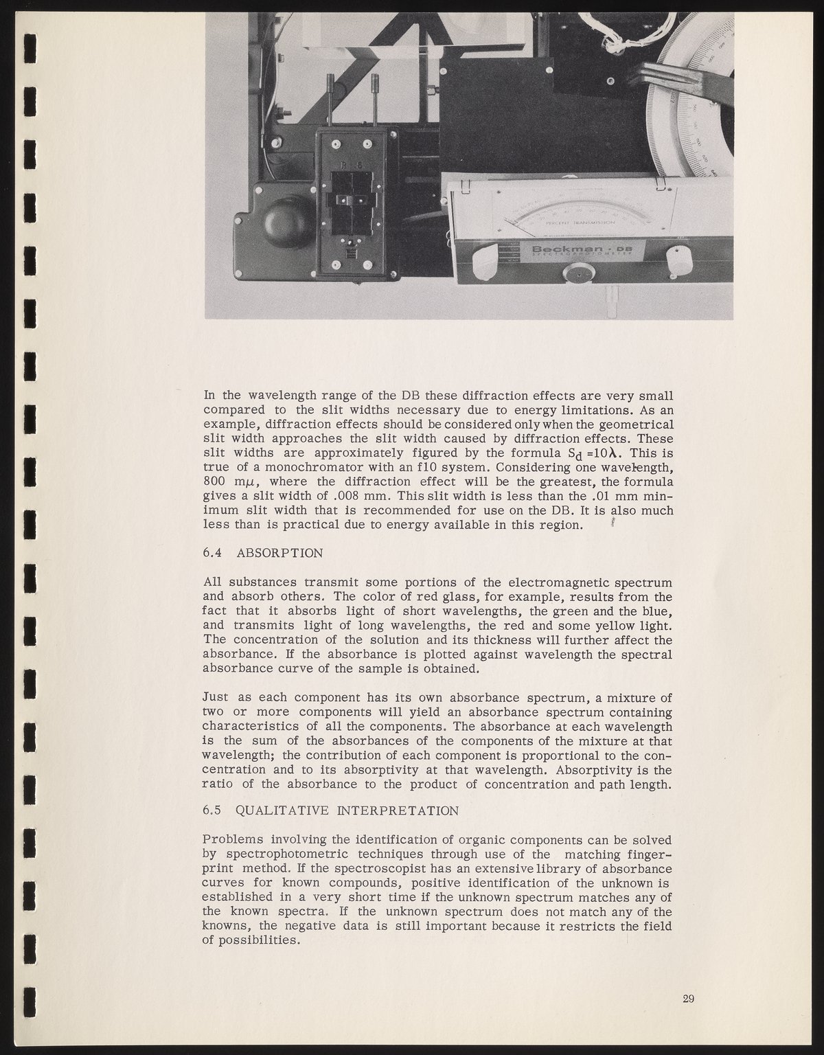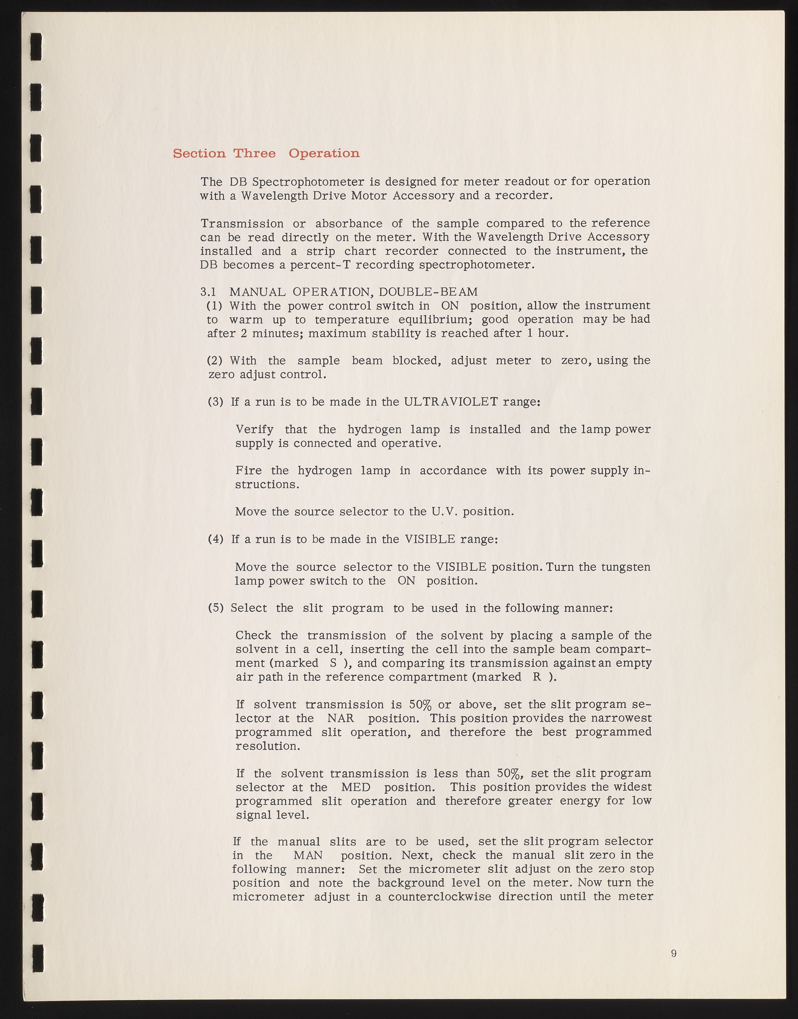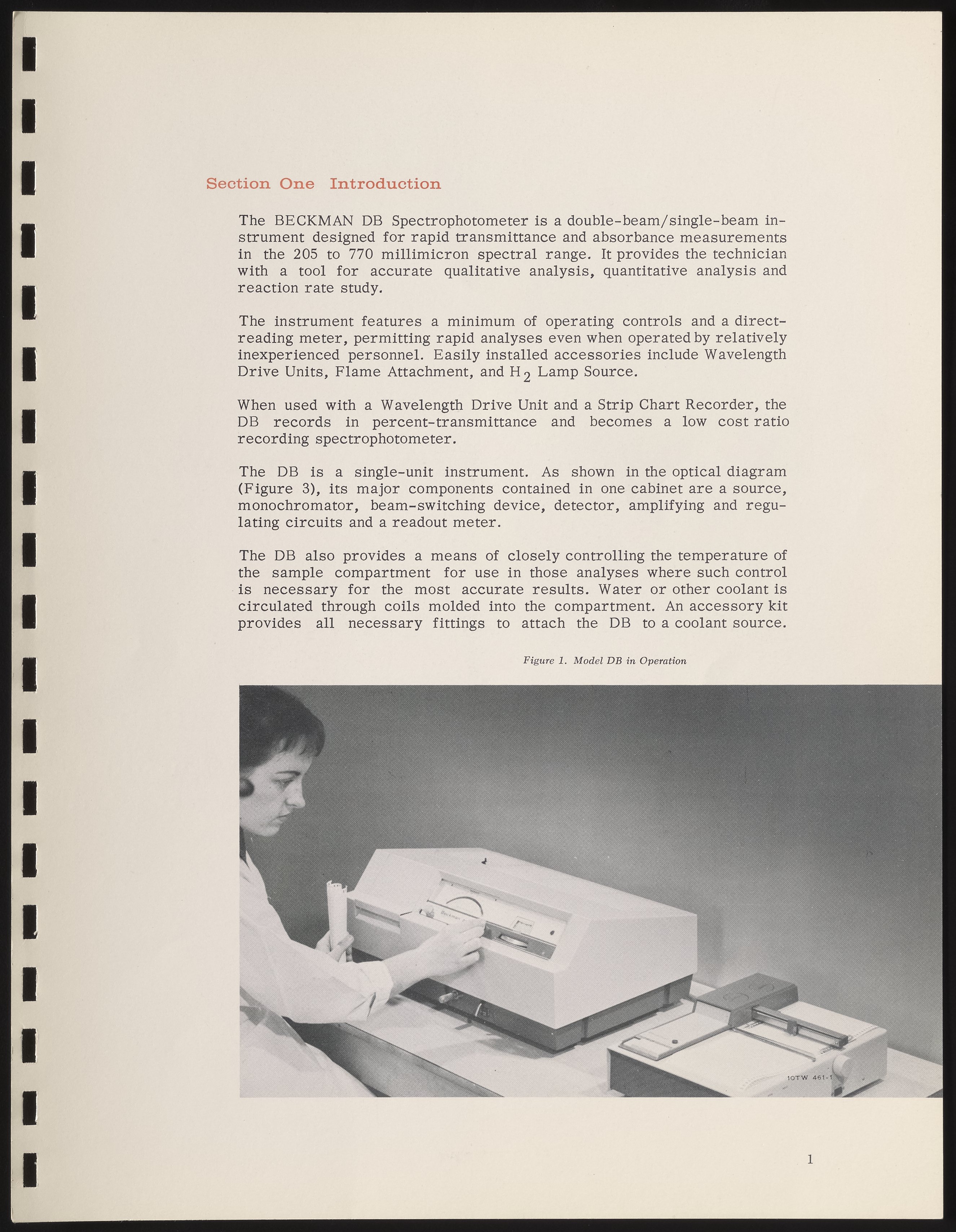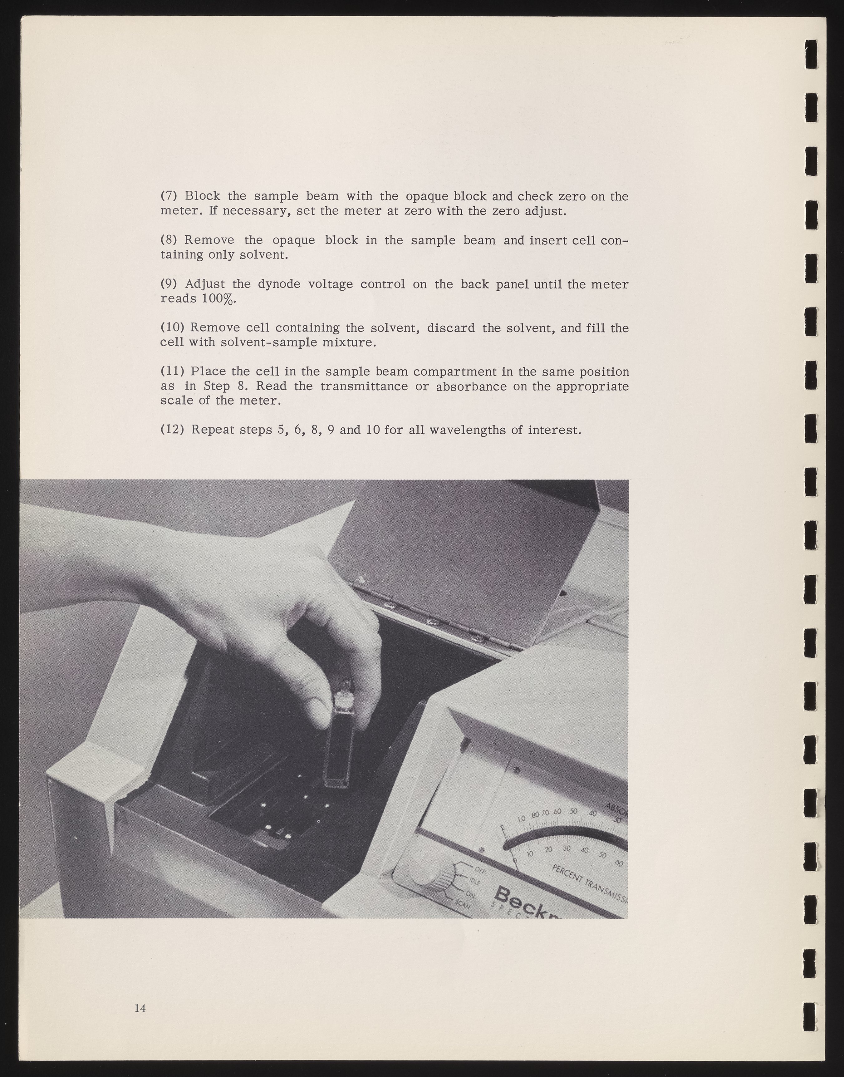 Beckman Instruments, Inc. “Beckman Model DB Spectrophotometer Instruction Manual,” 1960. Beckman Historical Collection, Box 106, Folder 2. Science History Institute. Philadelphia. https://digital.sciencehistory.org/works/5h73pw14h.