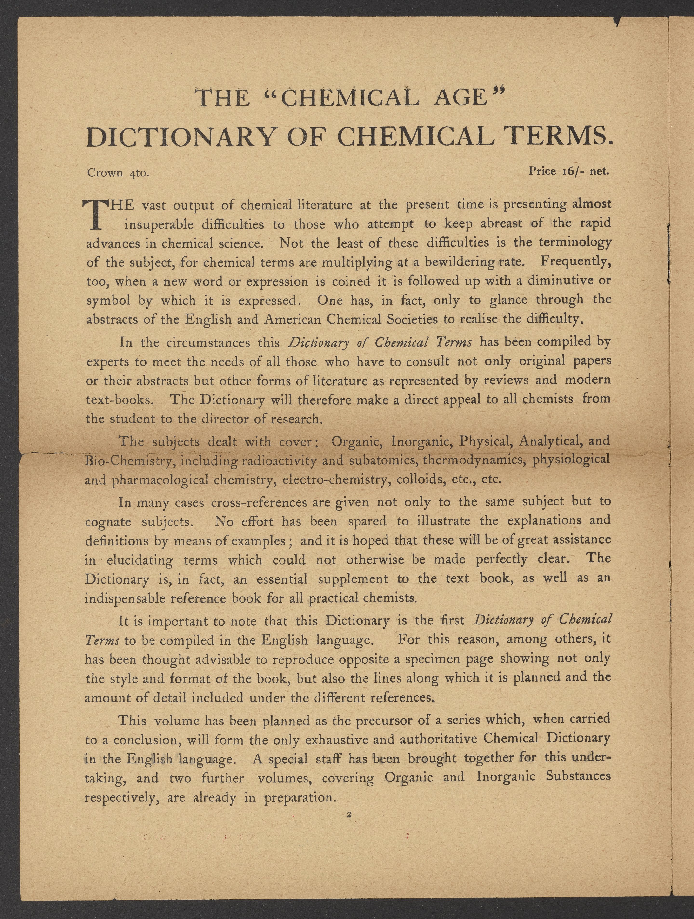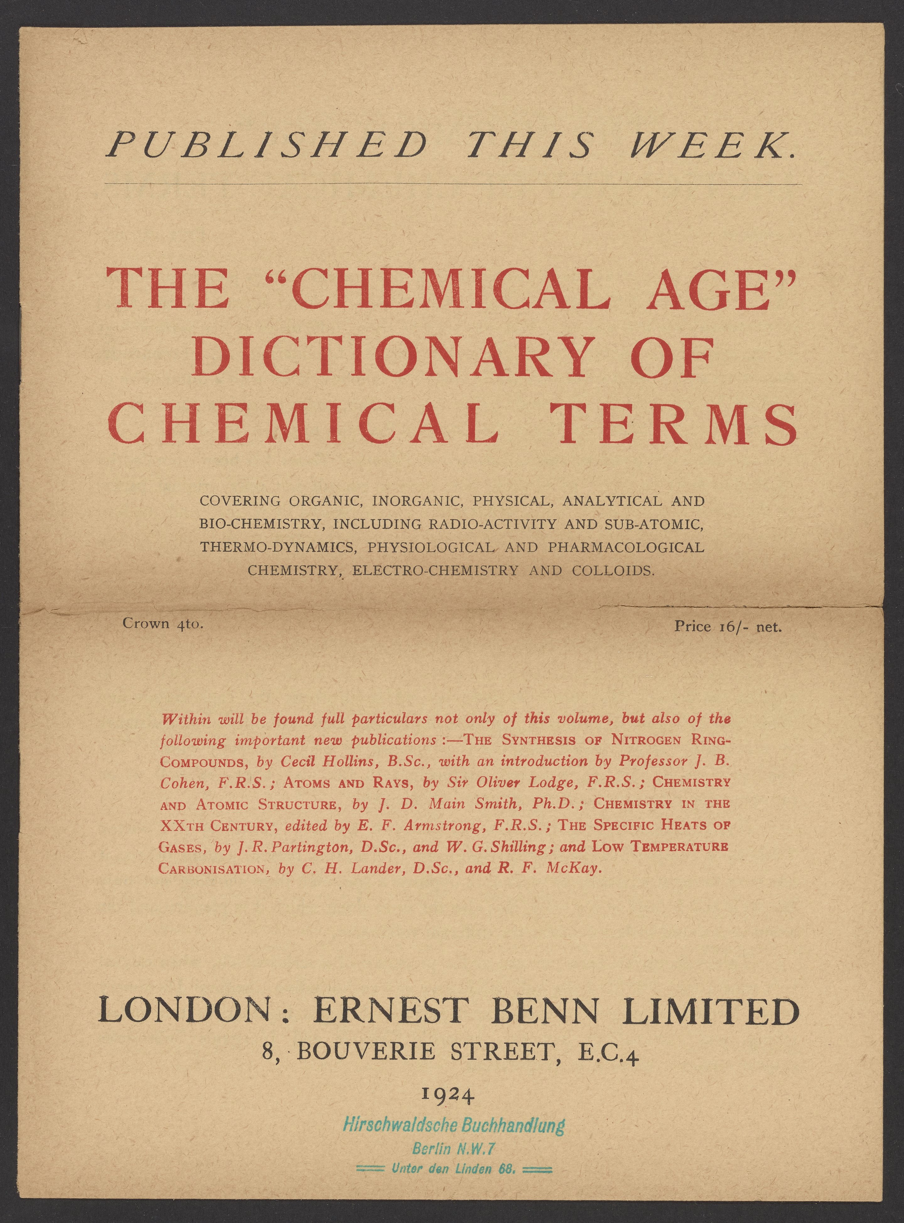Published This Week: The "Chemical Age" Dictionary of Chemical Terms