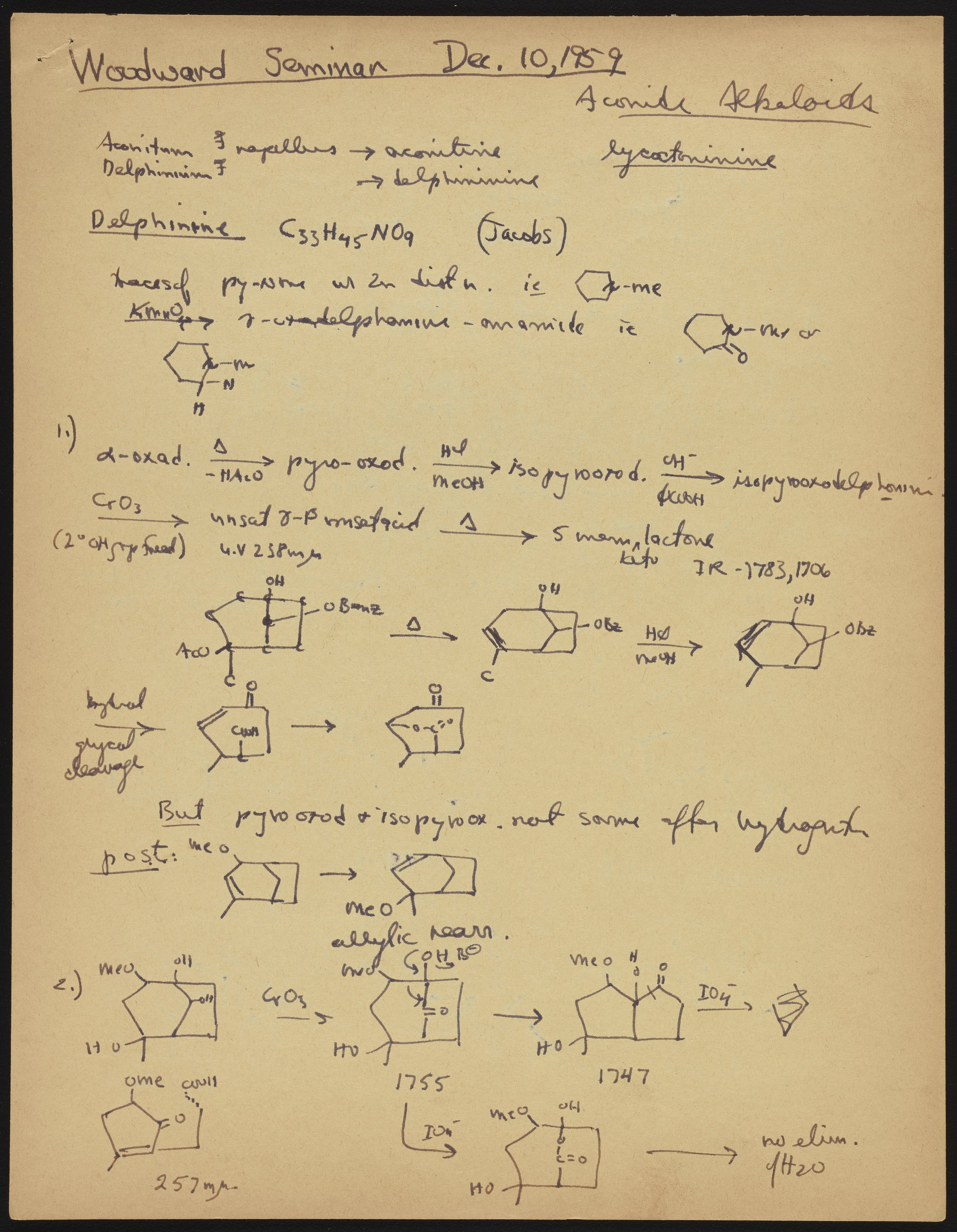 R. B. (Robert Burns) Woodward Seminar entitled "Aconide Alkaloids Lycoctoninine"