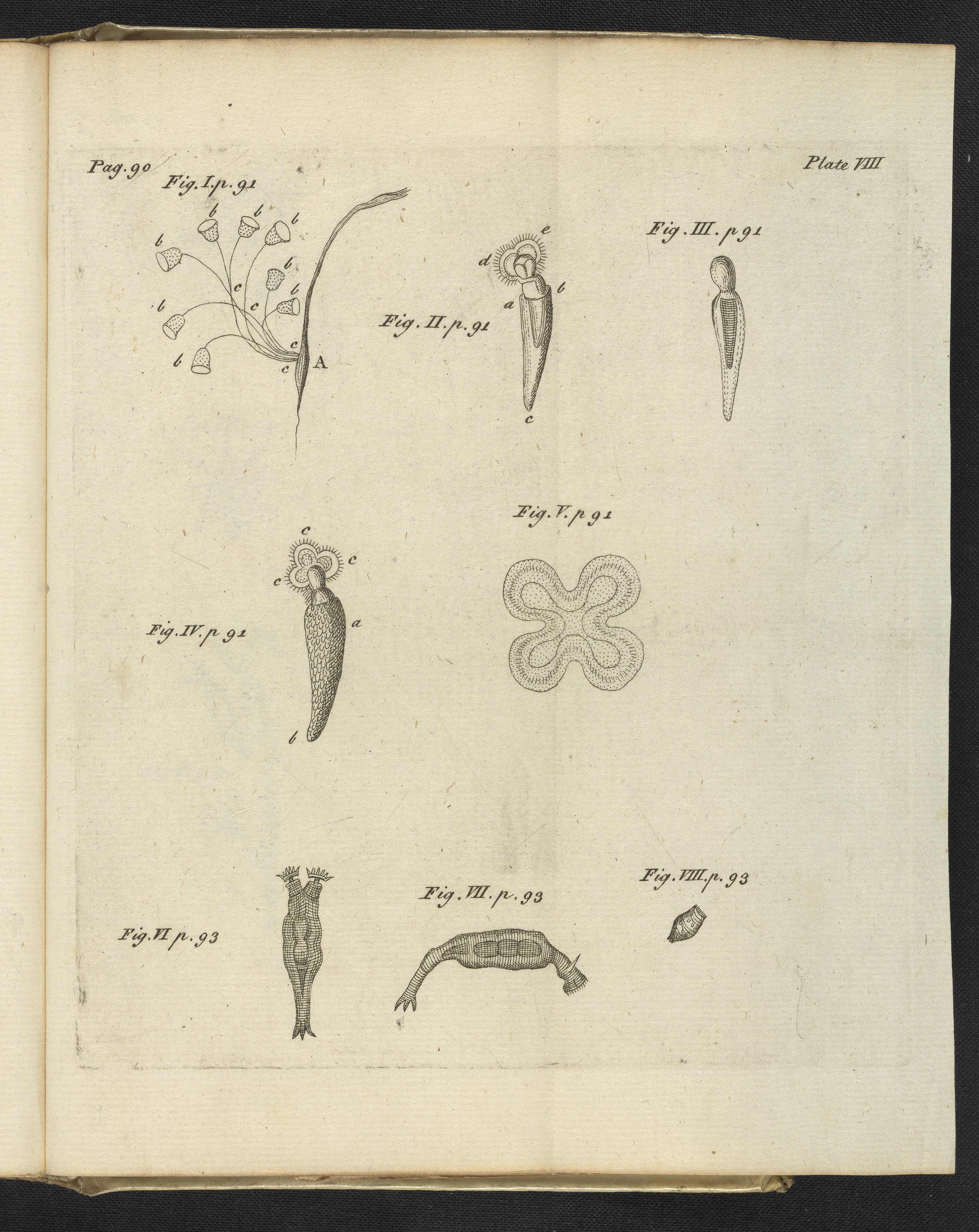 Baker, Henry. “Plate VIII: Animalcules Adhering to the Roots of Duckweed.” In The Microscope Made Easy. London, England: Robert Dodsley, 1743. https://digital.sciencehistory.org/works/5p5tkmt.