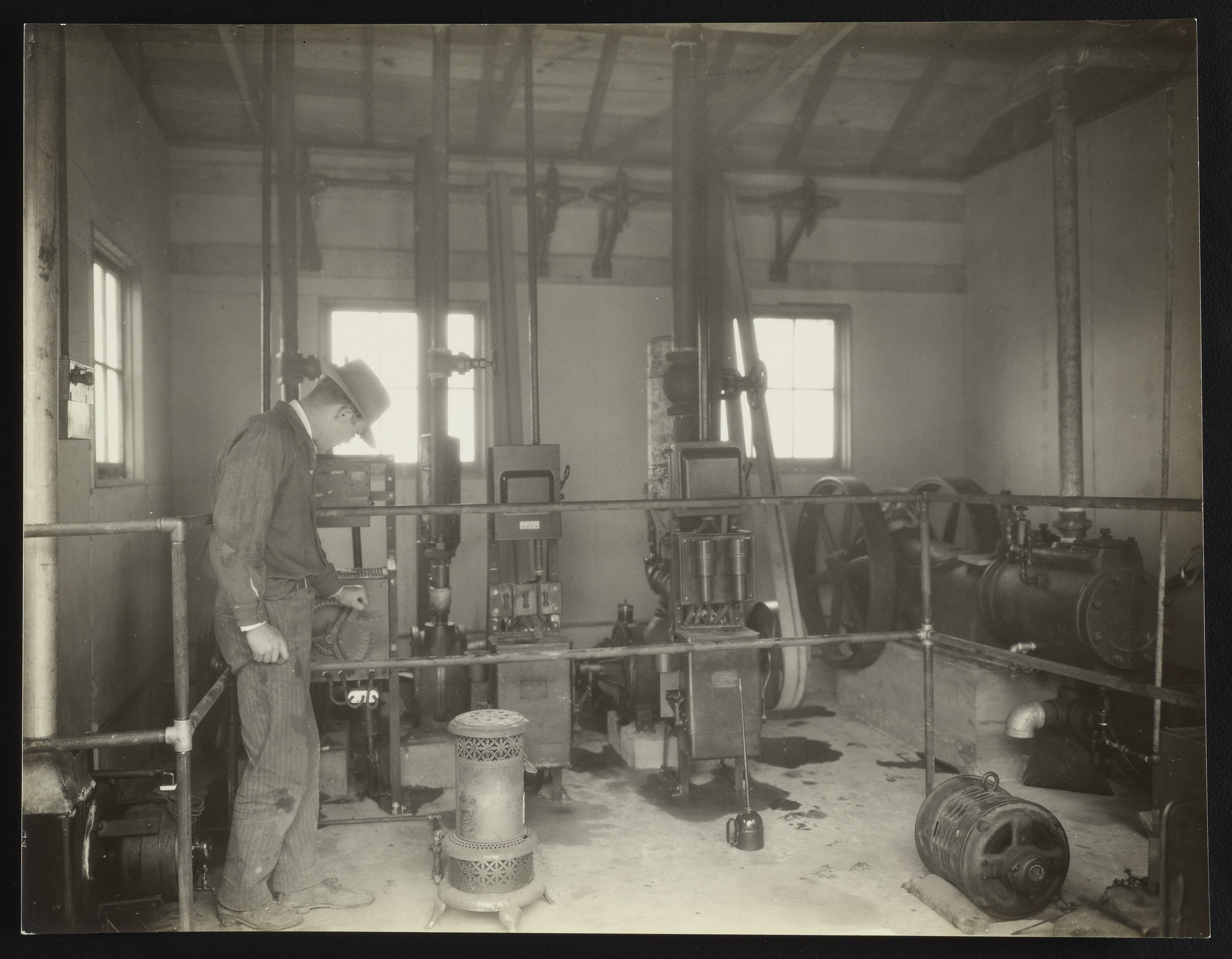 “Travis P. Hignett with Blowing Engines for Experimental Blast Furnace,” March 21, 1930. Travis P. Hignett Collection of Fixed Nitrogen Research Laboratory Photographs, Box 3. Science History Institute. Philadelphia. https://digital.sciencehistory.org/works/5q47rp12q.