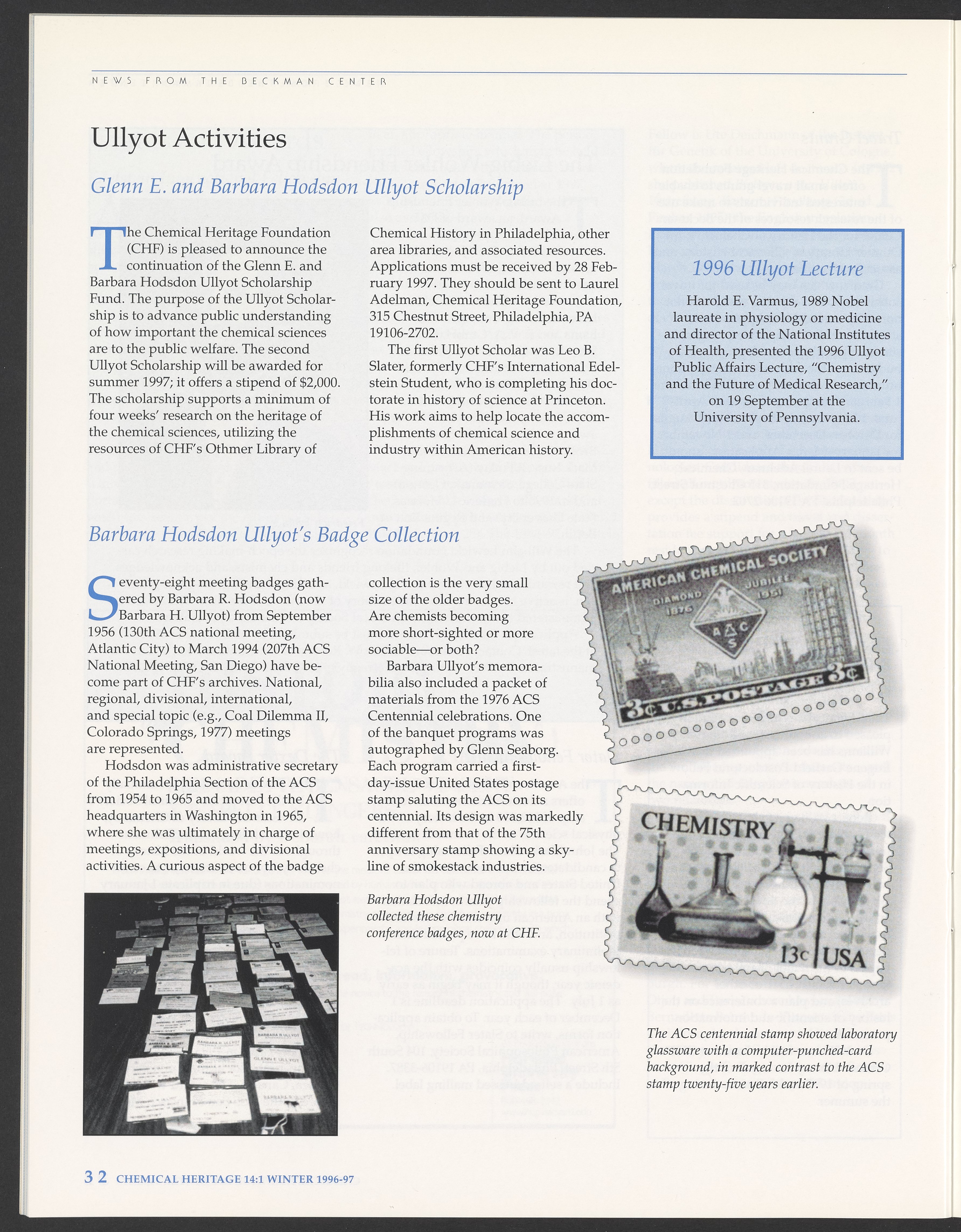 Chemical Heritage, Volume 14 Number 1
