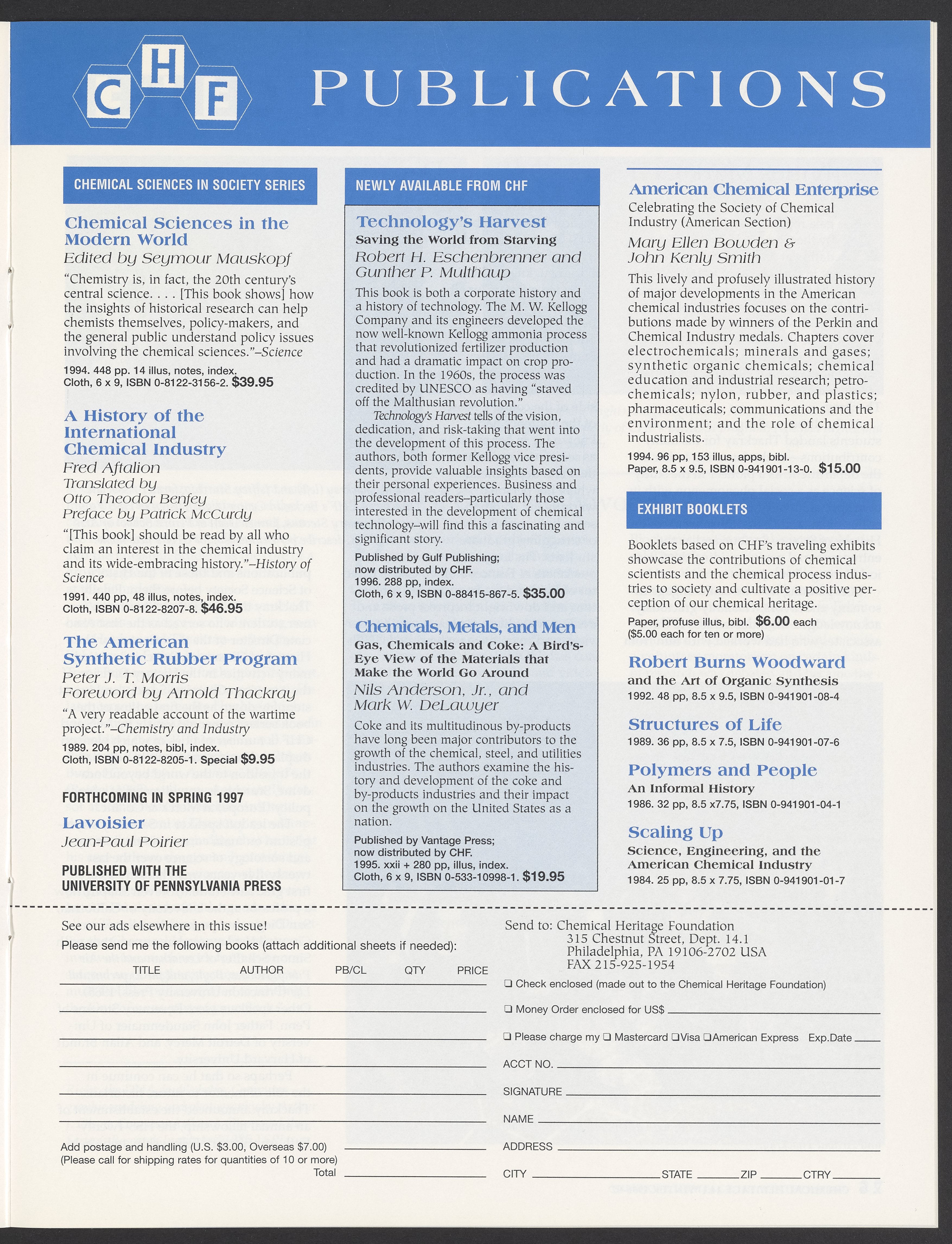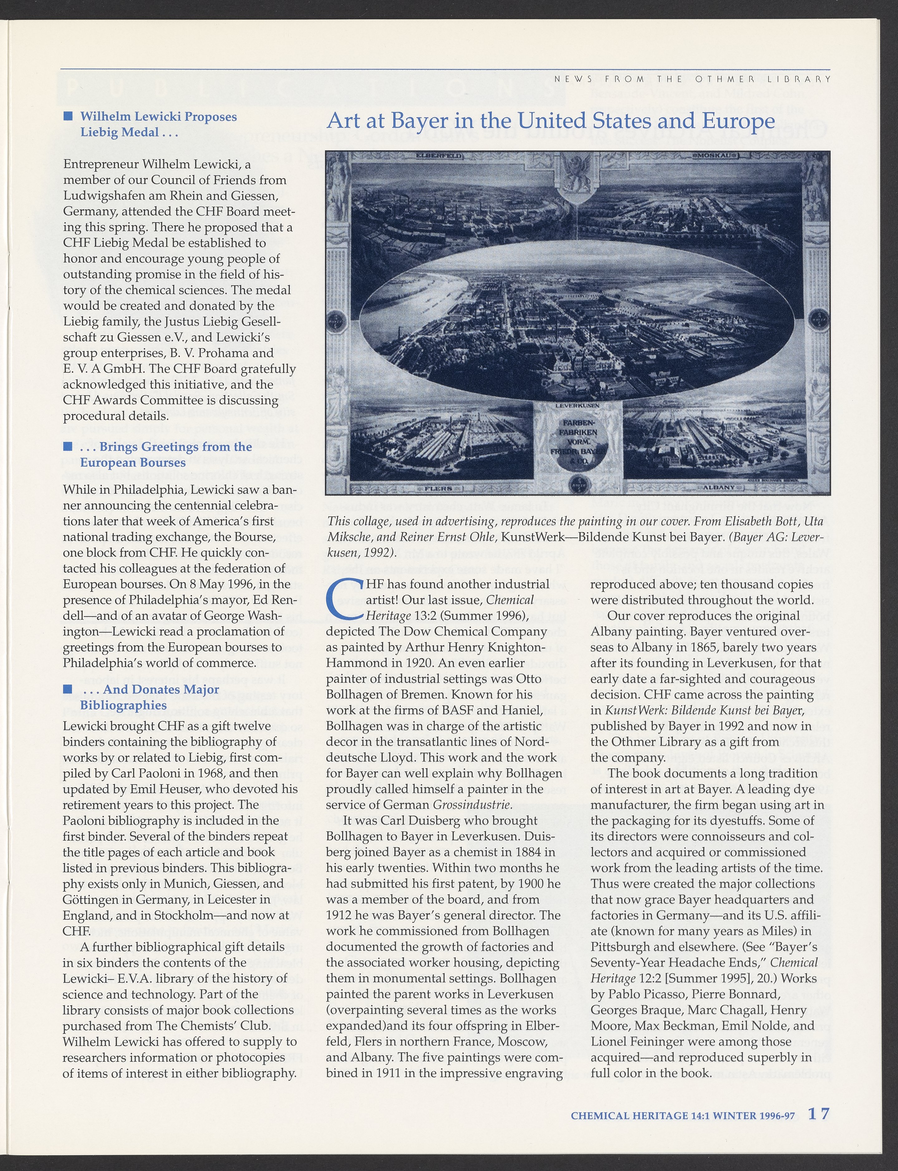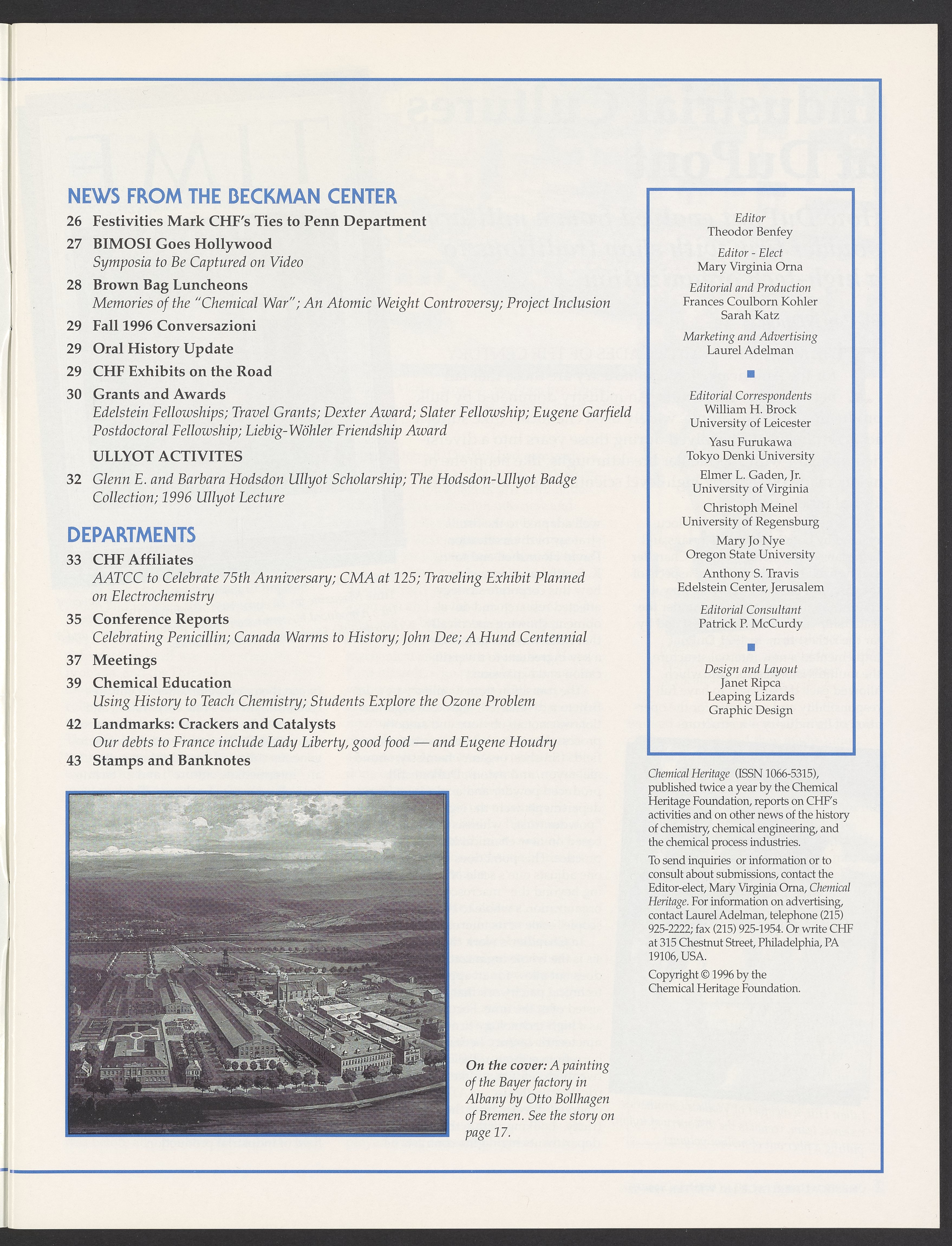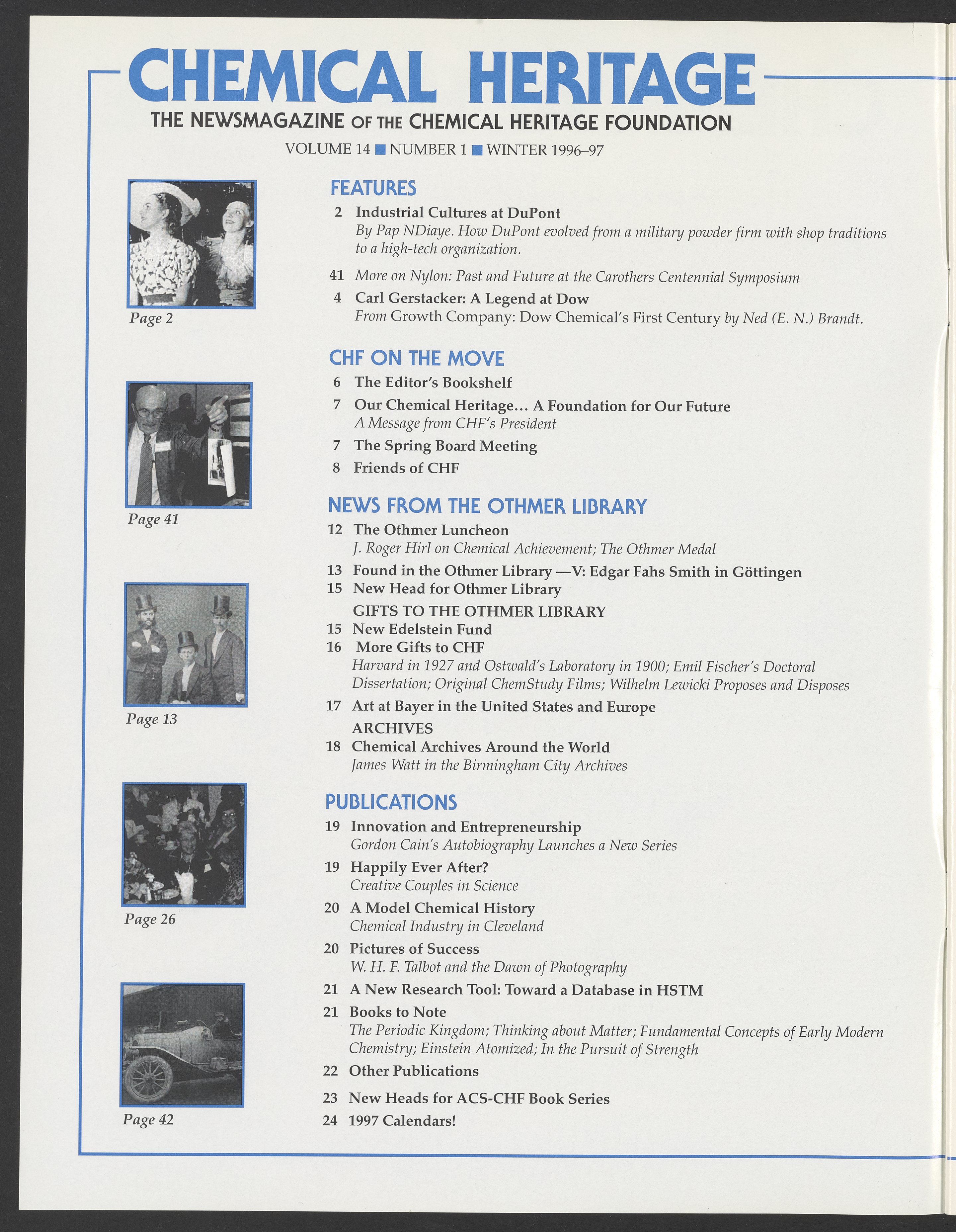 “Chemical Heritage, Volume 14 Number 1.” Philadelphia, Pennsylvania: Chemical Heritage Foundation, 1996. 099C001. Science History Institute. Philadelphia. https://digital.sciencehistory.org/works/5rbmsw4.