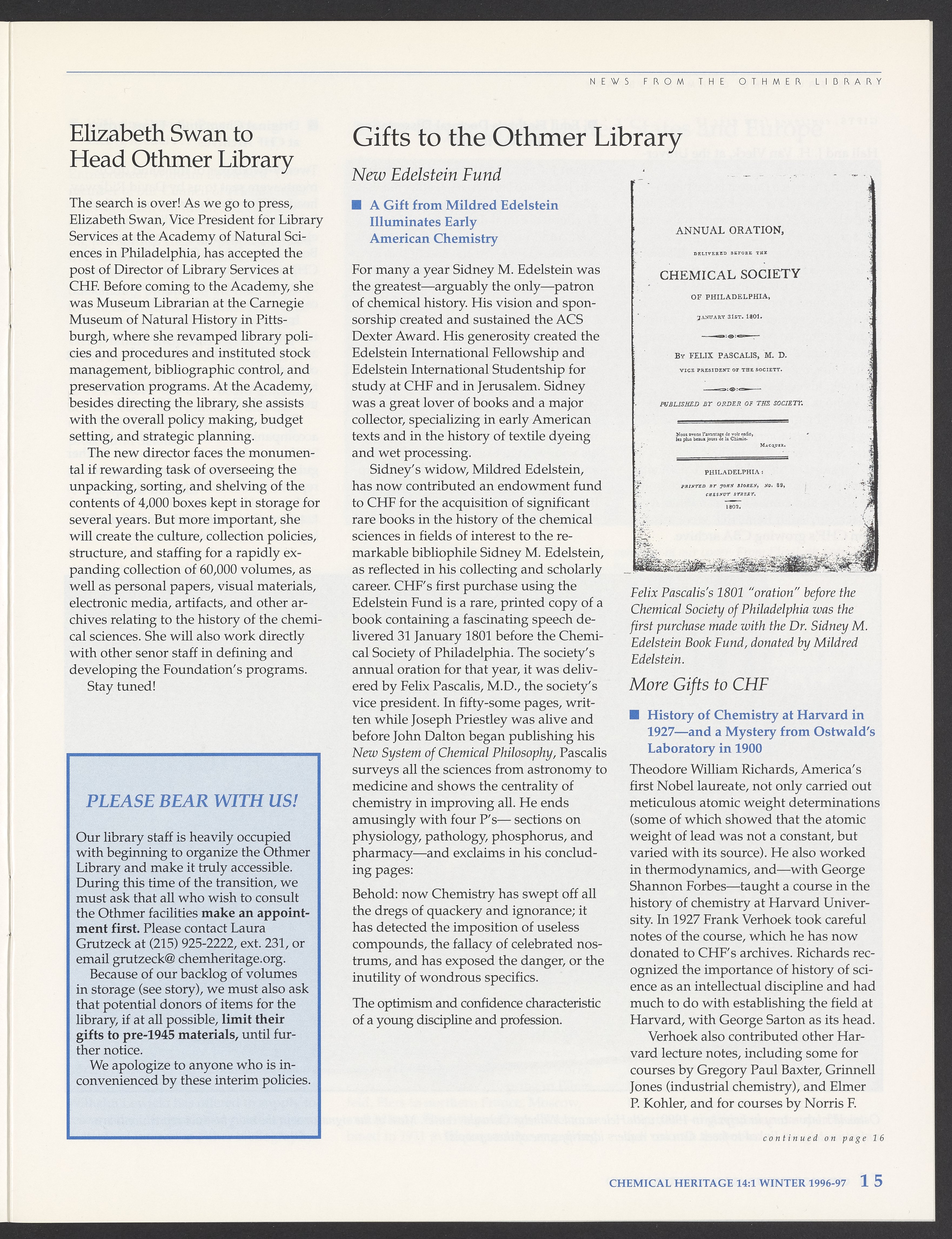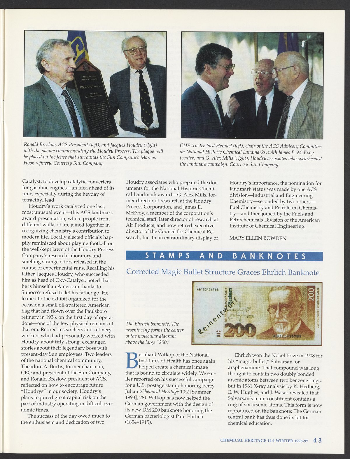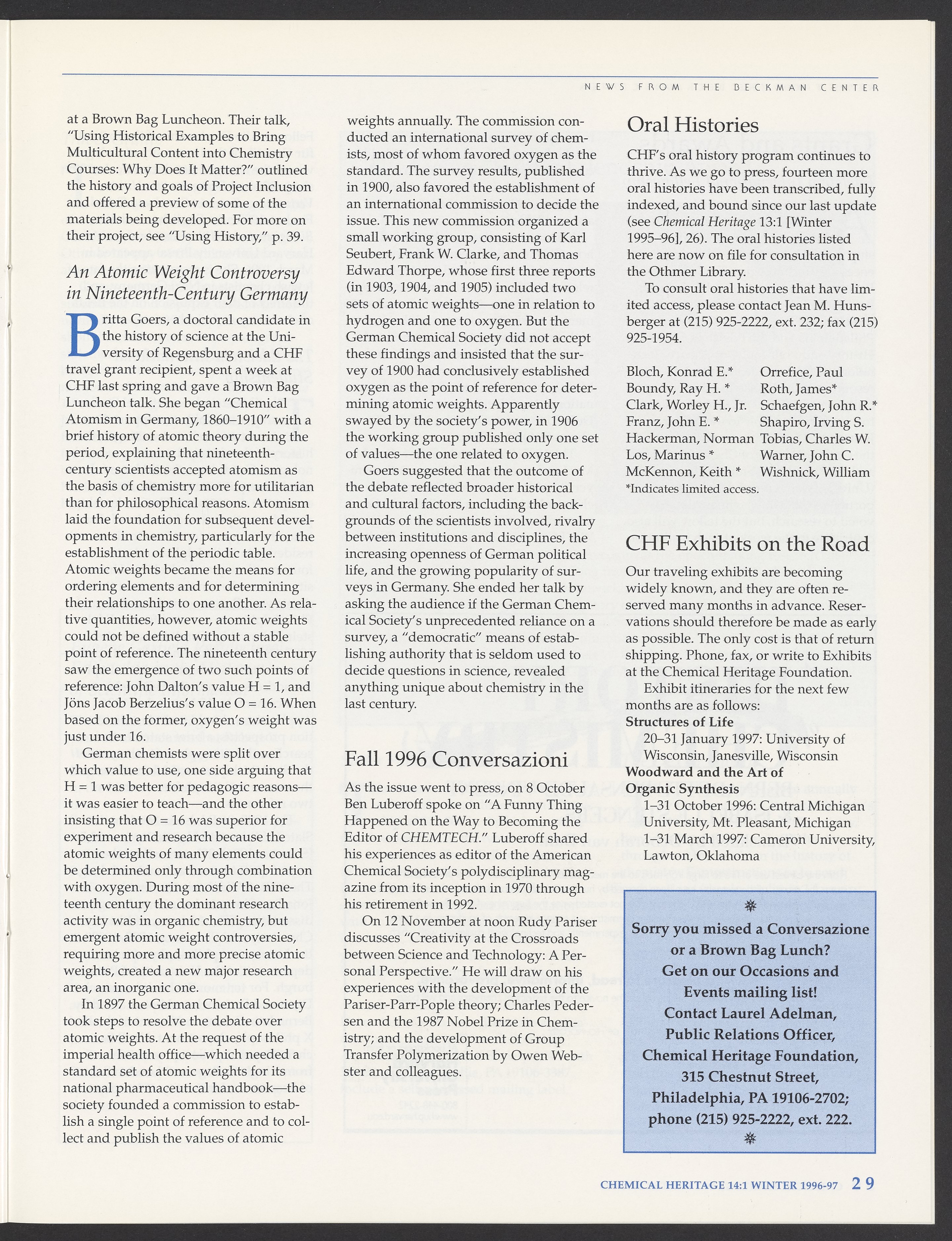 “Chemical Heritage, Volume 14 Number 1.” Philadelphia, Pennsylvania: Chemical Heritage Foundation, 1996. 099C001. Science History Institute. Philadelphia. https://digital.sciencehistory.org/works/5rbmsw4.