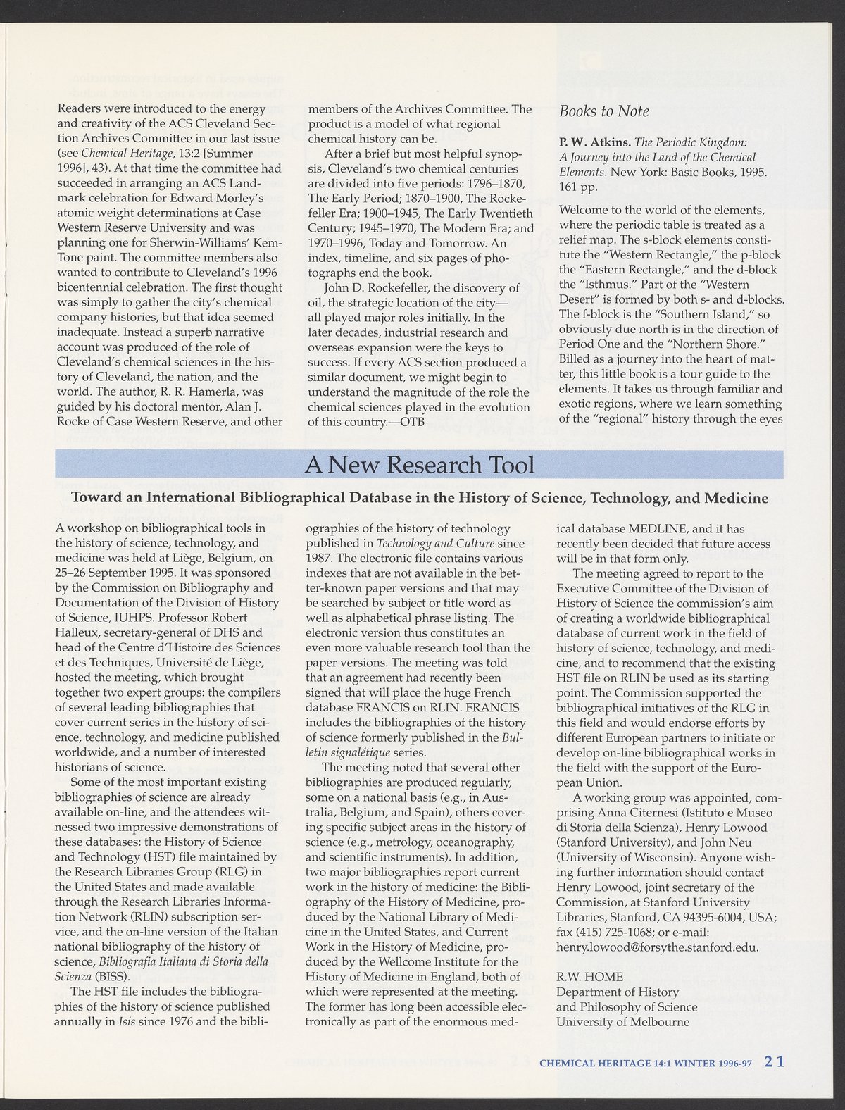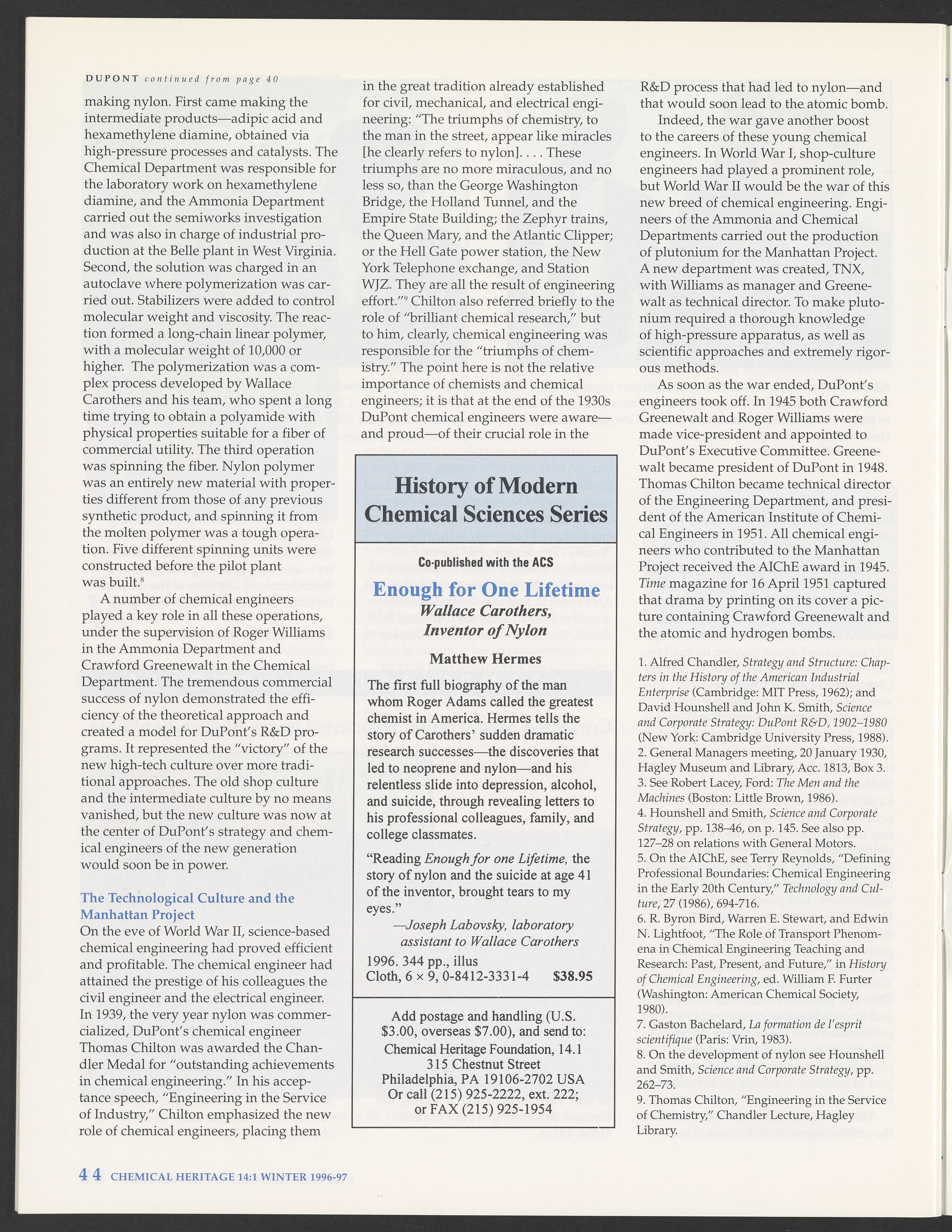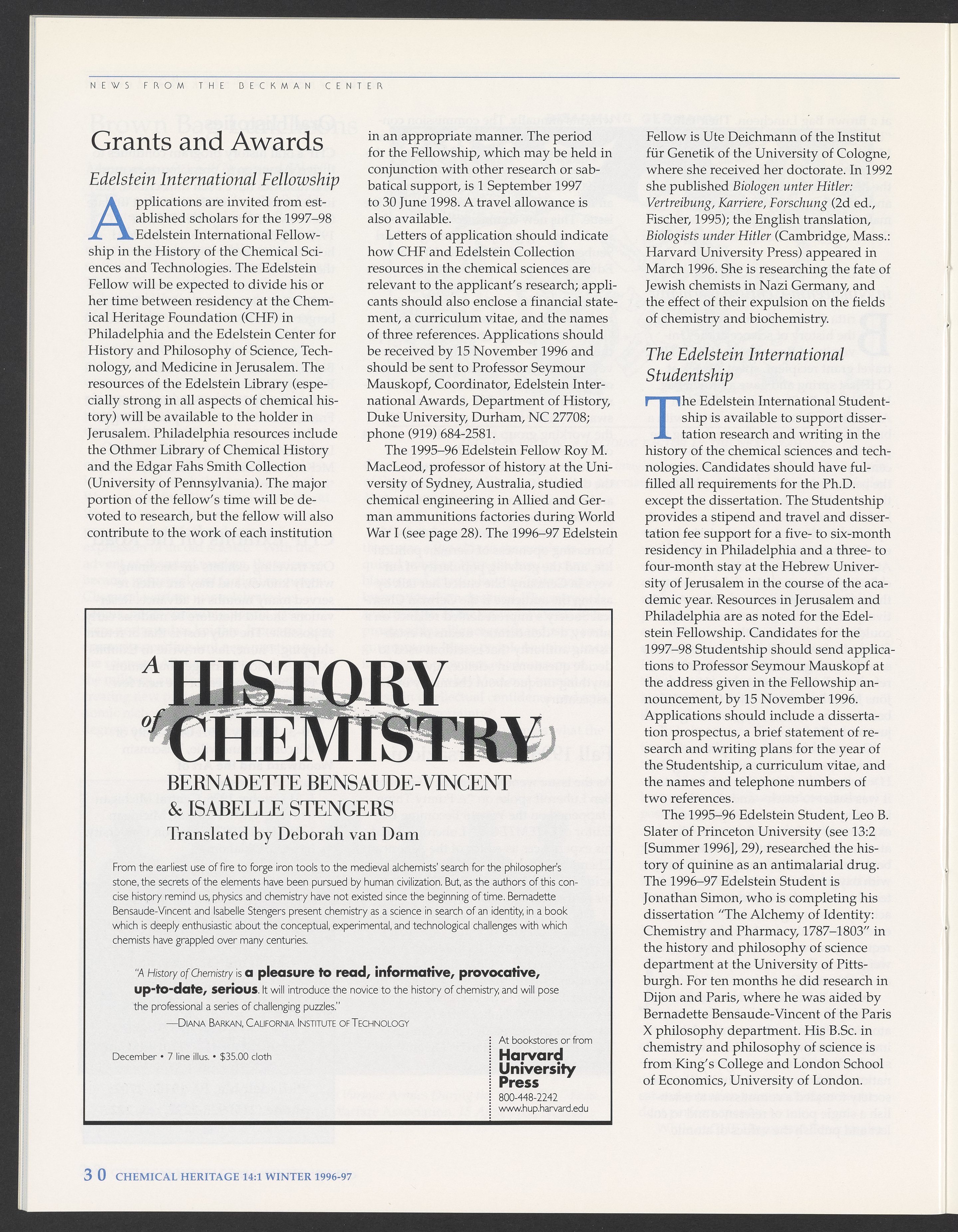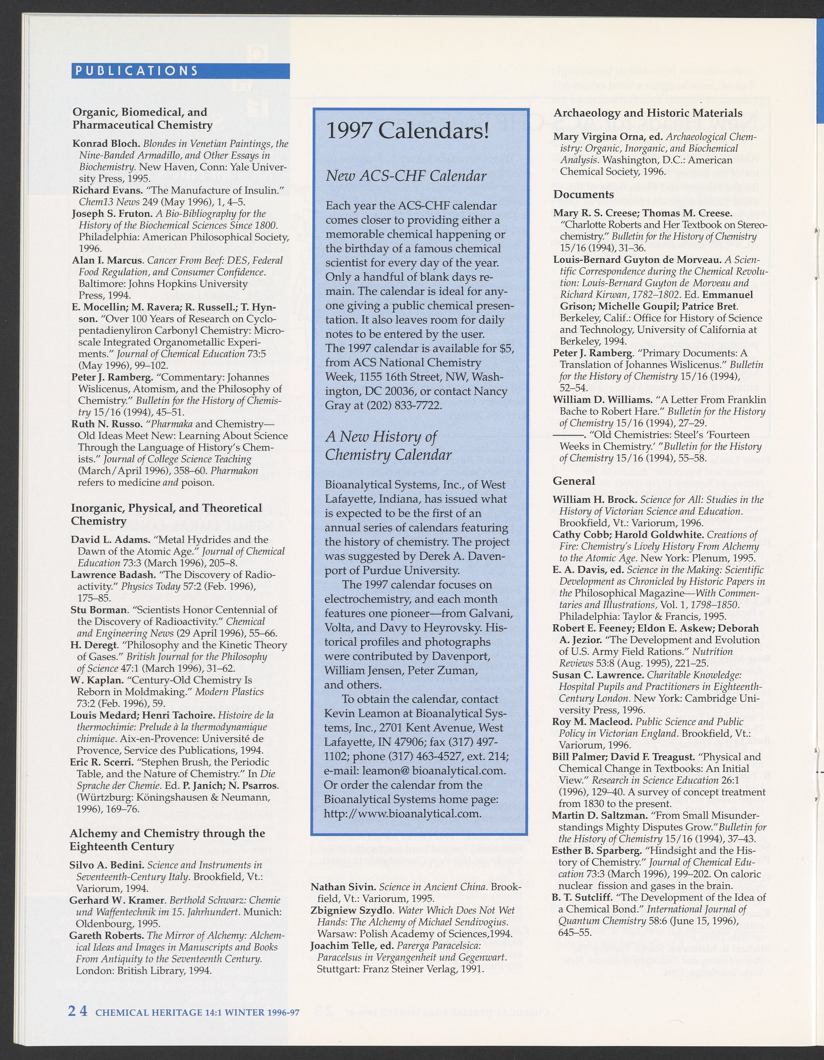 “Chemical Heritage, Volume 14 Number 1.” Philadelphia, Pennsylvania: Chemical Heritage Foundation, 1996. 099C001. Science History Institute. Philadelphia. https://digital.sciencehistory.org/works/5rbmsw4.