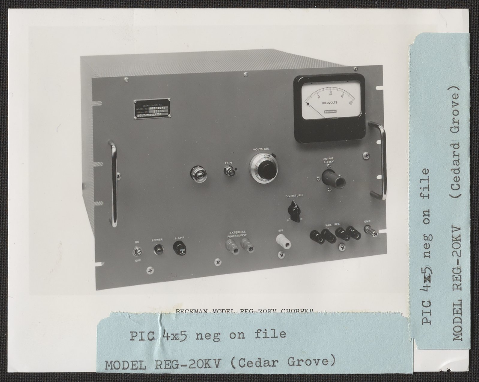 “Beckman Model REG-20 KV Voltage Regulator,” n.d. Beckman Historical Collection, Box 84. Science History Institute. Philadelphia. https://digital.sciencehistory.org/works/5t34sj93z.