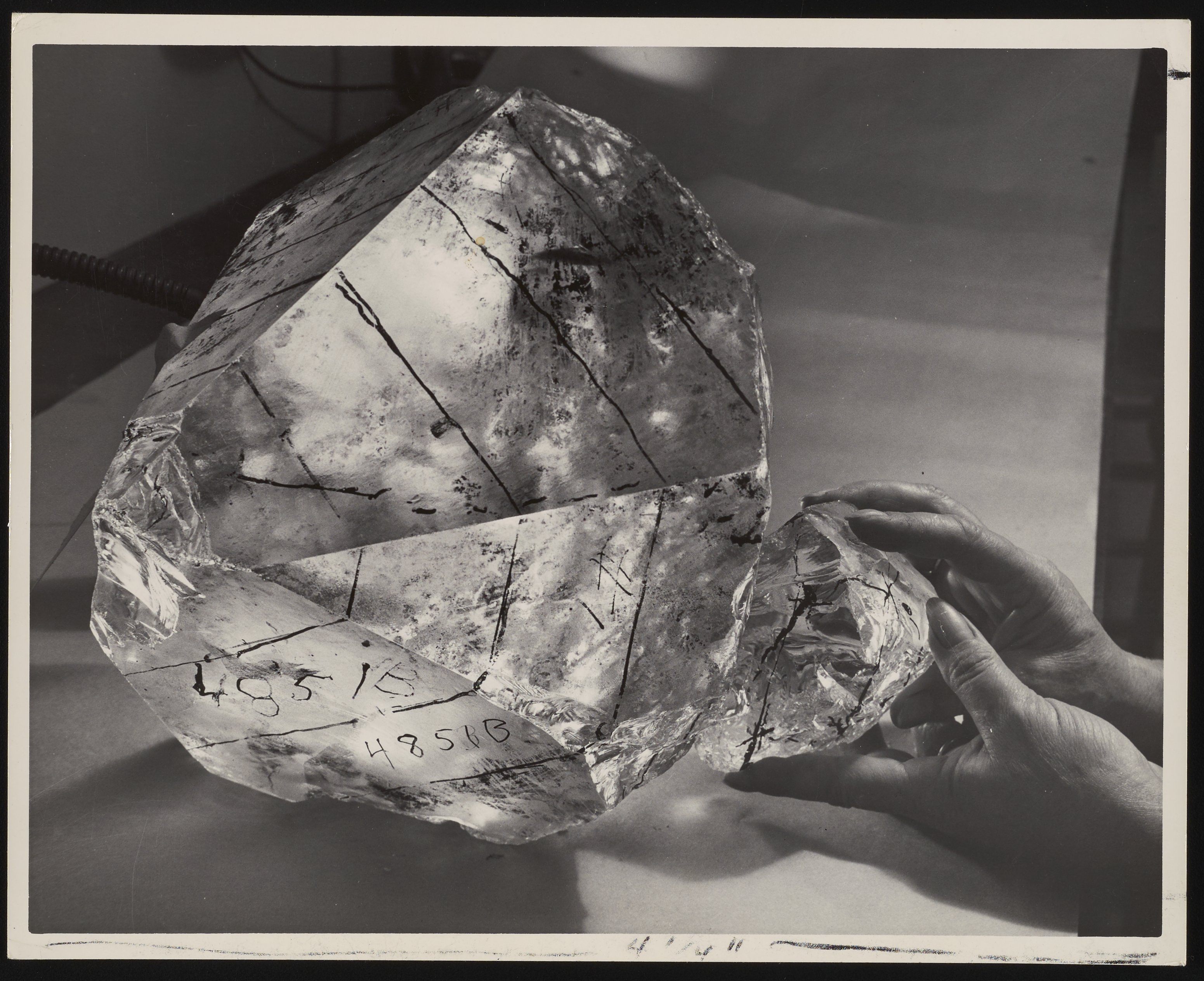Connell, William. “Quartz Crystal before Being Cut for Use in Beckman DU Spectrophotometers,” 1950–1959. Beckman Historical Collection, Box 56, Folder 12. Science History Institute. Philadelphia. https://digital.sciencehistory.org/works/5x21tf41f.