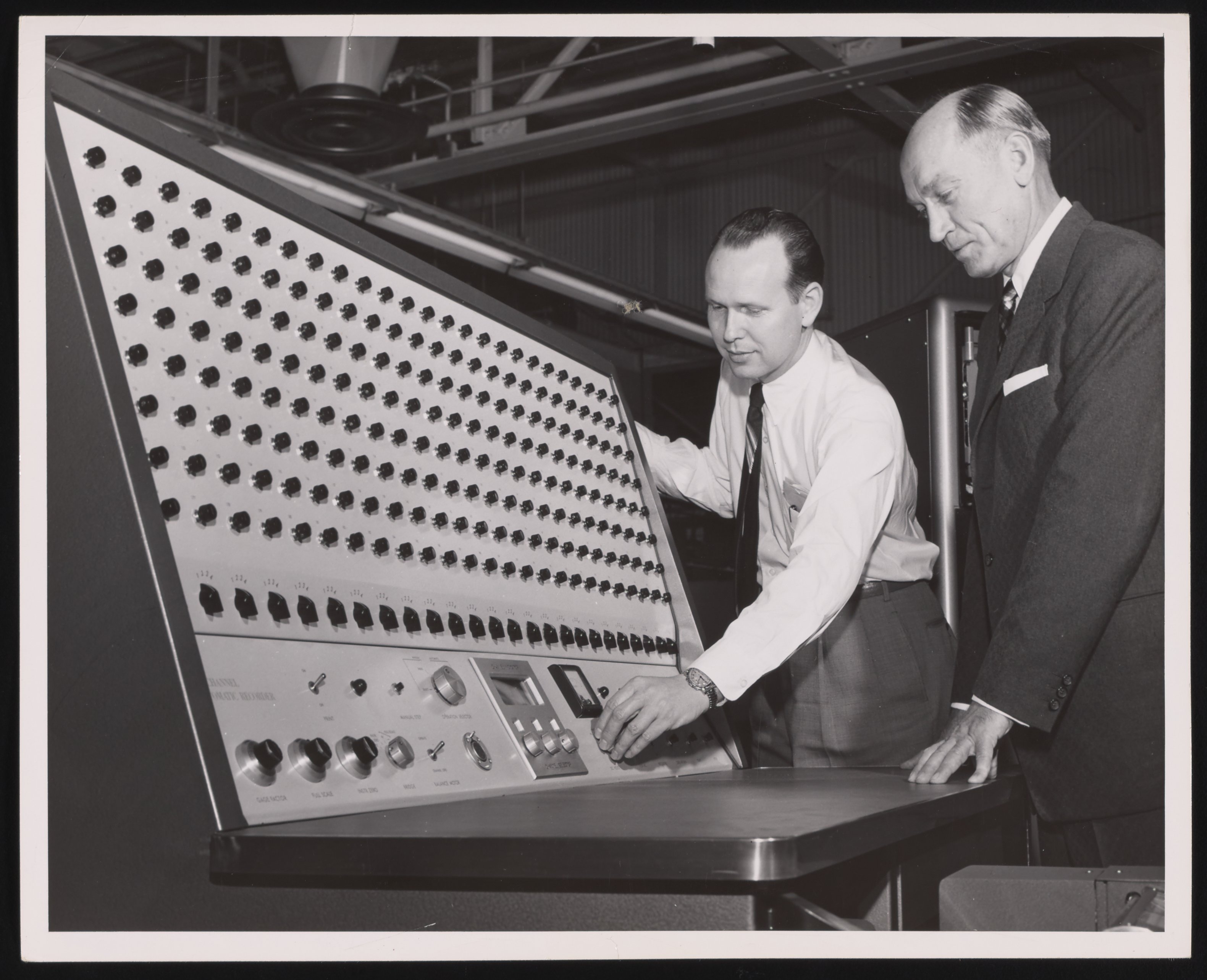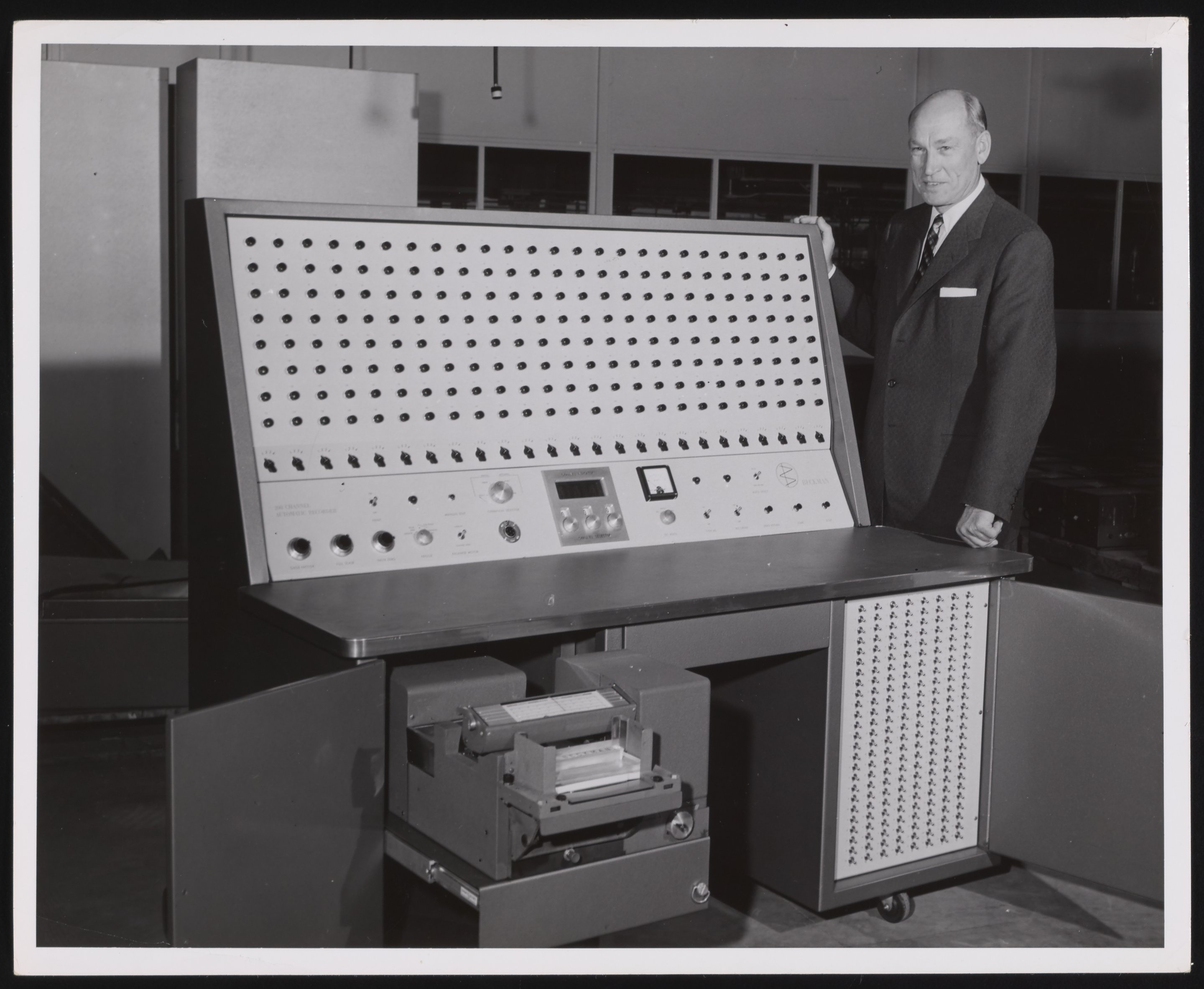 Arnold O. Beckman with 200 Channel Automatic Recorder
