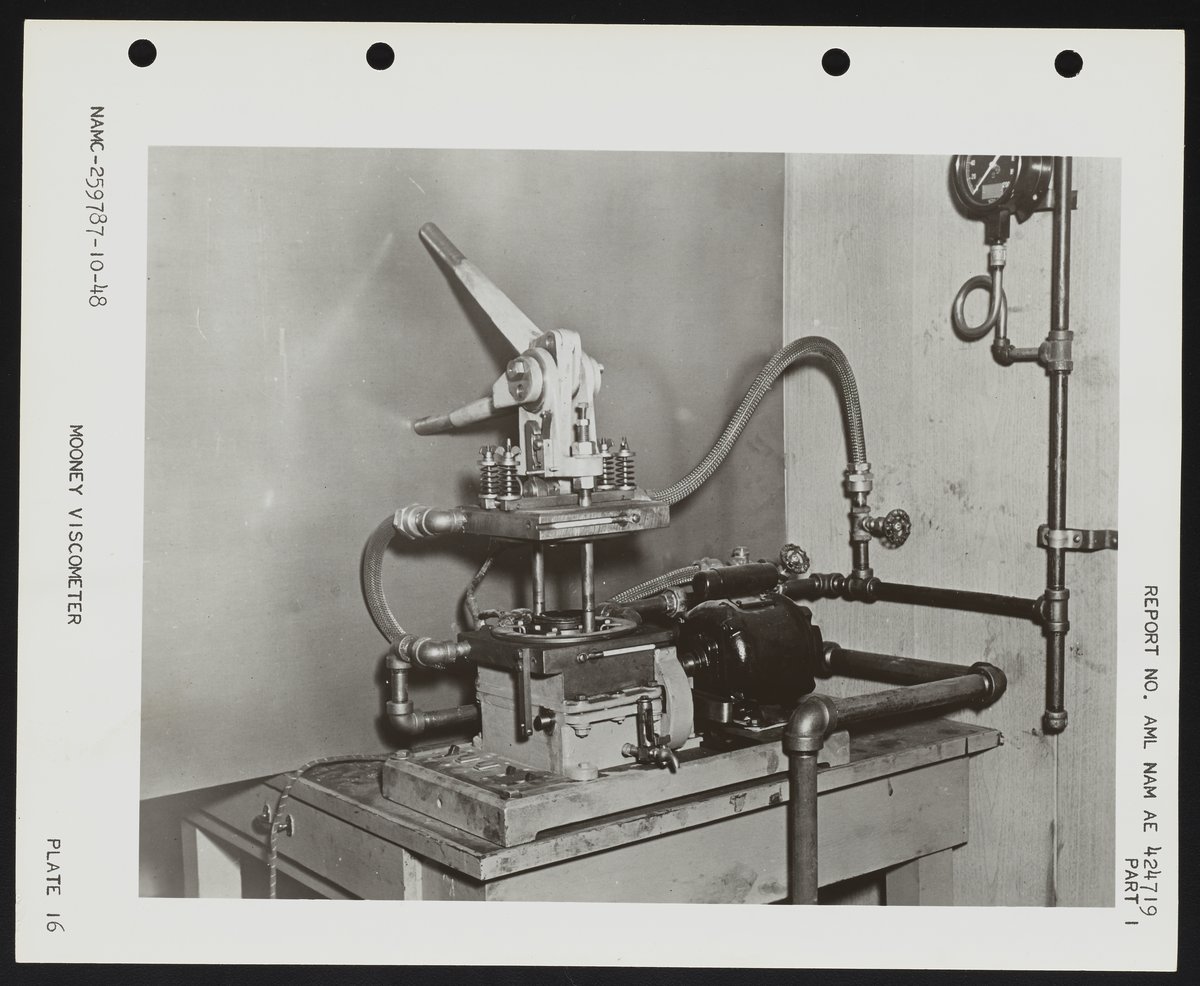 Naval Air Experimental Station, and United States. Navy. “Mooney Viscometer at the Rubber Compounding and Processing Laboratory,” circa 1949. Photographs from the Papers of J. Hartley Bowen, Box 1. Science History Institute. Philadelphia. https://digital.sciencehistory.org/works/6395w7149.