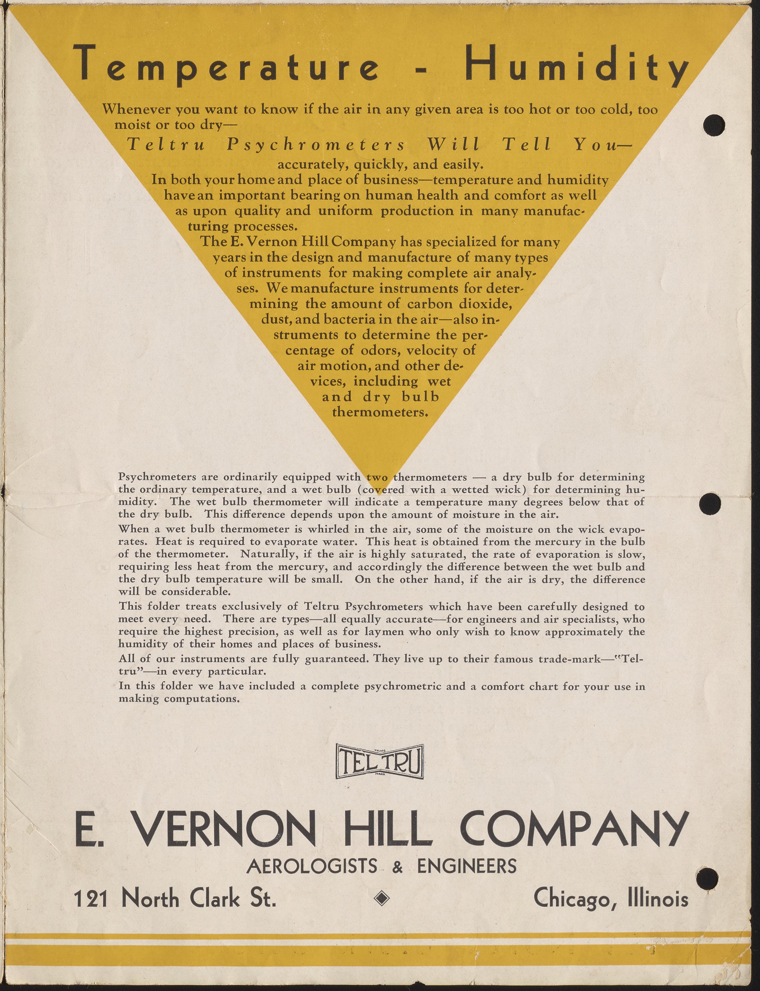 E. Vernon Hill Company. “Teltru Psychrometers,” n.d. Beckman Historical Collection, Box 19, Folder 38. Science History Institute. Philadelphia. https://digital.sciencehistory.org/works/6395w716v.