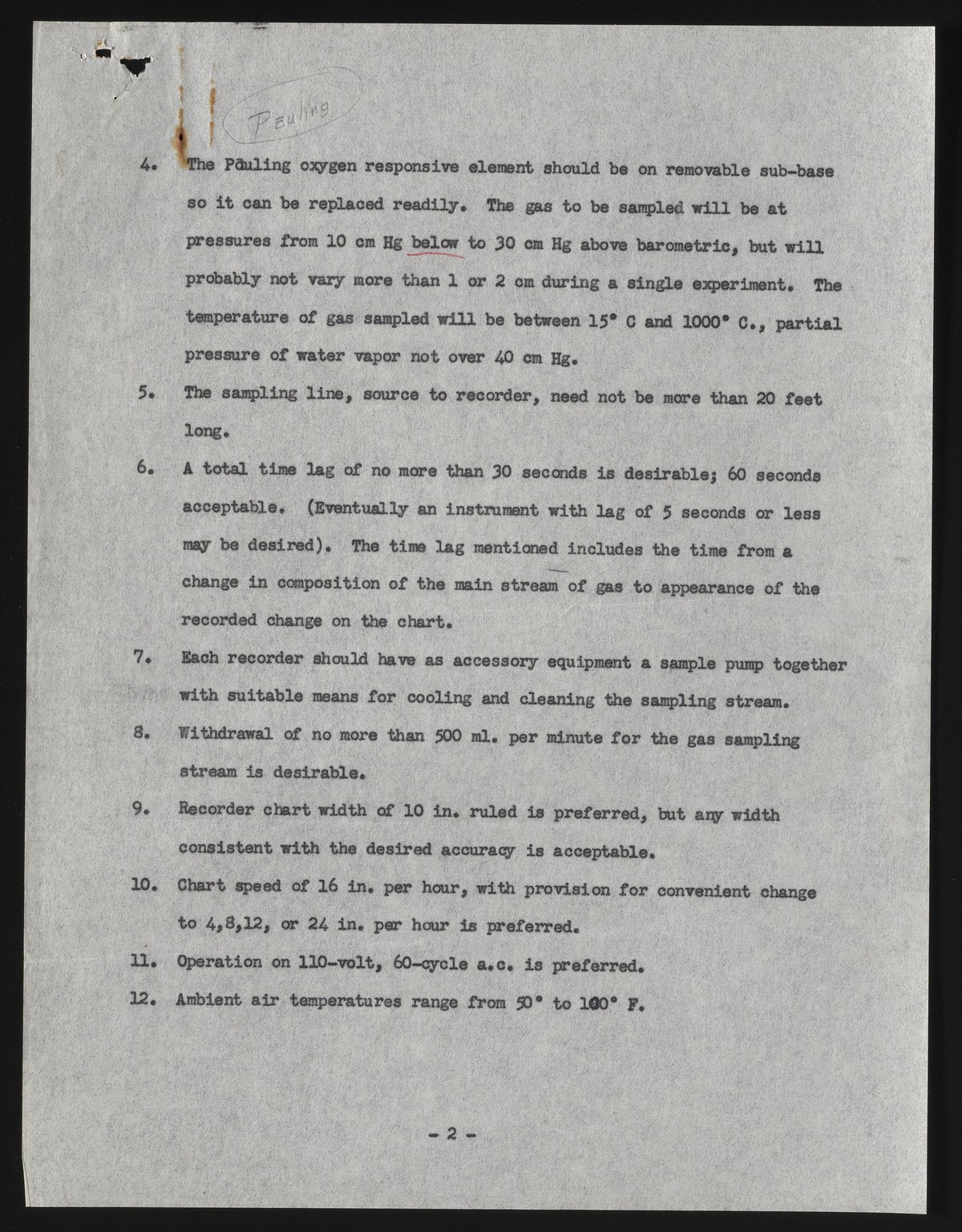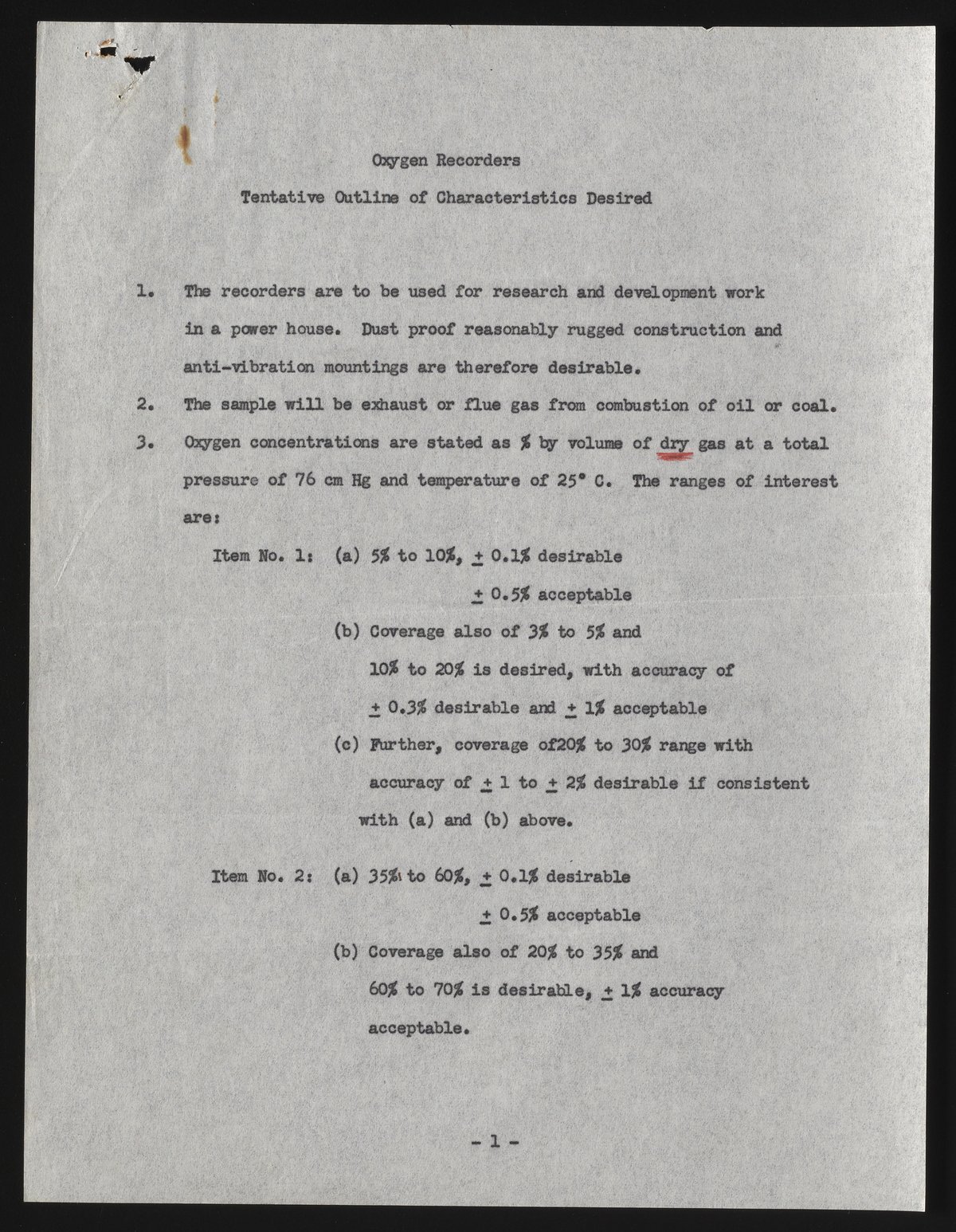 Oxygen Recorders: Tentative Outline of Characteristics Desired