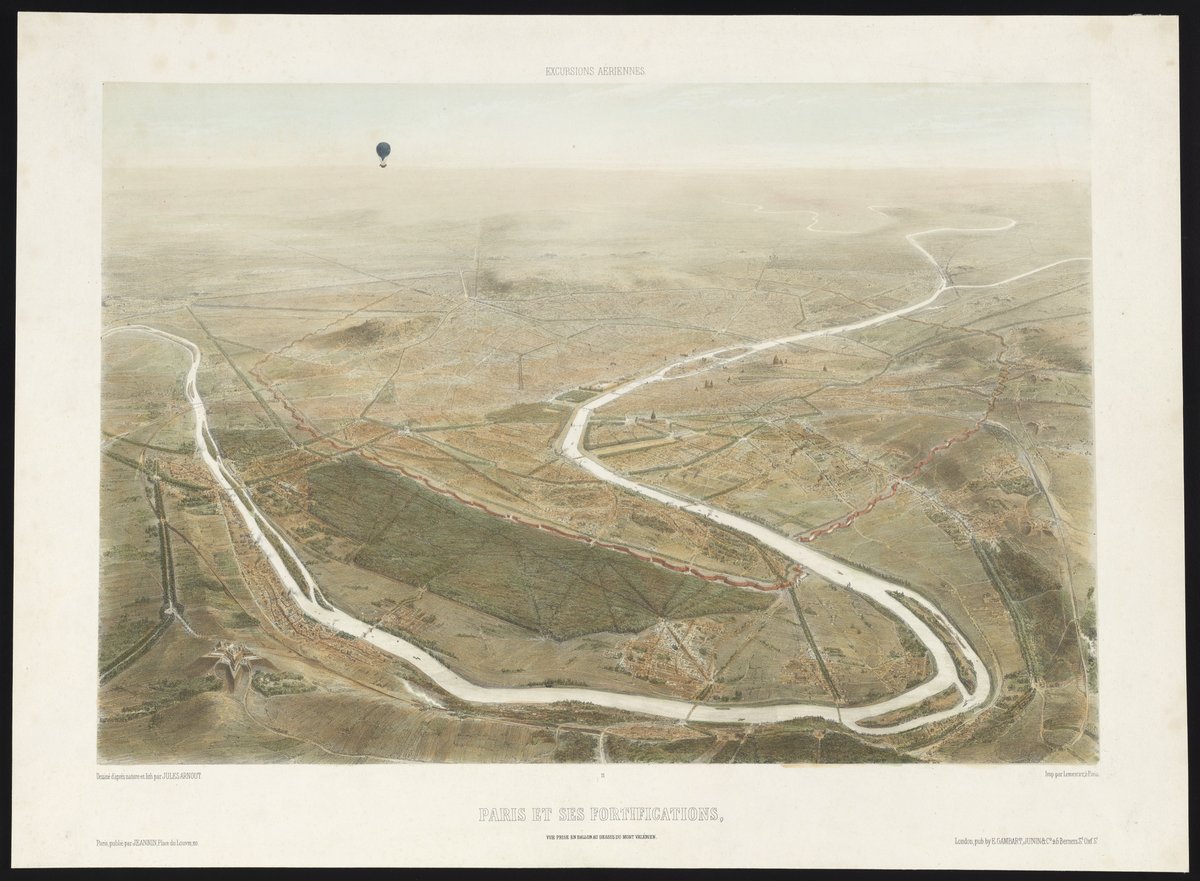 Arnout, Jules. “Paris Et Ses Fortifications, Vue Prise En Ballon Au Dessus Du Mont Valérien.” Gambart, Junin & Co. (London), circa 1846. Science History Institute. Philadelphia. https://digital.sciencehistory.org/works/6682x476j.