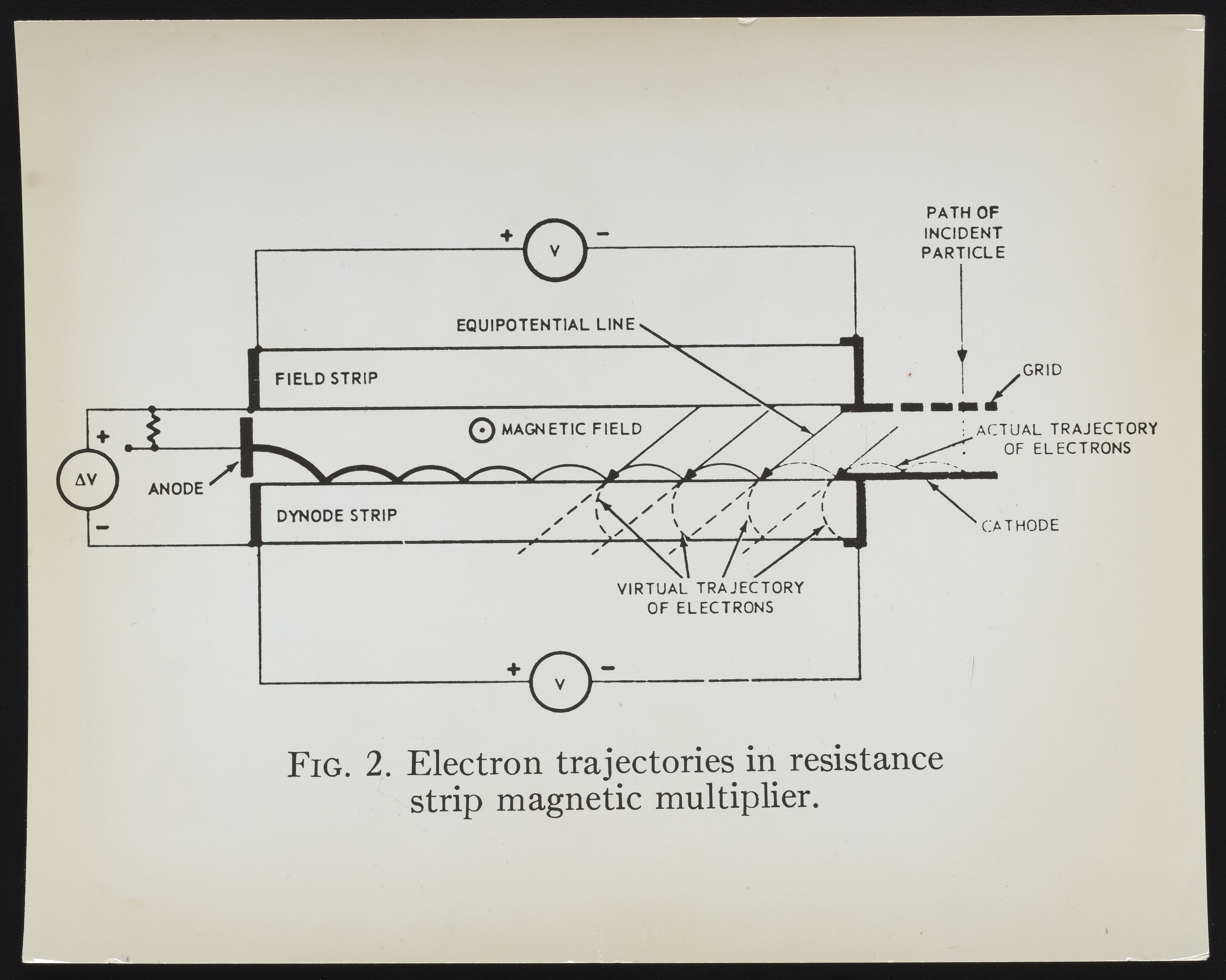 Bendix Corporation. “Diagram Depicting Electron Trajectories in Electron Multiplier,” 1970–1979. Photographs from the Bendix Time-of-Flight Mass Spectrometer Collection, Box 3. Science History Institute. Philadelphia. https://digital.sciencehistory.org/works/6969z130f.