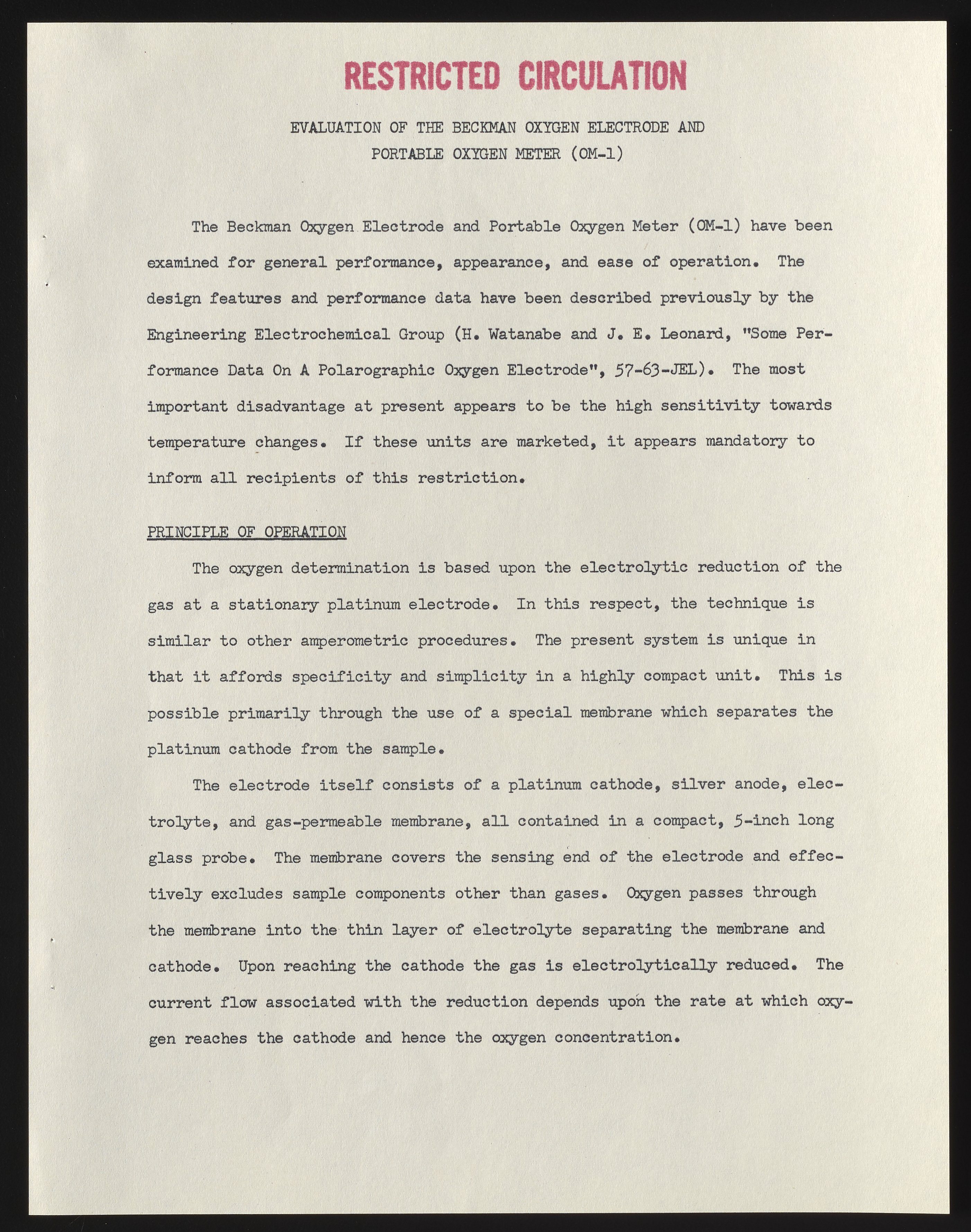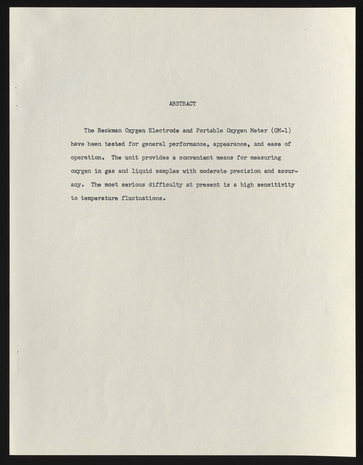 Technical Report: Evaluation of the Beckman Oxygen Electrode and Portable Oxygen Meter (OM-1)