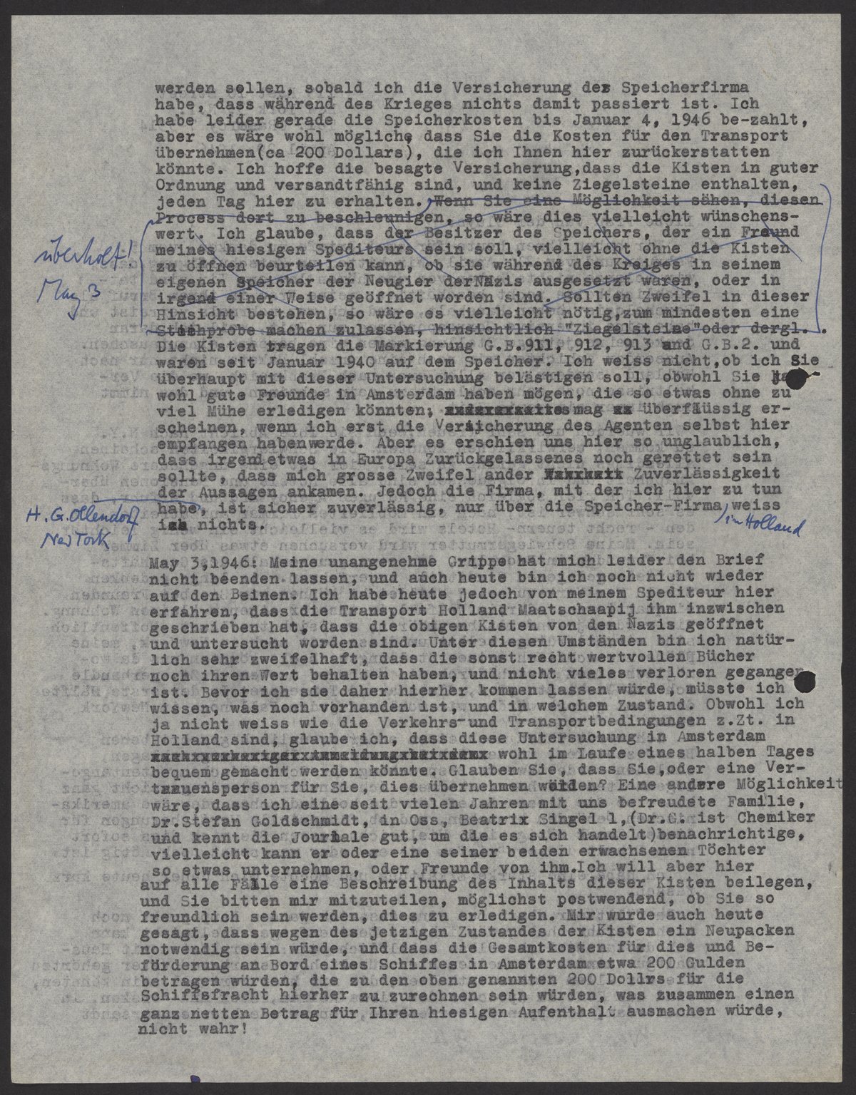 Letter from Max Bredig to Anny van der Sluys, April 29, 1946