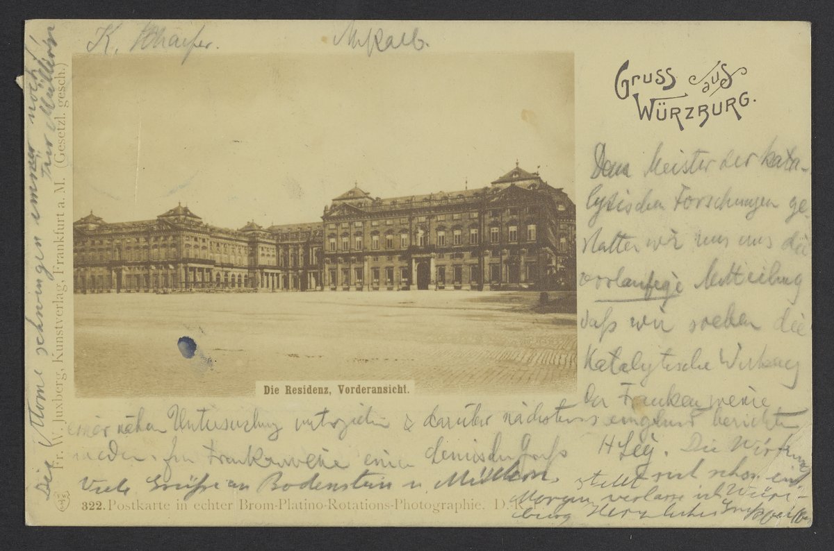 “Postcard of the Würzburg Residence,” 1910. Papers of Georg and Max Bredig, Box 22. Science History Institute. Philadelphia. https://digital.sciencehistory.org/works/6g0rtcd.