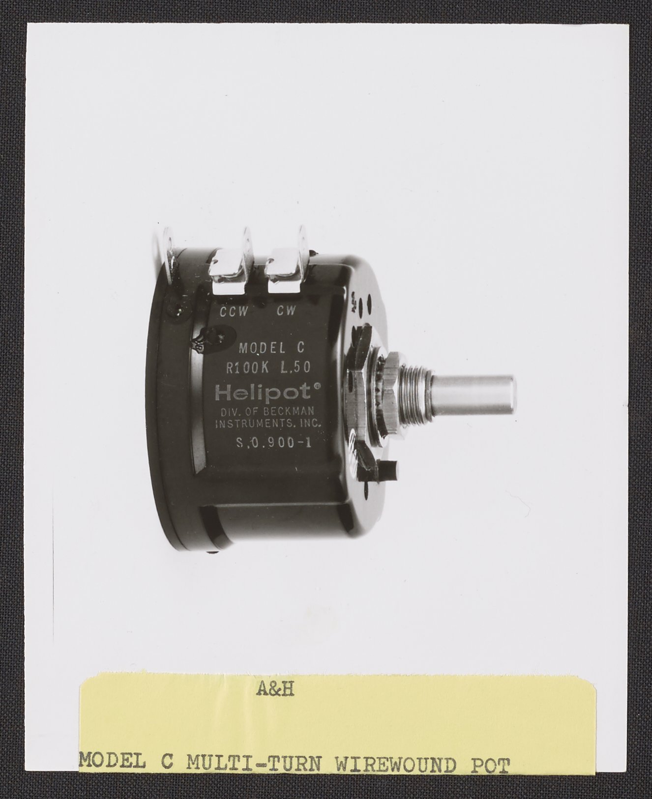 Armstrong & Hess. “Helipot Model C Multi-Turn Wirewound Potentiometer,” 1950–1969. Beckman Historical Collection, Box 85. Science History Institute. Philadelphia. https://digital.sciencehistory.org/works/6m311p73q.