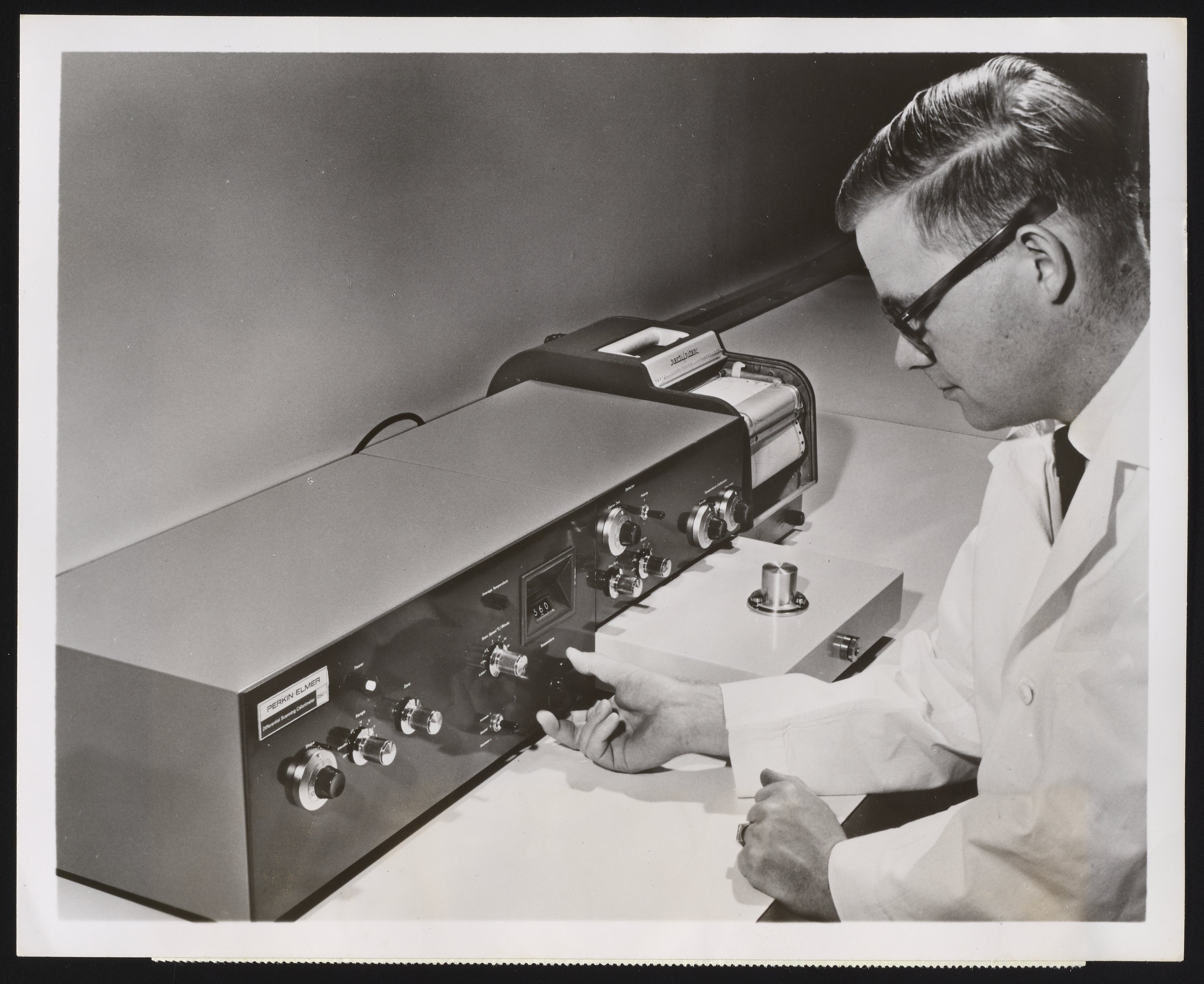 Perkin-Elmer Corporation. “Perkin-Elmer Model DSC-1 Differential Scanning Calorimeter,” 1950–1959. Photographs from the Perkin-Elmer-Applera Collection, Box 5. Science History Institute. Philadelphia. https://digital.sciencehistory.org/works/6m311q258.