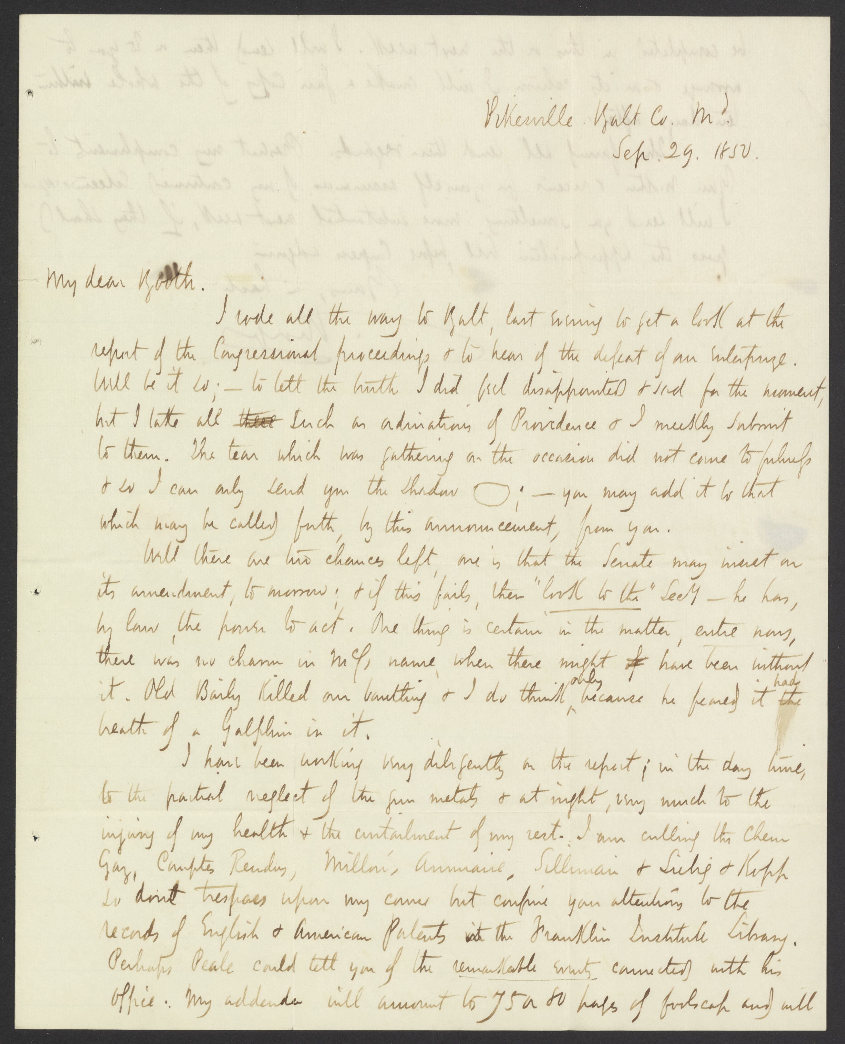 Morfit, Campbell. “Letter from Campbell Morfit to James Curtis Booth, September 29, 1850,” September 29, 1850. Papers of James Curtis Booth, Box 1, Folder 10. Science History Institute. Philadelphia. https://digital.sciencehistory.org/works/6mym40s.