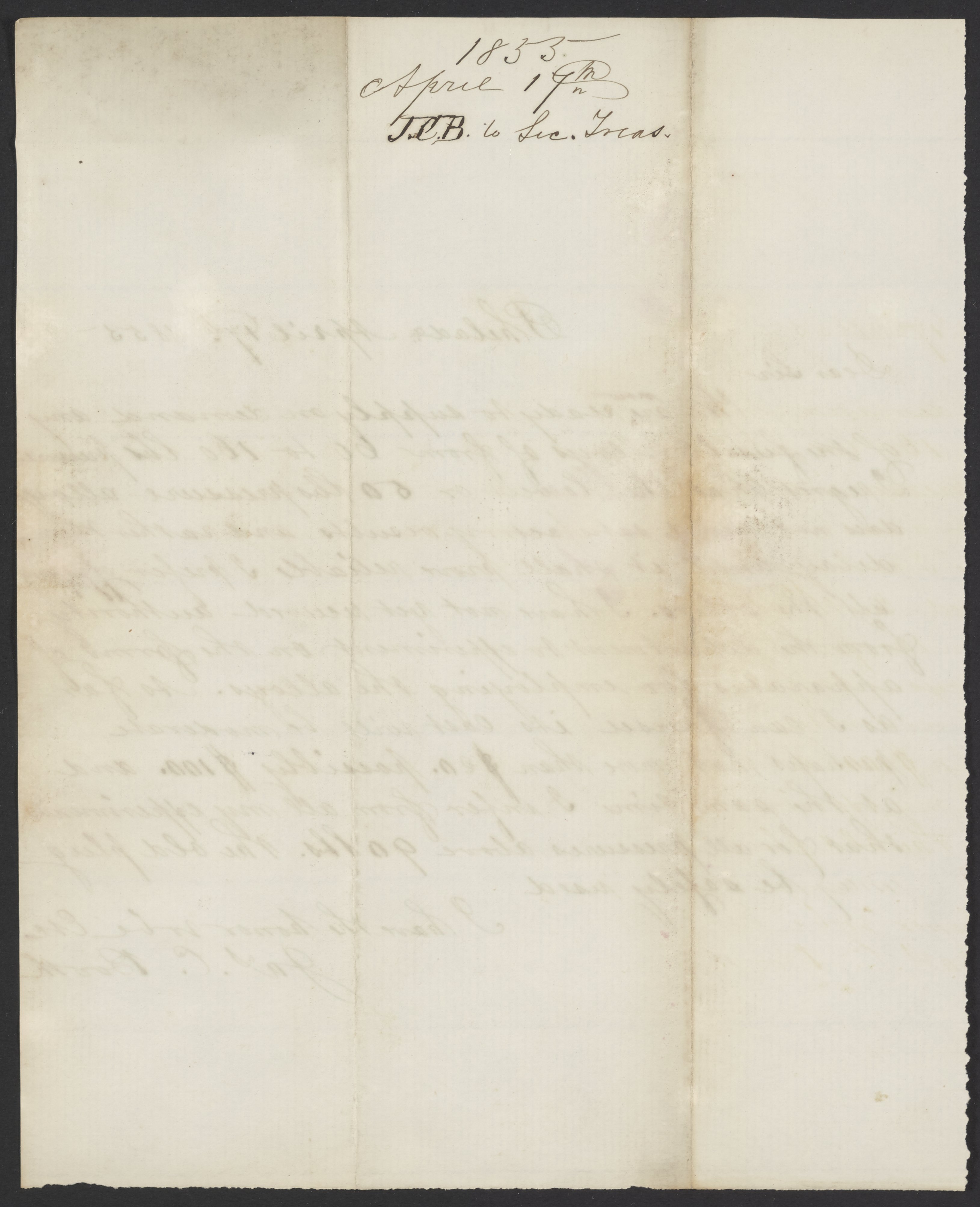 Letter from James Curtis Booth to the Secretary of the Treasury, April 17, 1855