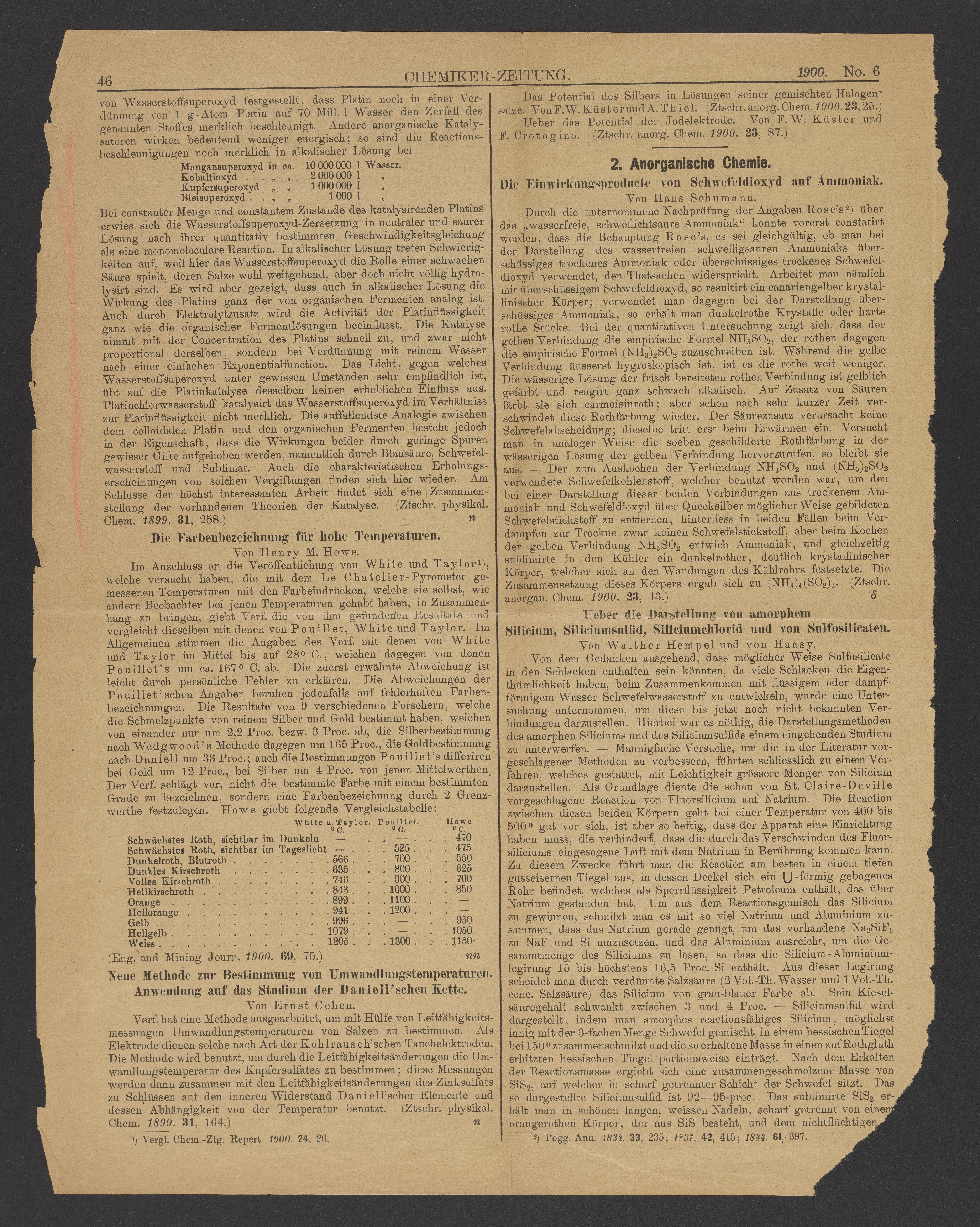 Article written by Georg Bredig (1868-1944) and Rudolf Müller von Berneck published in a supplement to Chemiker Zeitung (Volume 24, No. 6), a German scientific journal with publications on general and industrial chemistry.