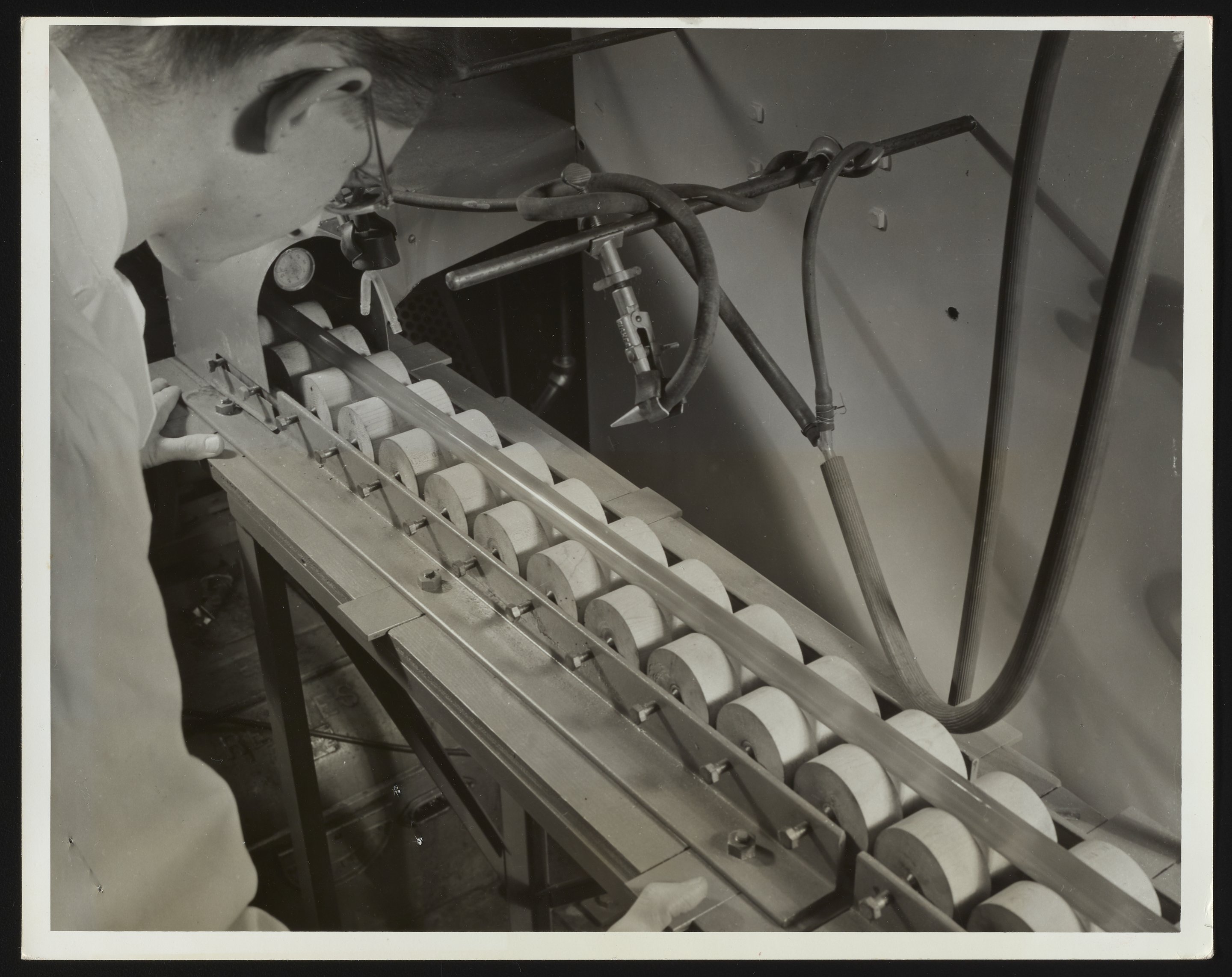 Hercules Incorporated. “Extruder in Use at Hercules Parlin Plant,” January 1949. Photographs from the Records & Ephemera of Hercules Incorporated, Box 2, Folder 25. Science History Institute. Philadelphia. https://digital.sciencehistory.org/works/6q182k78m.